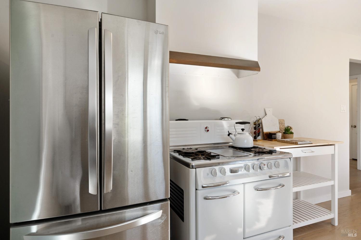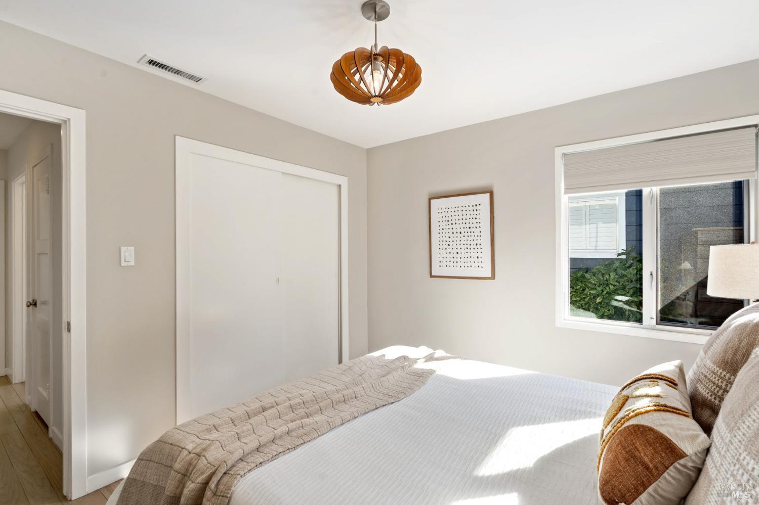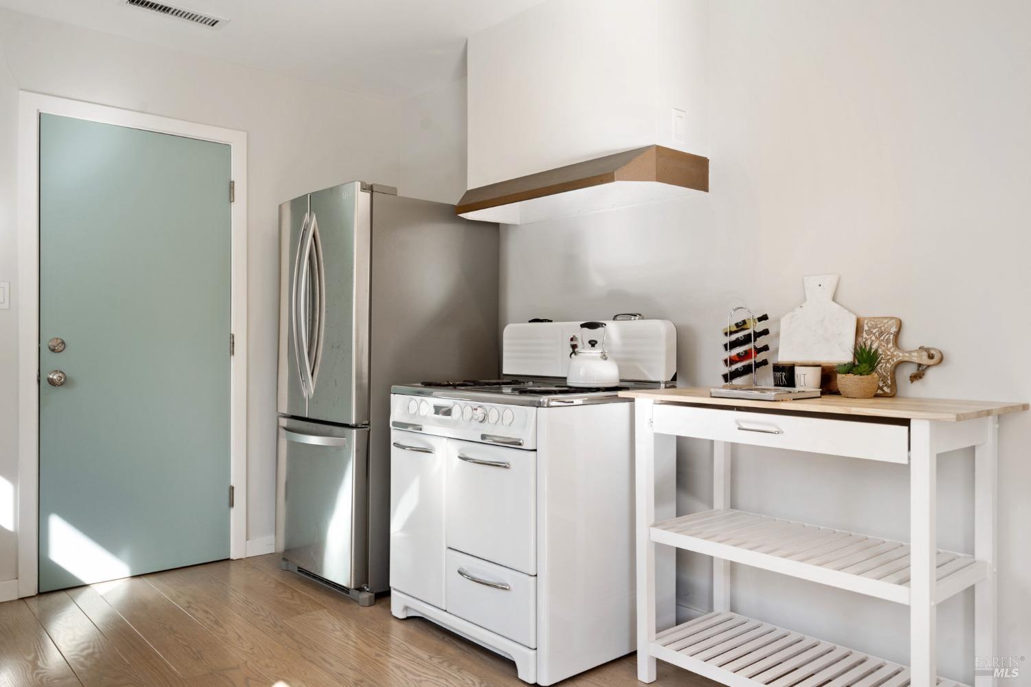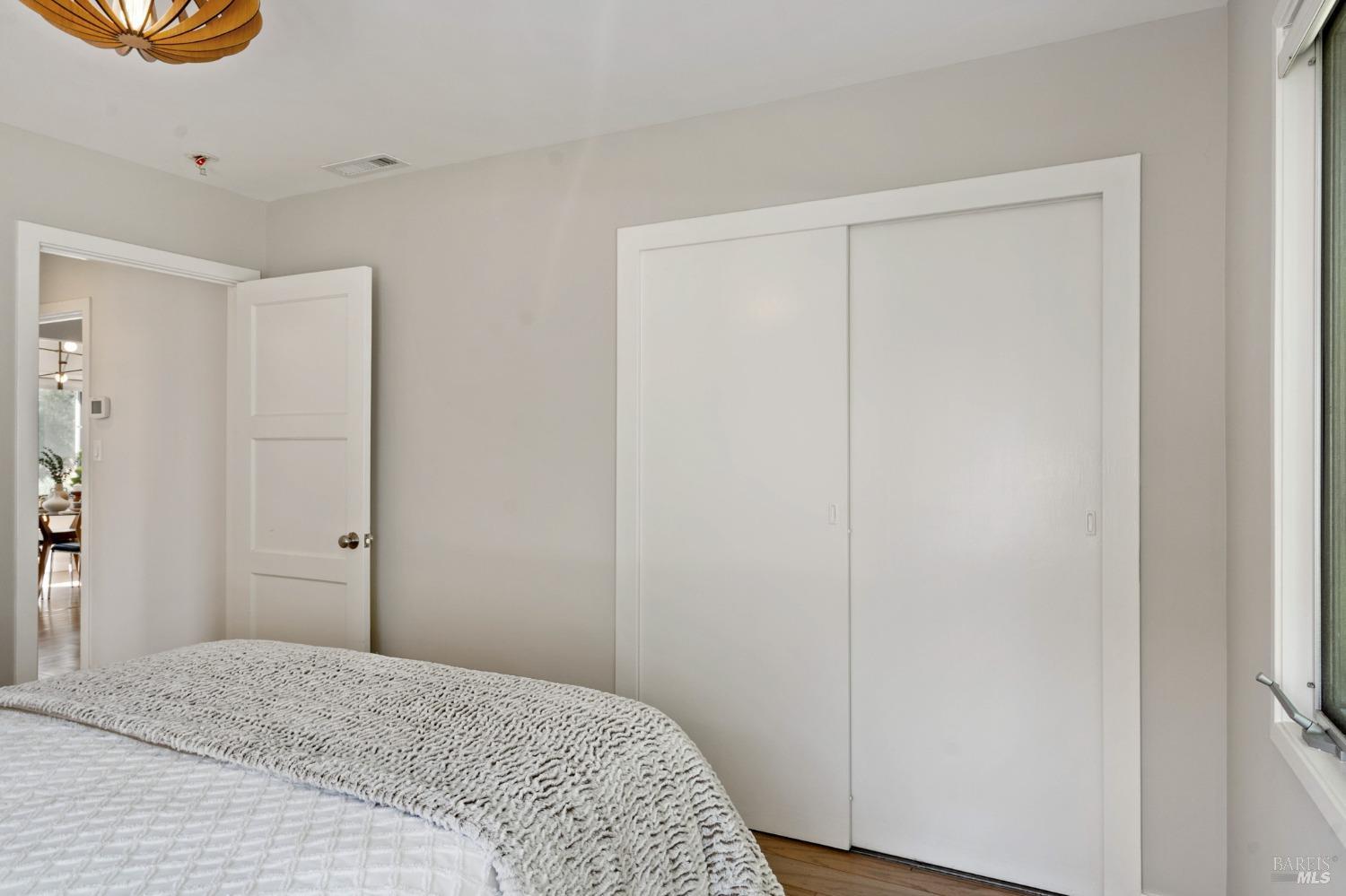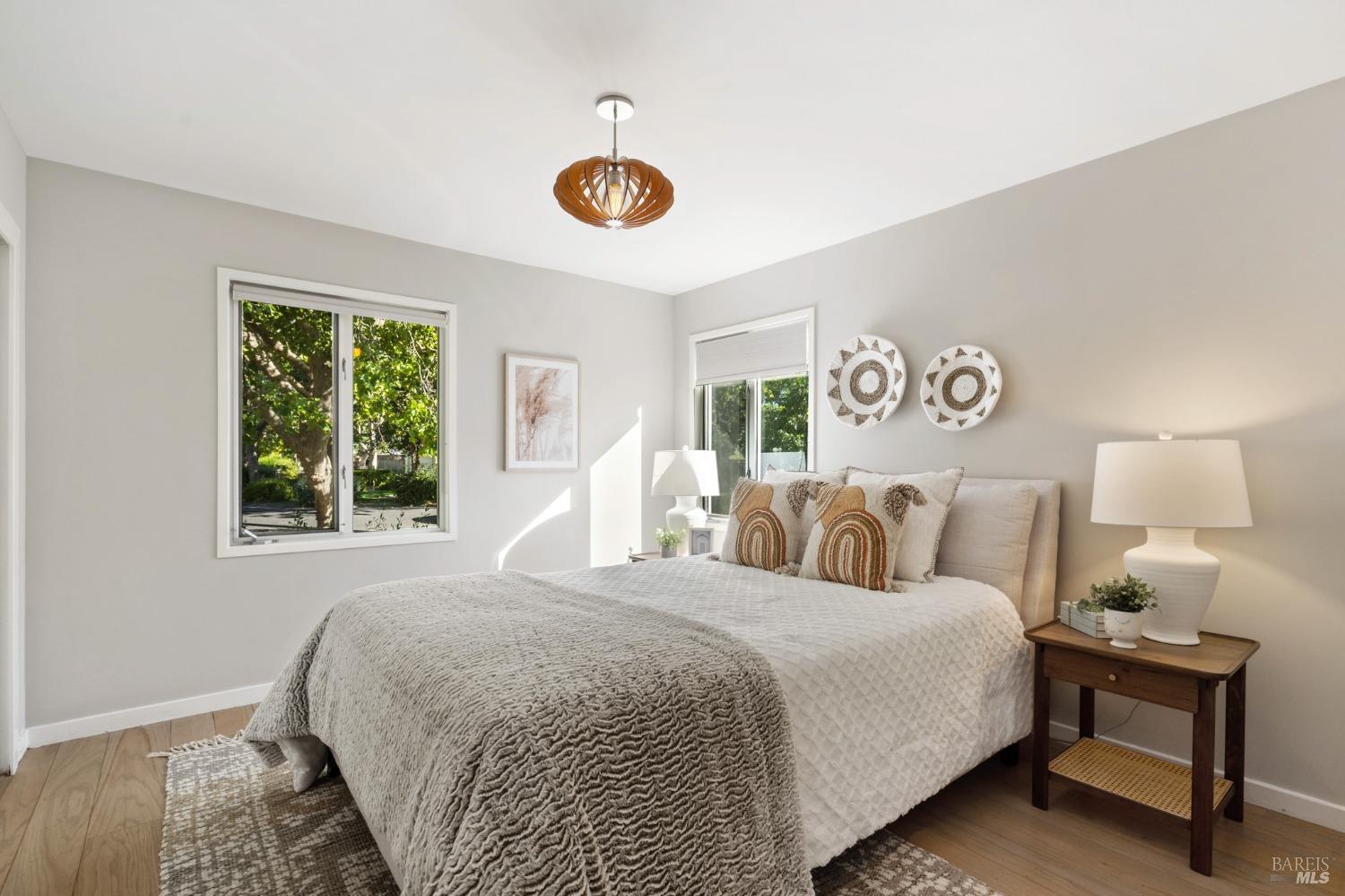 Fall head over heels for this mid-century gem. Nestled on a sprawling, level lot, this home features a true outdoor oasis: a backyard paradise designed for effortless, low-maintenance living and unforgettable entertaining. Extensive covered and open hardscape areas beckon you to savor the meticulously designed outdoor spaces; pergola adjusts for enhanced light control. Professional landscaping transforms the home into a one-of-a-kind retreat, a perfect backdrop for creating lasting memories with guests. Situated on a quiet, serene bend in the road, you'll be greeted by elevated design features including hardwood flooring, a cozy fireplace and updated fixtures and finishes which seamlessly blend with the home's architectural charm and aesthetic appeal. The kitchen features a delightful fusion of vintage accents and modern elements, and includes a stylish Wedgewood stove, Shaker-style cabinetry, subway tile backsplash, and an adjoining dining space filled with cheerful natural light. In addition to the main house, you'll discover a charming accessory dwelling unit, currently configured as a private home office. An attached single-bay garage ensures that parking and storage are never a concern.