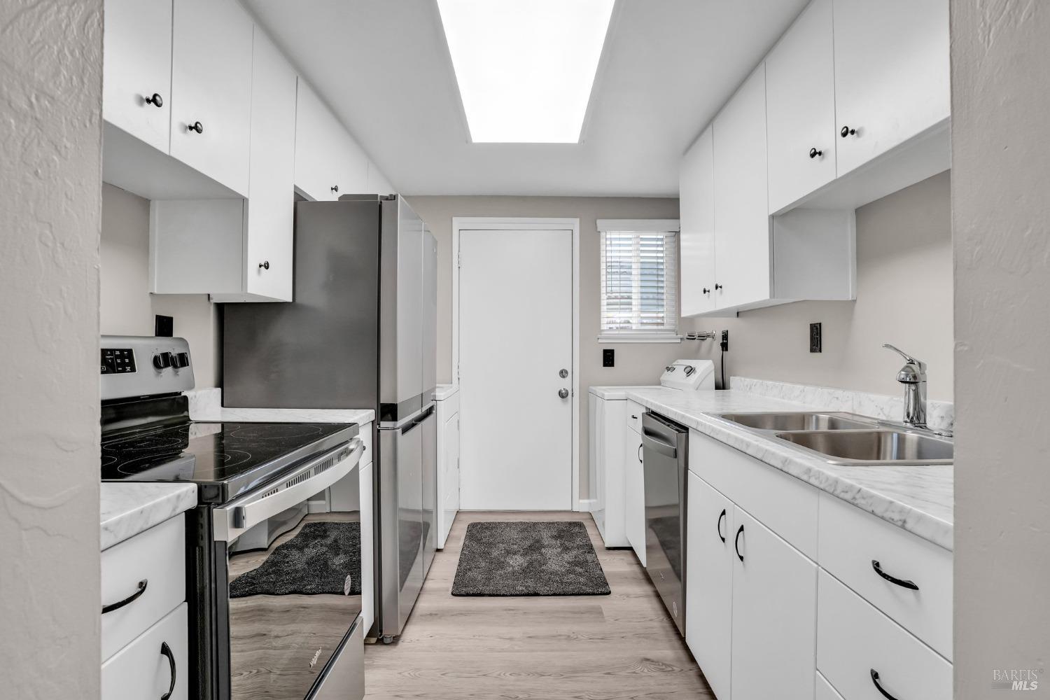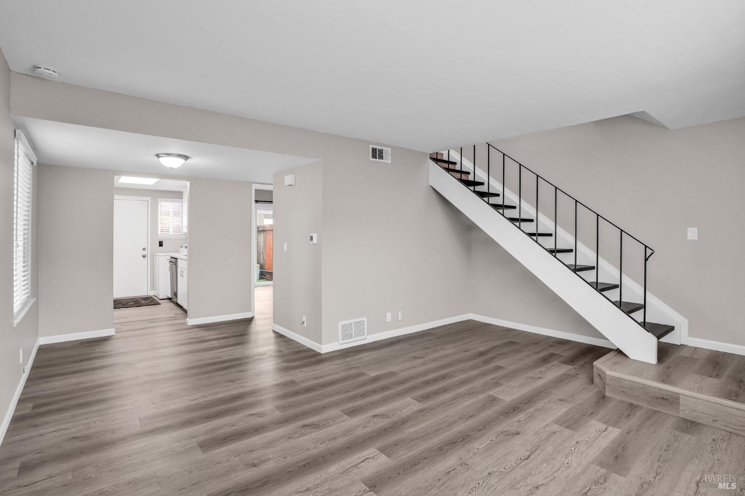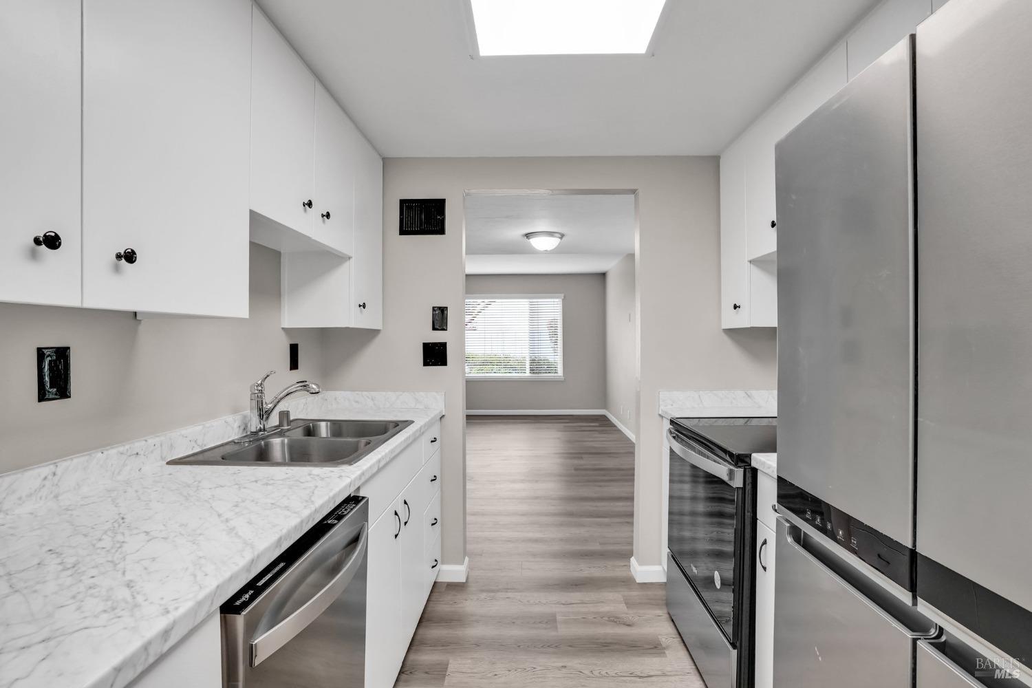 Light and bright townhouse located in Seascape Village in the heart of Novato. 3 bedrooms 1.5 bath with one bedroom and 1/2 bath located on the main level. Desirable end unit with private fenced patio and two car carport with storage. Contemporary flooring and paint throughout the unit. Kitchen boasts quarts counters, new stainless appliances, glass top electric range. Full sized washer and dryer area conveniently located in kitchen. Soaring ceiling in main bedroom upstairs. Sparkling community pool and playground in complex.
