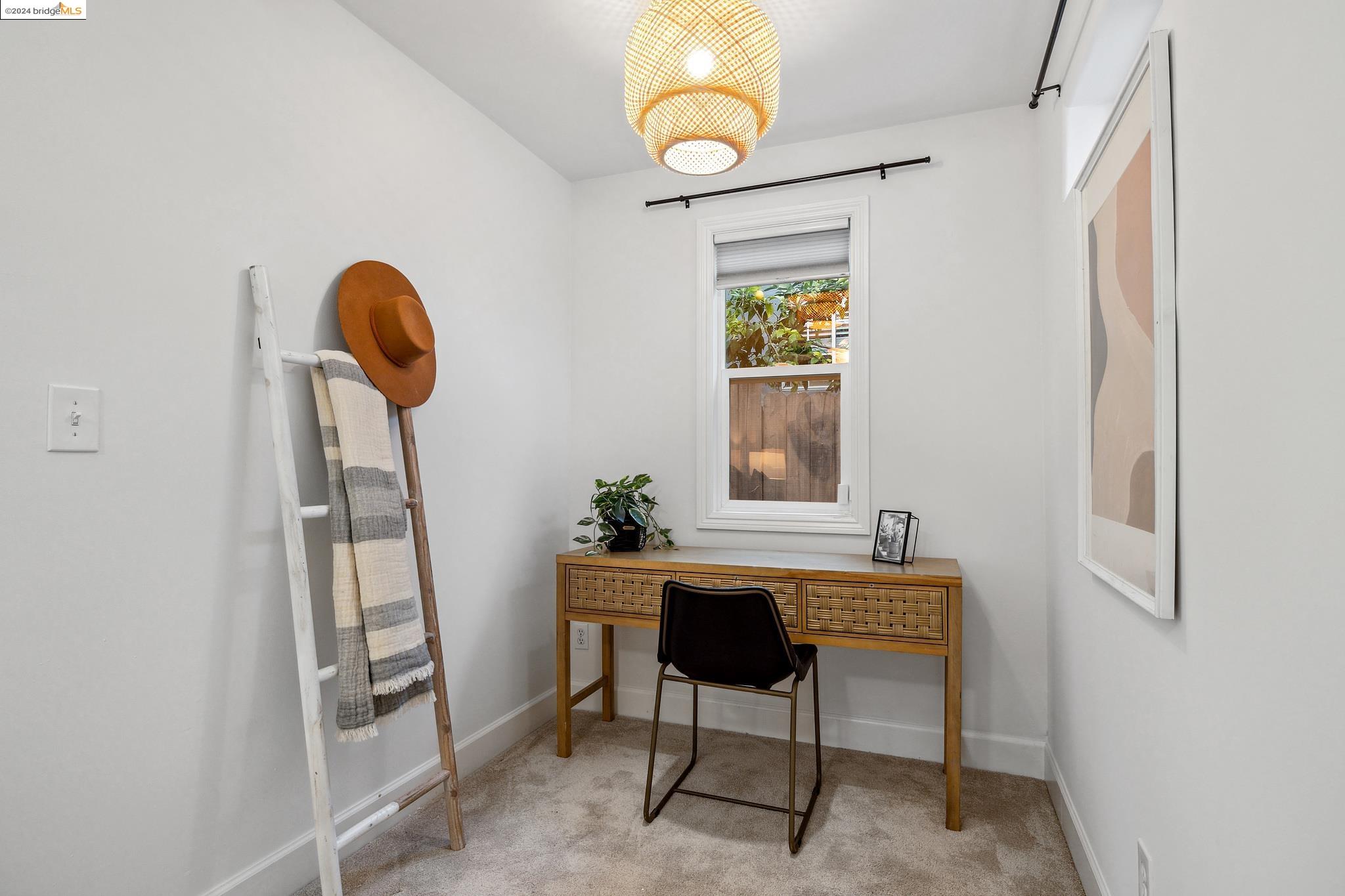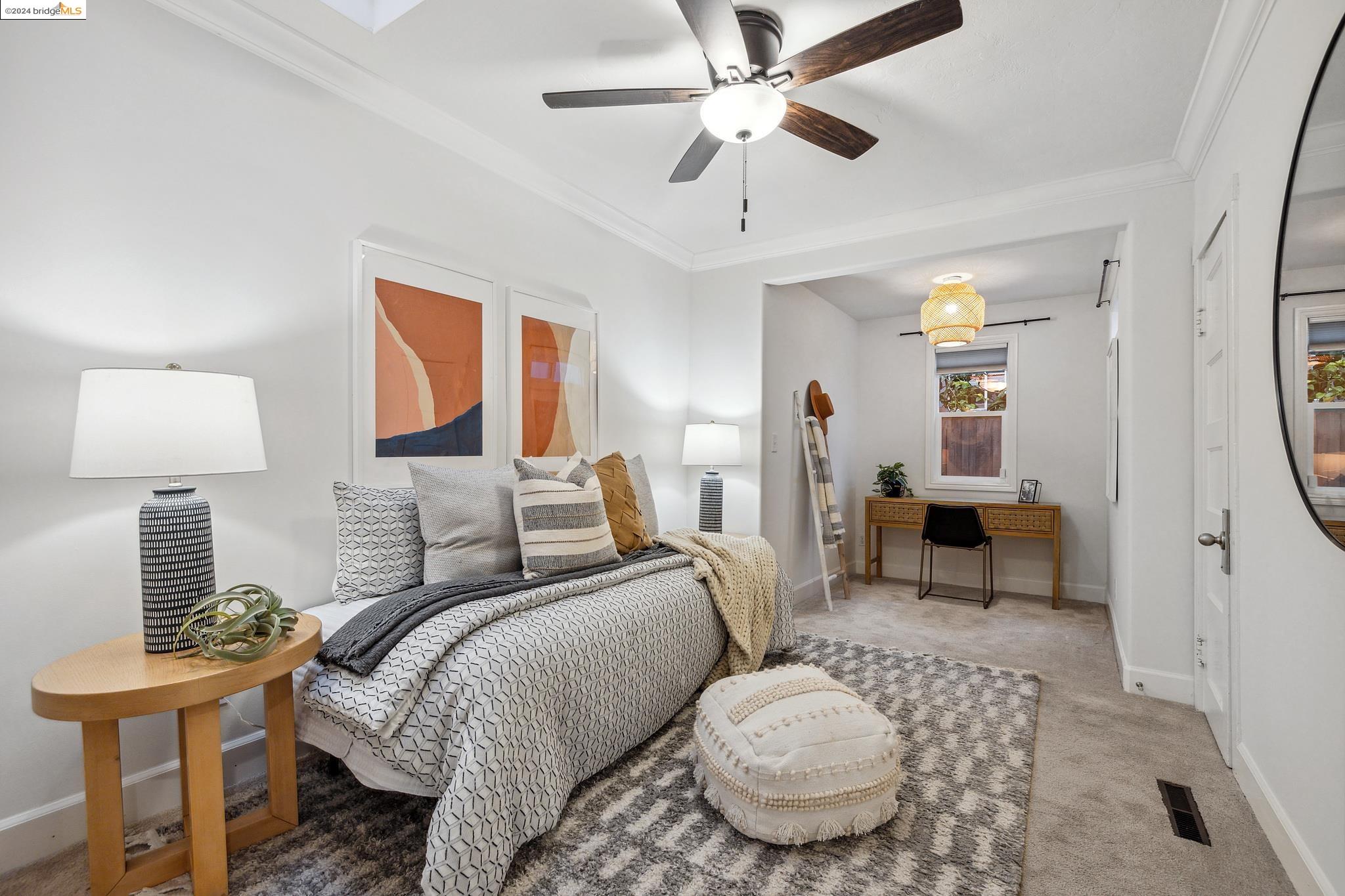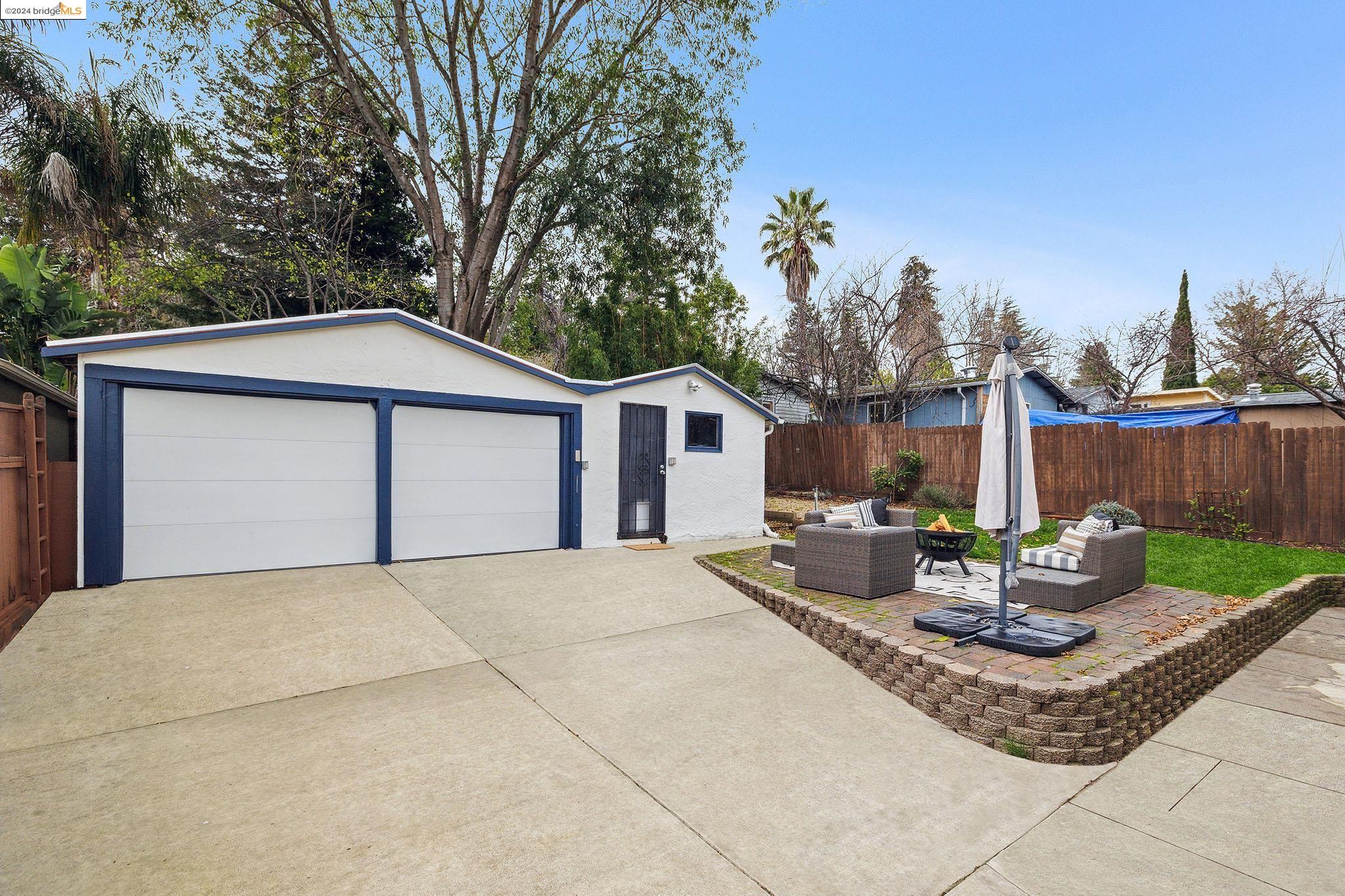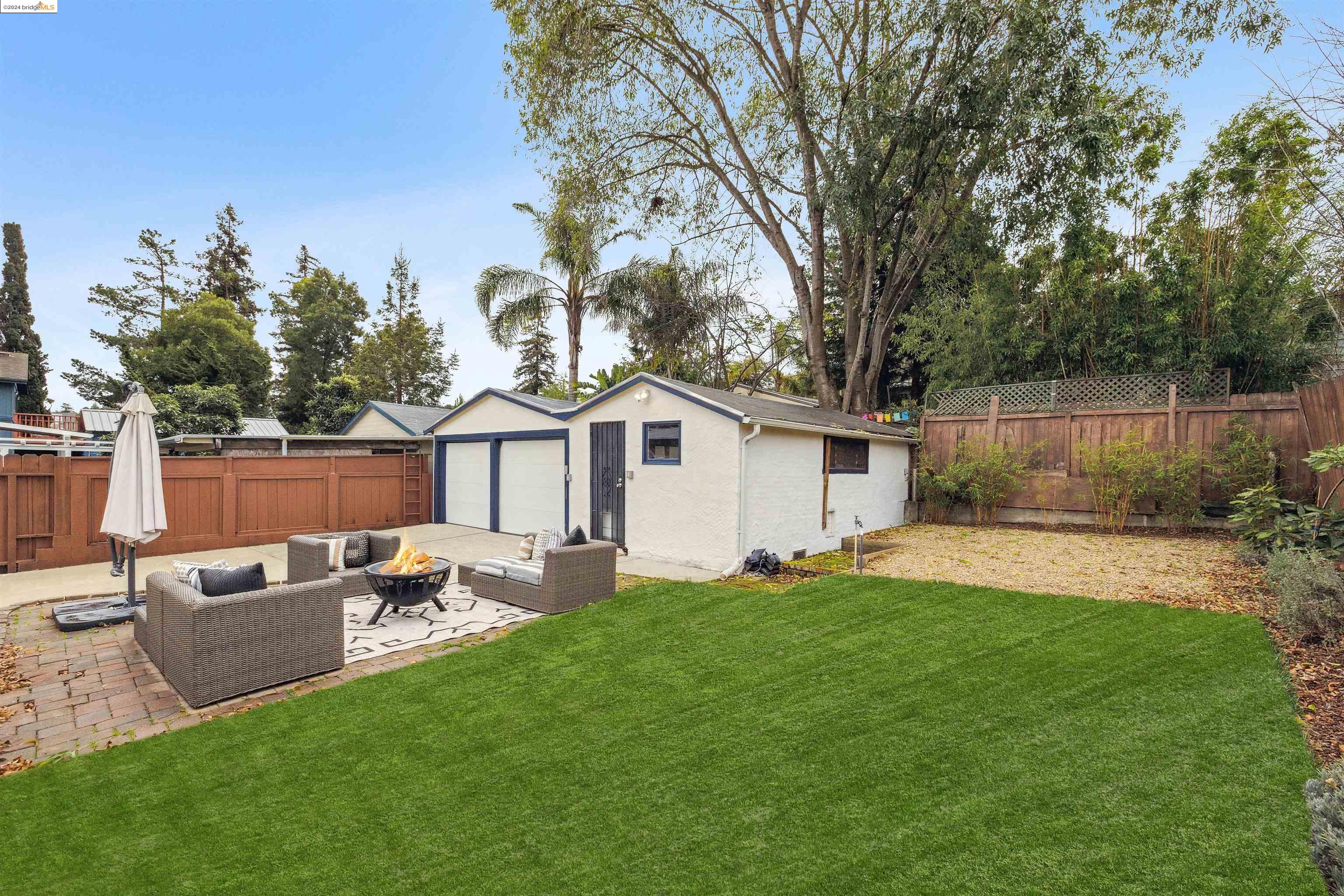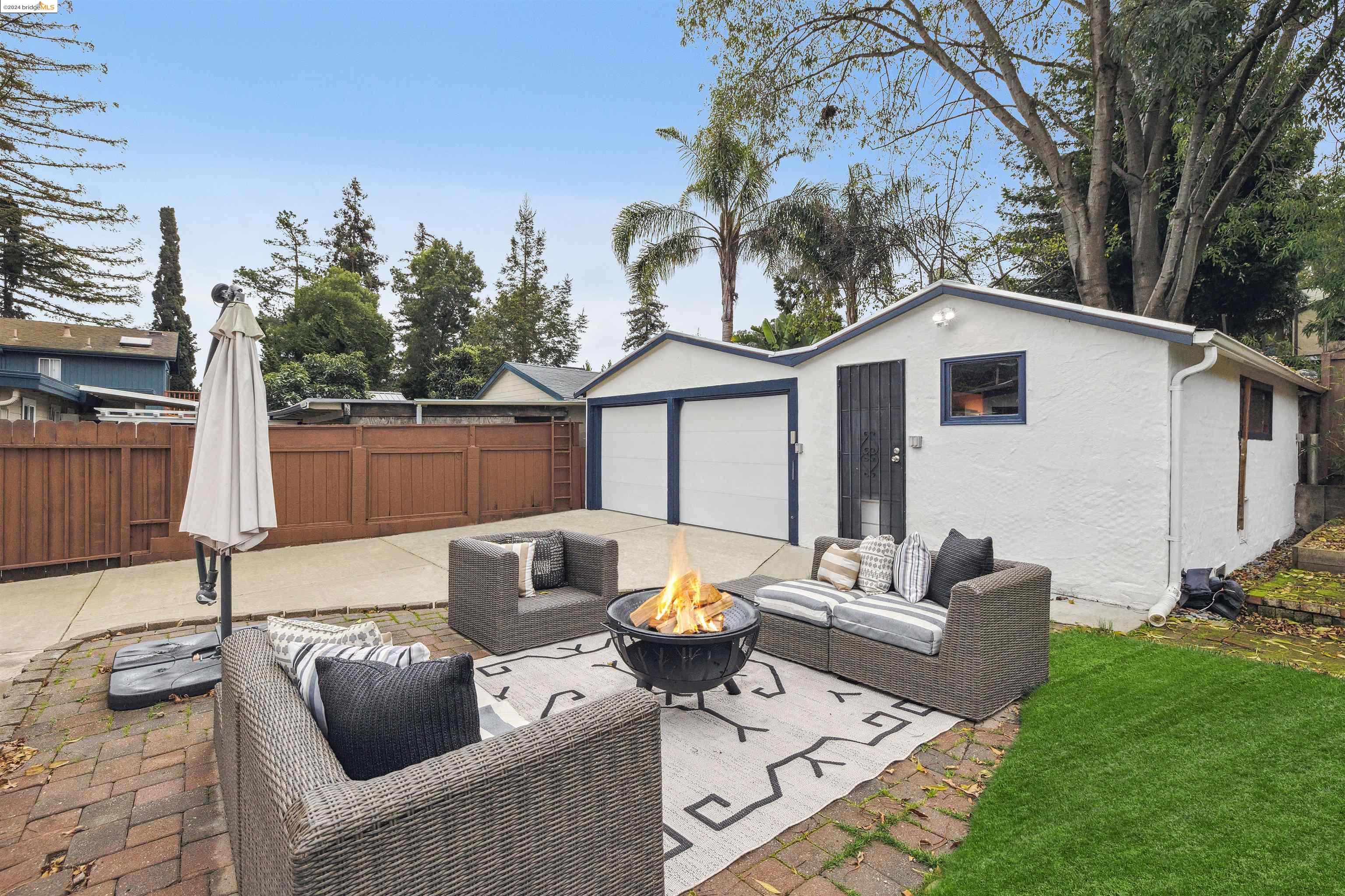 Nestled in the serene Eastmont hills, this delightful California Bungalow graces a tranquil street within a vibrant community. Bathed in natural light through its generous windows, this two-bedroom, one-bath residence radiates warmth and comfort. The modernized floorplan seamlessly connects the living and dining rooms to the well-appointed kitchen, complete with an inviting island and bar. Enhancing the convenience, a laundry room/pantry off the kitchen leads to the expansive backyard, providing a perfect blend of indoor and outdoor living. The two bedrooms, thoughtfully positioned for optimal privacy, boast oversized closets. The primary suite features a spacious bathroom with a shower over the tub and double sinks. The generously sized backyard, is a versatile haven for dining, recreation, and relaxation. A grassy expanse beckons four-legged companions, while a charming patio sets the stage for al fresco dining. The home also features a large double car detached garage. There is also a workshop that already has plans submitted for transformation into an ADU. Sellers will transfer plans and permitting process to the buyers so they can pick up where the sellers left off and add lots of value to this home. Great opportunity, don't miss it!