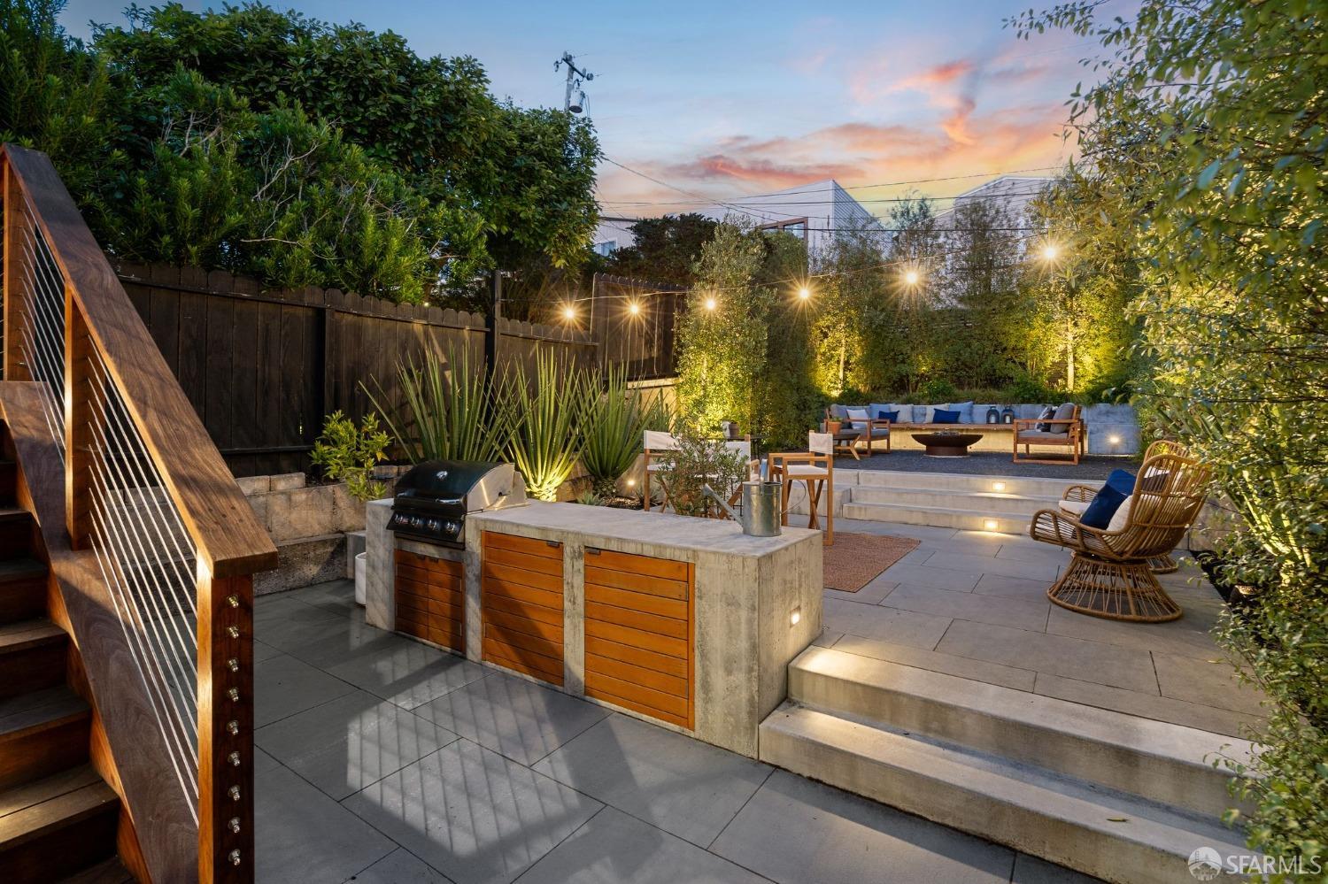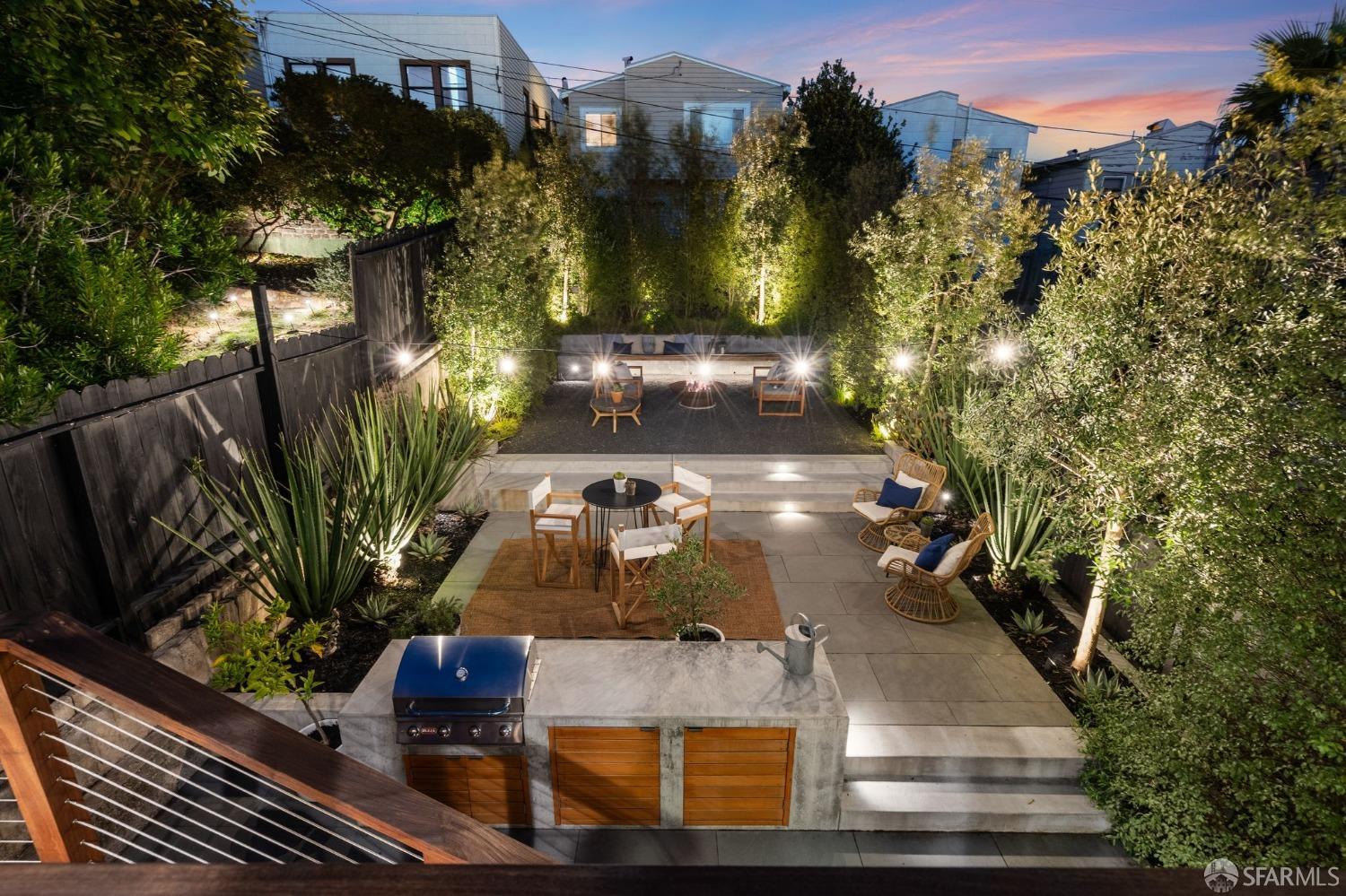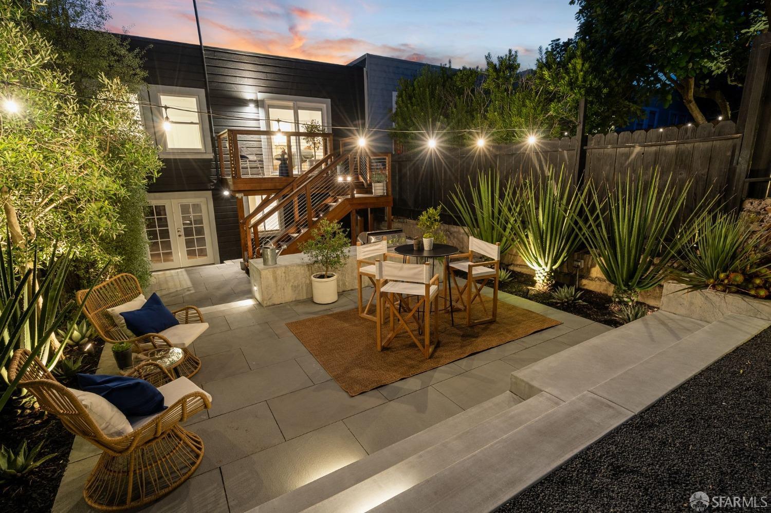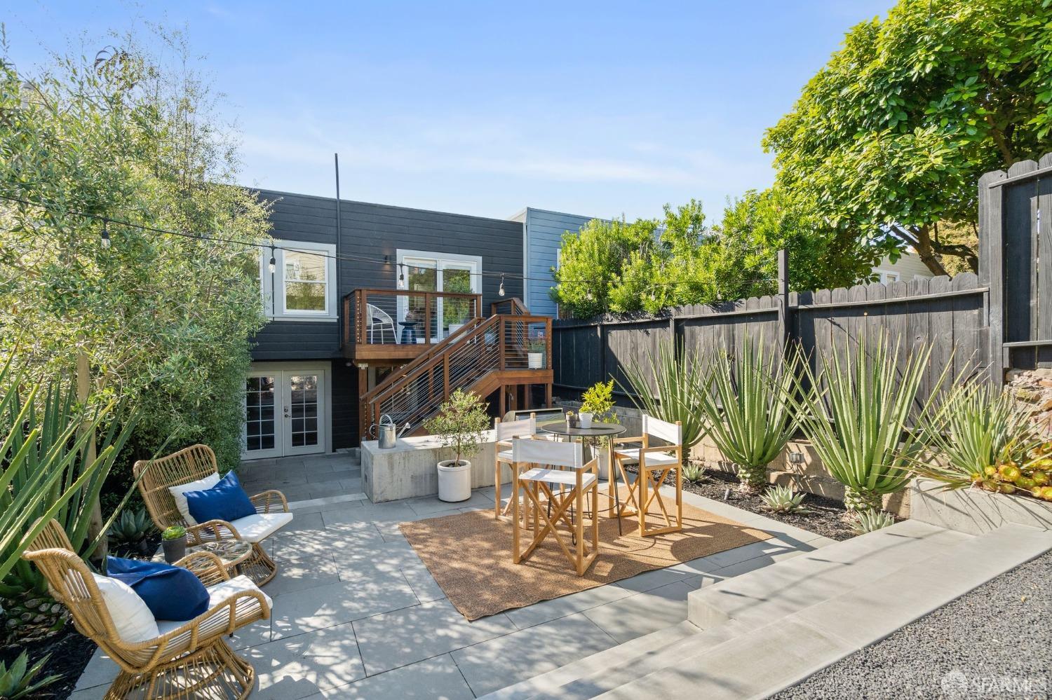 Stop searching! This light-filled center patio home with spacious rooms and numerous upgrades is located in the perfect Inner Parkside location. A gracious living room with high ceilings and an upgraded gas fireplace is the ideal place to unwind after a long day. There is a recently remodeled bathroom with designer finishes, the primary bedroom features a large walk-in closet, and a sliding door leads to the Ipe deck, which flows to the highlight of this home: the large, architecturally designed masterpiece of a rear yard. Recently reimagined for low maintenance and good times, this backyard boasts a built-in BBQ, thoughtful landscaping, and a gas fire pit that must be seen. The flexible lower level has a very usable unwarranted third bedroom and bathroom, wonderful as an office or a comfortable guest room. The extra-spacious garage with high ceilings offers room for expansion possibilities. There is easy access to excellent public and private schools, such as St. Cecelia's and Hoover Middle School, which are a short walk away. With Safeway, Guerra Meats, MUNI, and all the West Portal restaurants, cafes, and shops so close, not to mention the tech shuttle stops on 19th Ave, this location is second to none. Welcome home!