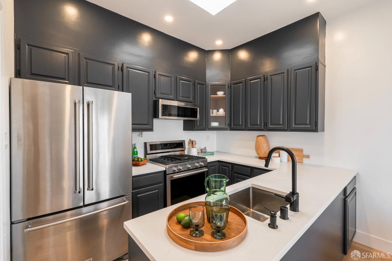 This beautifully expanded and remodeled Parkside 3-bedroom home blends comfort, style, and convenience. Recent upgrades include newer windows, roof, furnace and ducting, tankless water heater, and wide-plank wood floors throughout. An added internal staircase connects seamlessly to the newly expanded lower level, which now features two bedrooms, a spa-like bath with shower-over-tub, and a laundry closet. The main level offers a great room with a welcoming living area and stately corner fireplace, dining space, and an updated kitchen with stainless appliances, recessed lighting, and refreshed counters. Toward the rear is a generous bedroom, full bath with shower, and flexible landing area opening to a sunny deck with stairs down to the landscaped yard. The reimagined outdoor retreat boasts manicured garden beds with irrigation, turf lawn, newer fencing, and a charming pergola that adds an air of magic to the tranquil space. A one-car garage with interior access completes the home. Fantastic location near top schools, several parks and playgrounds, community gardens, plus local shops, cafs, bakeries and a farmers market. Walk Score: 84.
