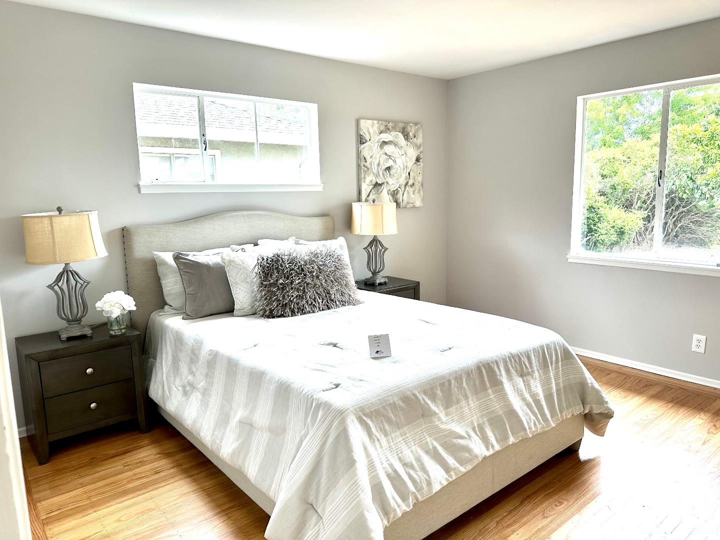 Absolutely darling home in highly sought after Cherry Chase Elementary school district within walking distance to the school. Home has had many upgrades: new garage roll up door, new interior paint, refinished hardwood floors, new vinyl laminate floors in kitchen and baths, new light fixtures, both baths were remodeled with new sinks, vanity, mirrors, toilets, tub & tub surround (primary bath), and new shower stall (hall baths). Kitchen has new countertops, sink, garbage disposal and dishwasher. New water heater, new drip mist irrigation system serving new plantings enhanced by mini bark ground cover. Big garage, and plenty of storage room and off street parking. Larger than normal lot, front has mature citrus trees, and backyard is roomy, private and has mature trees providing ample shade. Nice patio area for entertaining. Very convenient location with bus line, and major commute freeways nearby. Zanottos, Starbucks, Safeway, and Stevens Creek bike trail also nearby.