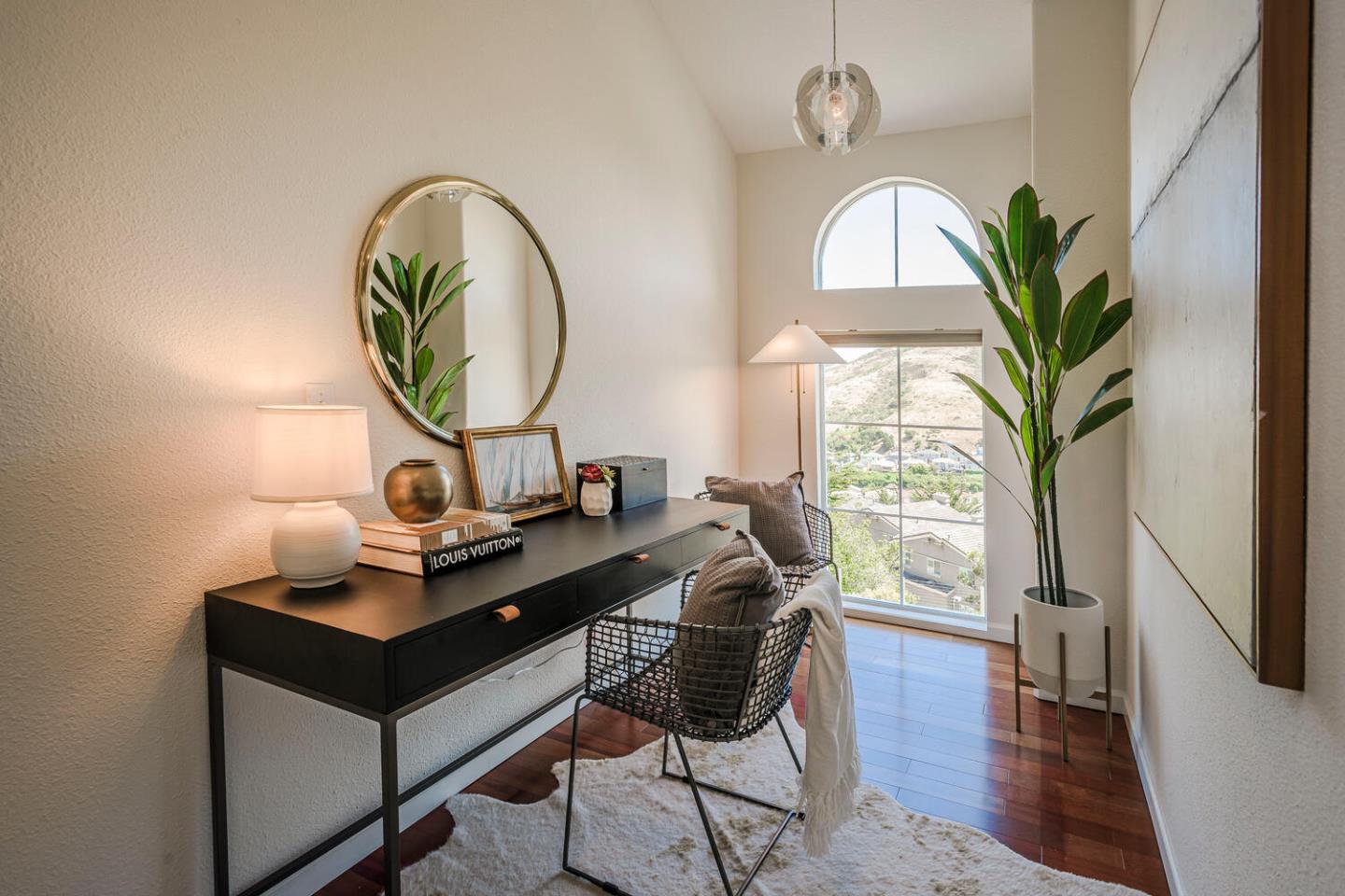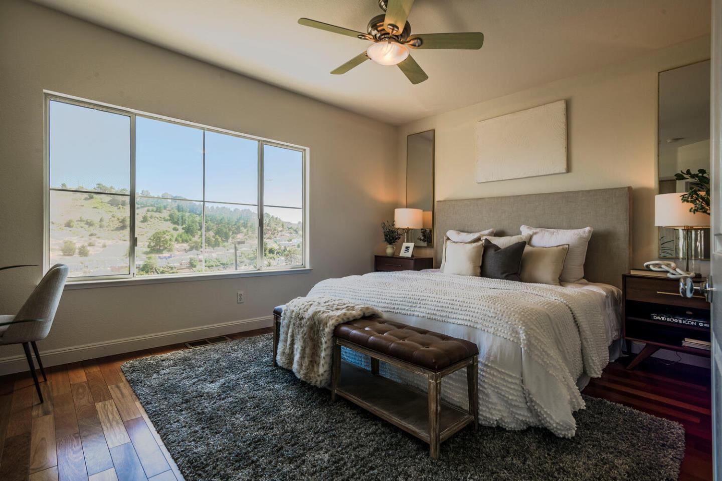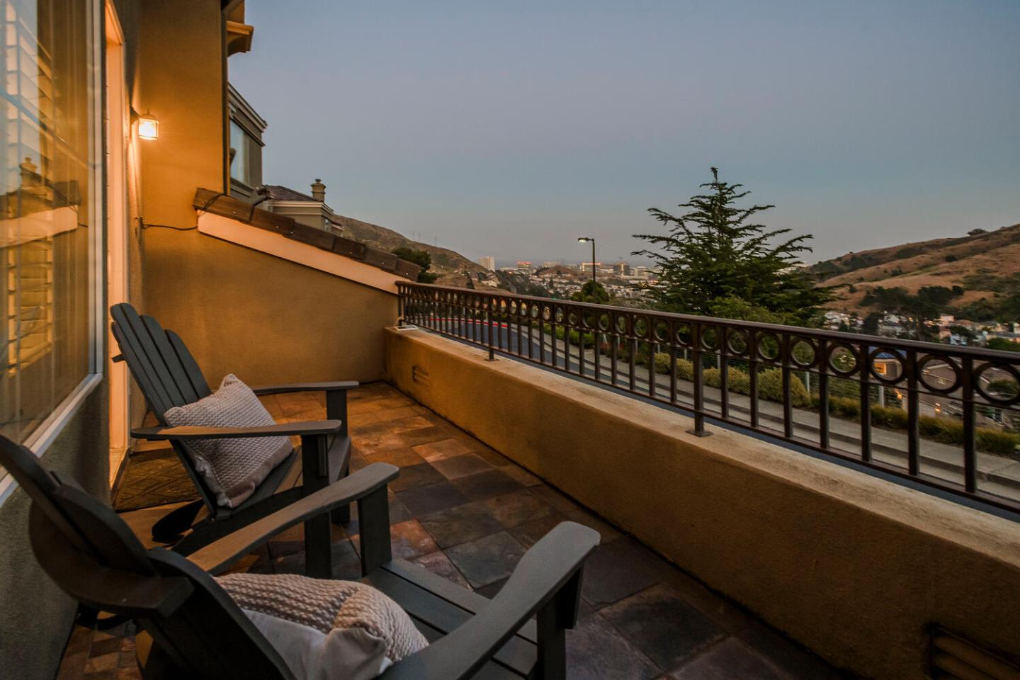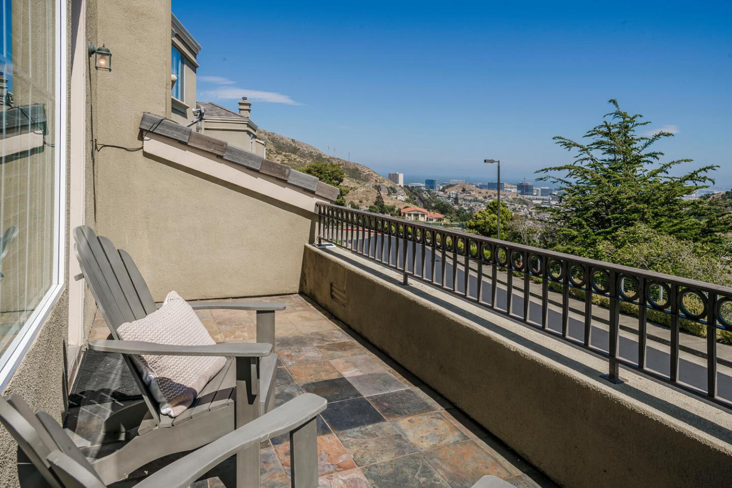 Breathtaking Bay and mountain views surround this open concept luxury home. Flowing living & dining rooms, hardwood floors, stone fireplace & adjoining slate tile balcony. Eat-in chefs kitchen which opens directly to the landscaped backyard with dual patio surfaces & scenic mountain to sky views; enjoy granite counters, stainless appliances & separate laundry room with pantry space. . Primary bedroom with sophisticated custom closets & oversized ensuite bathroom featuring dual sinks & multi-jet spa tub. Second bedroom with unique built-in Murphy bed, closet organizers, & separate ensuite bath. Third bedroom was converted to a family room/home office space. Additional nook/den for craft/art studio/office illuminated by high ceilings & bright light & home gym. Extra privacy with no neighbors in front or behind. 2 Car attached garage with both gym & storage. Prime South San Francisco location! Close to biotech, SFO, & downtown Grand Ave. with its restaurants, cafes, & shops