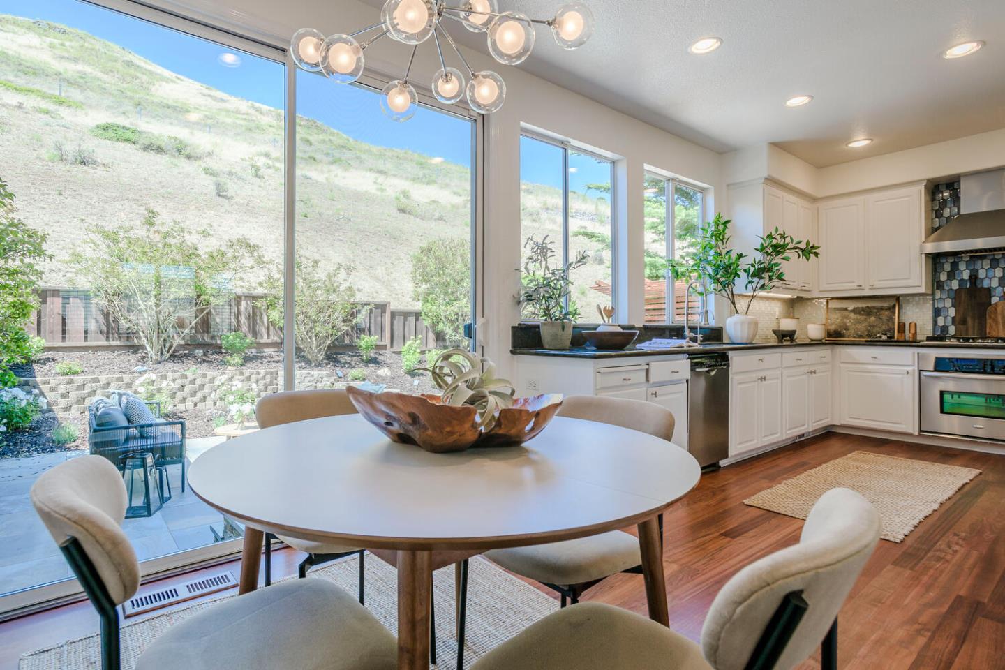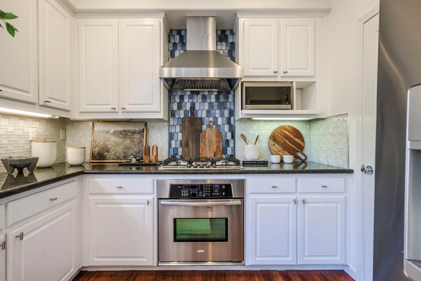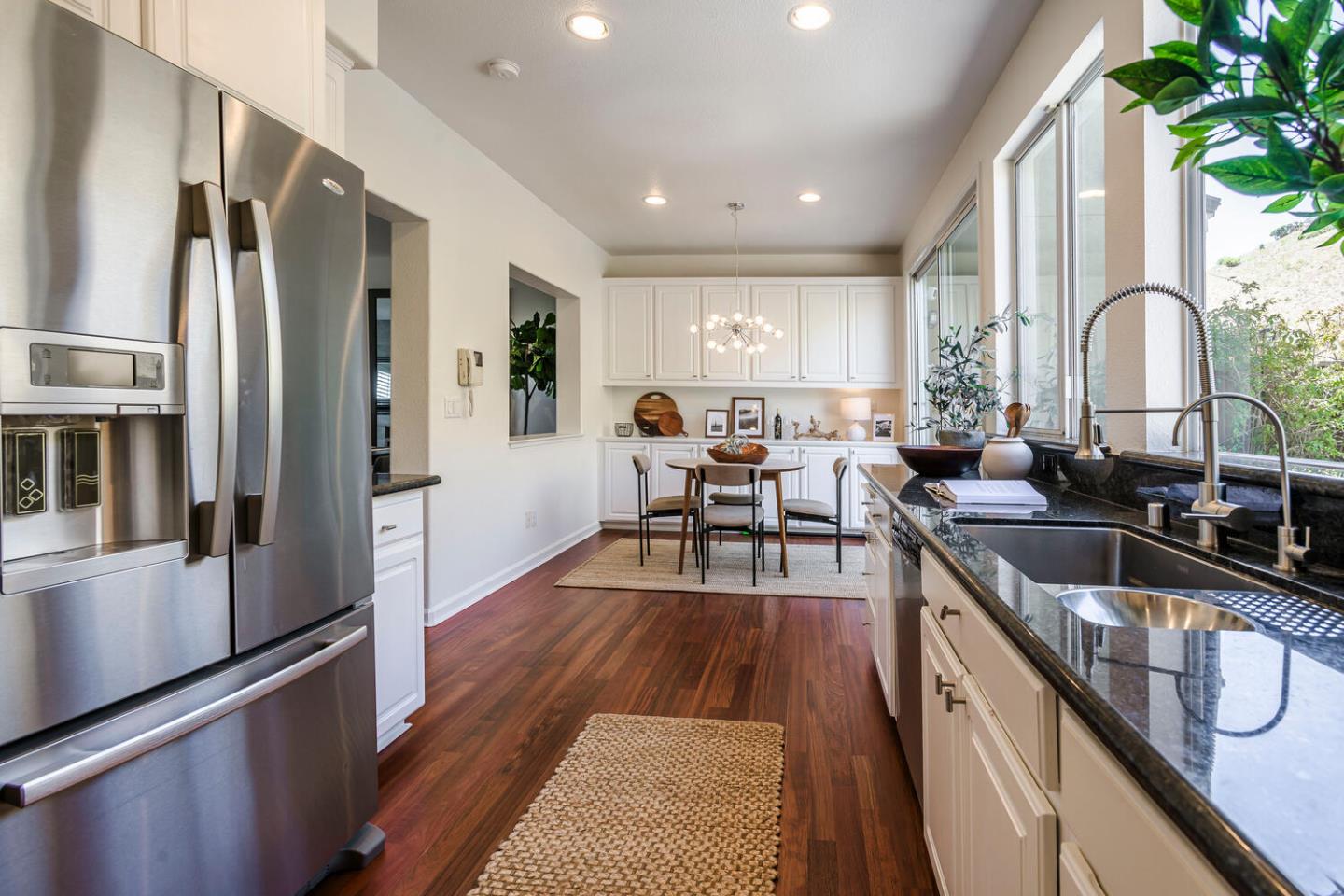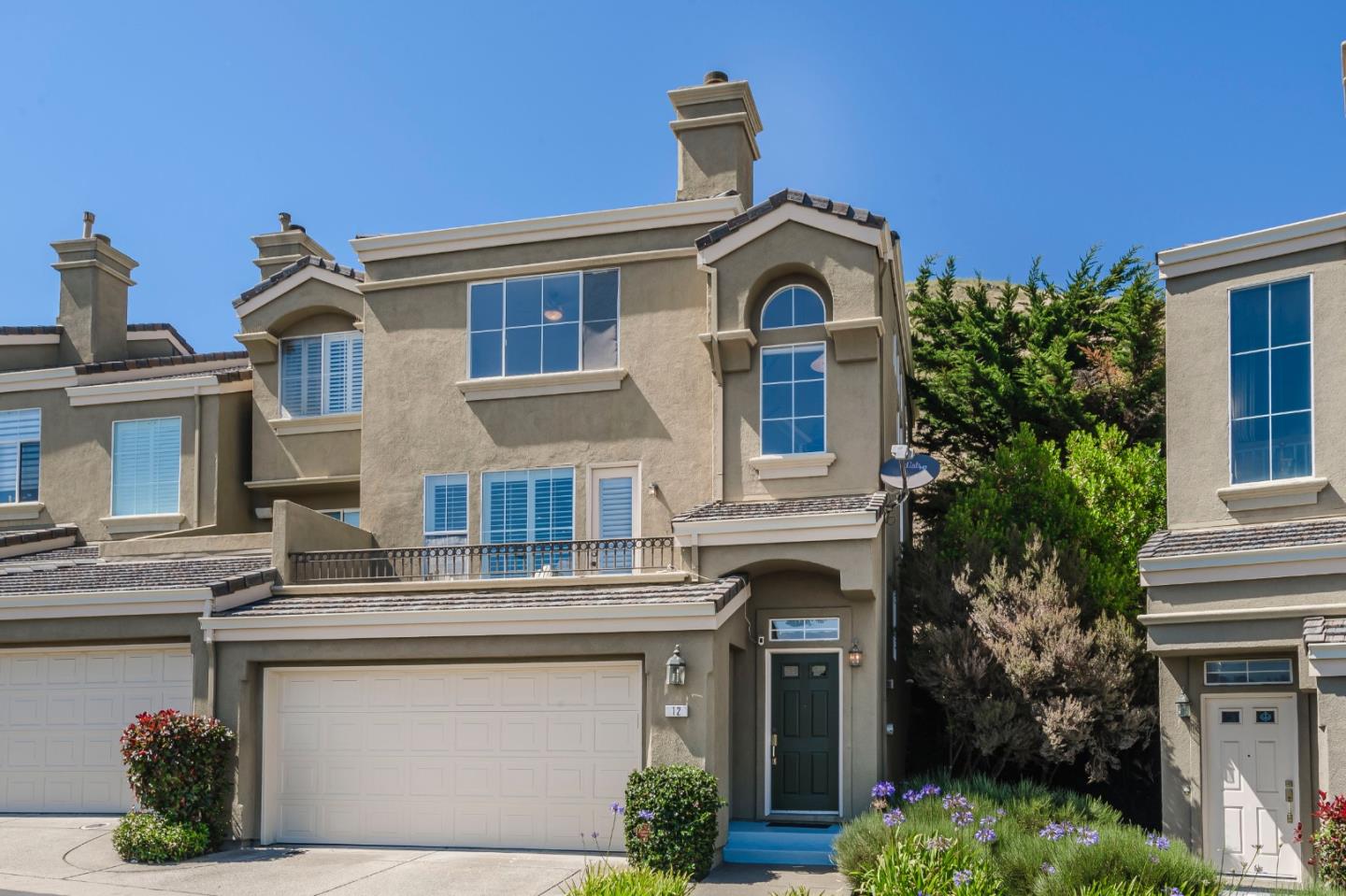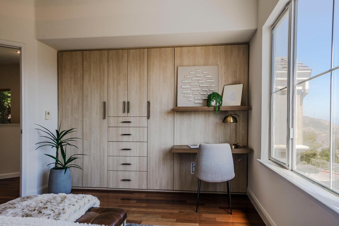 Breathtaking Bay and mountain views surround this open concept luxury home. Flowing living & dining rooms, hardwood floors, stone fireplace & adjoining slate tile balcony. Eat-in chefs kitchen which opens directly to the landscaped backyard with dual patio surfaces & scenic mountain to sky views; enjoy granite counters, stainless appliances & separate laundry room with pantry space. . Primary bedroom with sophisticated custom closets & oversized ensuite bathroom featuring dual sinks & multi-jet spa tub. Second bedroom with unique built-in Murphy bed, closet organizers, & separate ensuite bath. Third bedroom was converted to a family room/home office space. Additional nook/den for craft/art studio/office illuminated by high ceilings & bright light & home gym. Extra privacy with no neighbors in front or behind. 2 Car attached garage with both gym & storage. Prime South San Francisco location! Close to biotech, SFO, & downtown Grand Ave. with its restaurants, cafes, & shops