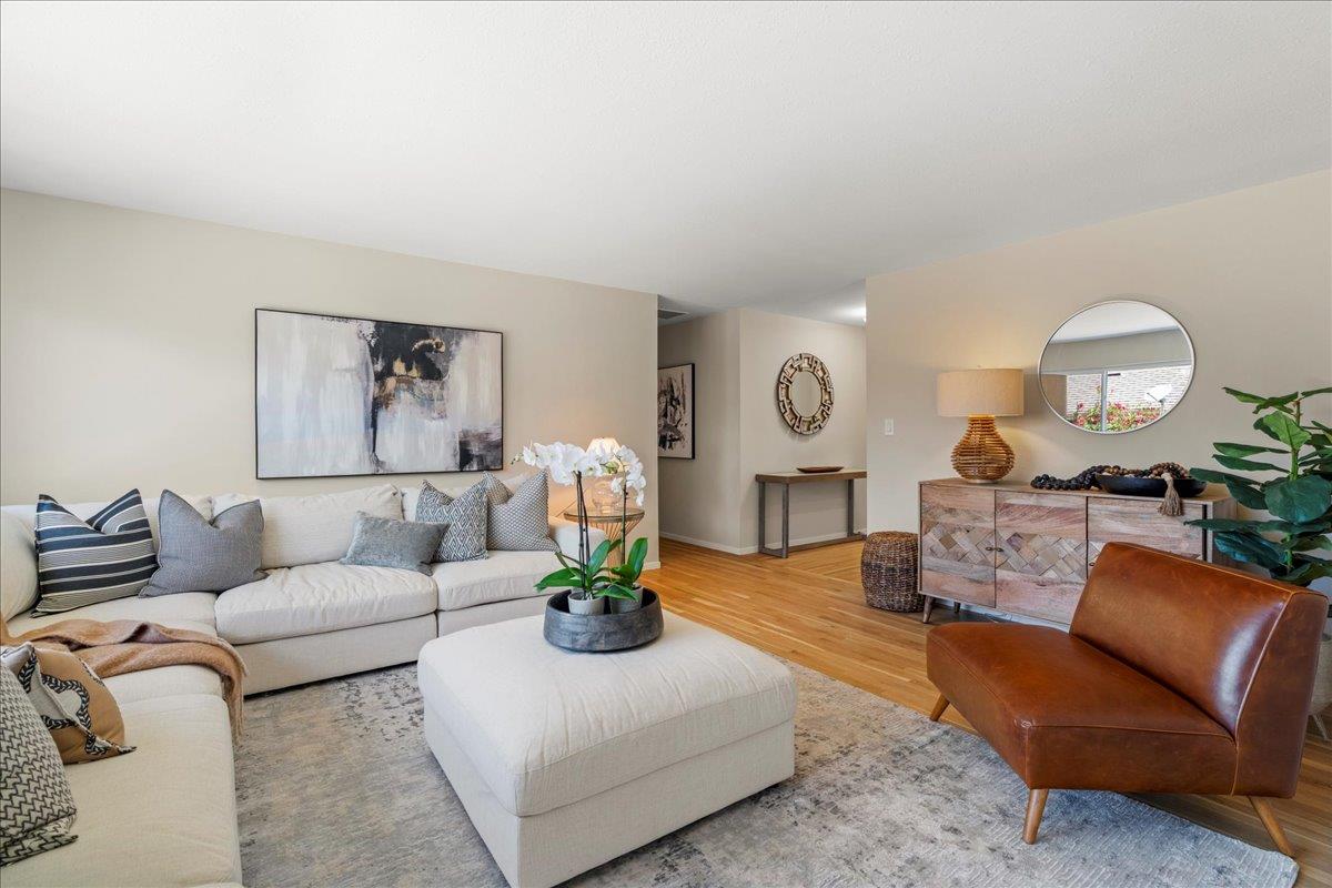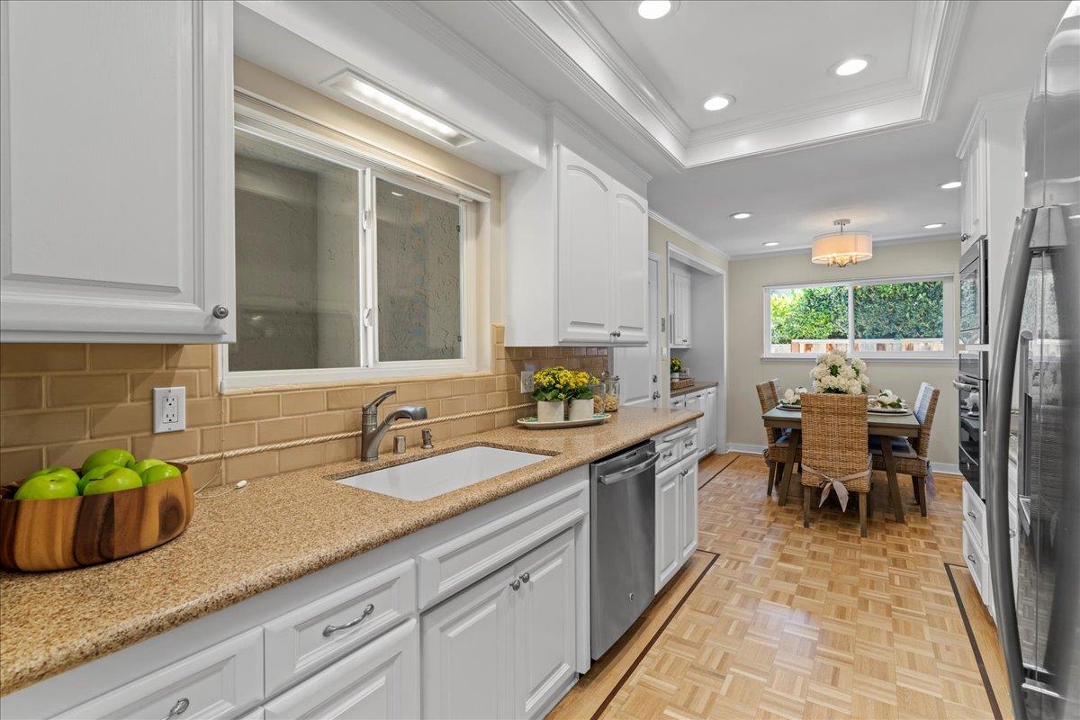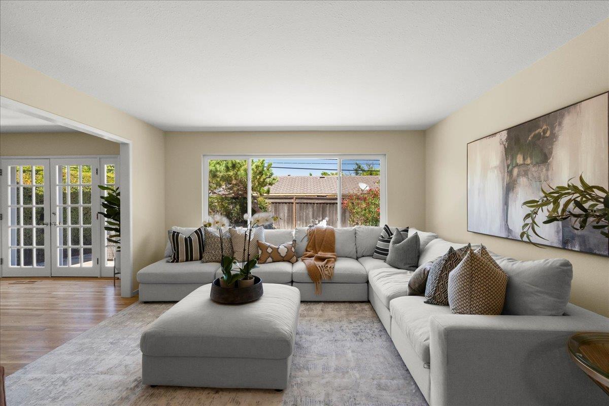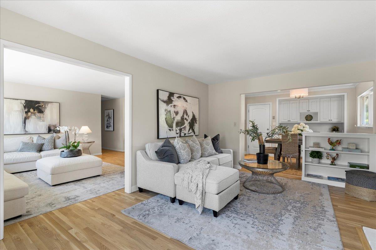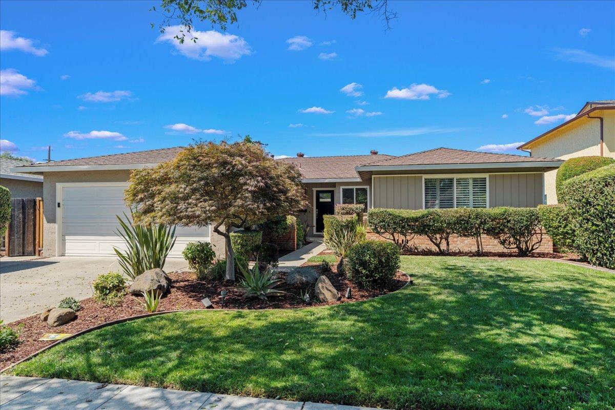 Picture perfect charming updated one level 4 bedroom home located in highly desirable Cupertino/Fremont Union School District.Sunny fabulous floor plan features formal entry,spacious separate living and family rooms,remodeled kitchen & bathrooms+4 bedrooms inc primary en-suite.Cook's kitchen features GE stainless appliances,granite slab counters,subway style backsplash+newly painted cabinets.Dining room w built-in buffet ideal for casual or formal dining.French doors leading from the family room(with wood burning fireplace and built in cabinets+bookcases)to the lovely backyard create a seamless integration of indoor/outdoor living. Recent upgrades include new interior+exterior paint,Craftsman front door,stunning refinished hardwood floors,newer windows,newly glazed bathroom counters,light fixtures+beautifully refreshed landscaping including new backyard lawn.Two-Car attached garage+Air Conditioning.Well located within minutes to tech campuses,schools,freeways,restaurants + shopping.