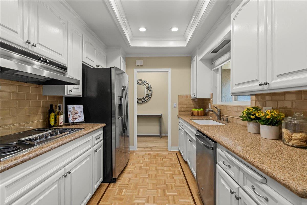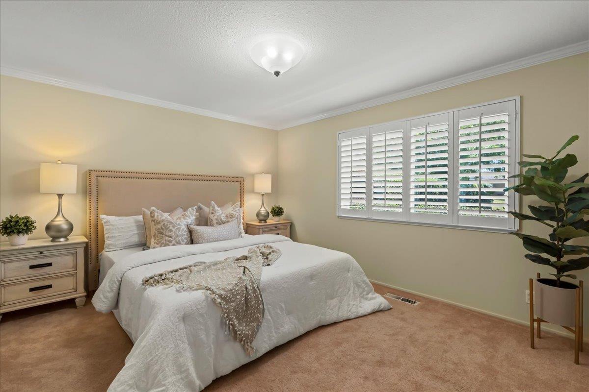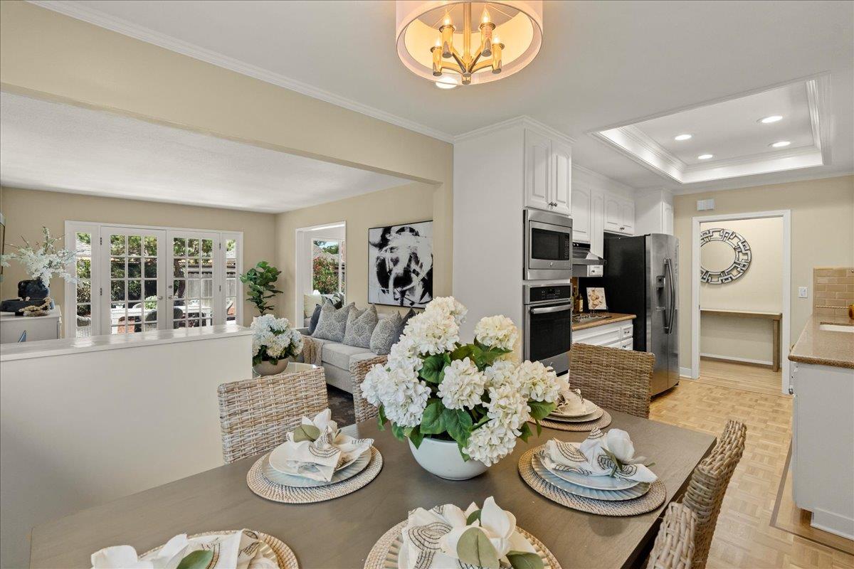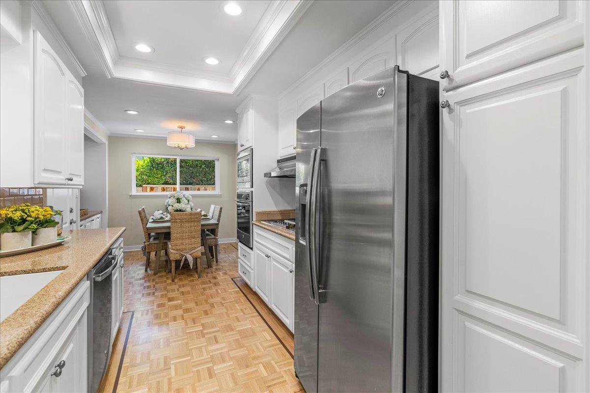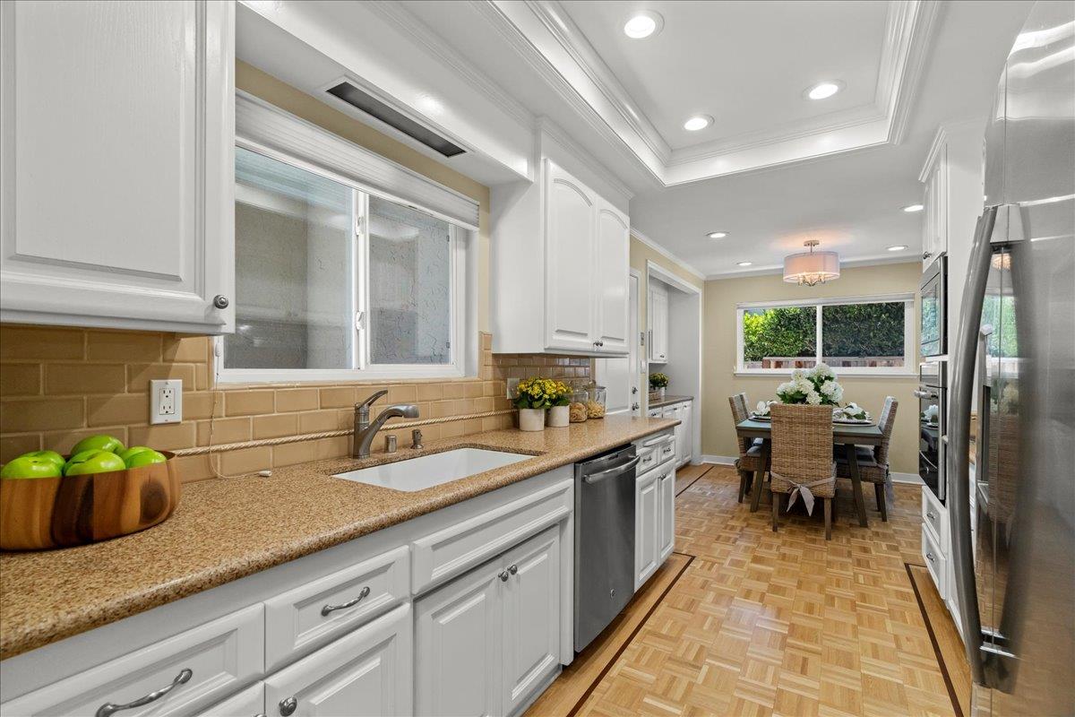 Picture perfect charming updated one level 4 bedroom home located in highly desirable Cupertino/Fremont Union School District.Sunny fabulous floor plan features formal entry,spacious separate living and family rooms,remodeled kitchen & bathrooms+4 bedrooms inc primary en-suite.Cook's kitchen features GE stainless appliances,granite slab counters,subway style backsplash+newly painted cabinets.Dining room w built-in buffet ideal for casual or formal dining.French doors leading from the family room(with wood burning fireplace and built in cabinets+bookcases)to the lovely backyard create a seamless integration of indoor/outdoor living. Recent upgrades include new interior+exterior paint,Craftsman front door,stunning refinished hardwood floors,newer windows,newly glazed bathroom counters,light fixtures+beautifully refreshed landscaping including new backyard lawn.Two-Car attached garage+Air Conditioning.Well located within minutes to tech campuses,schools,freeways,restaurants + shopping.