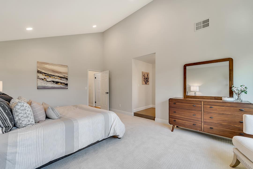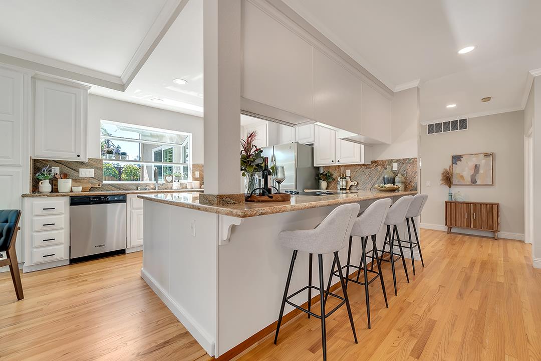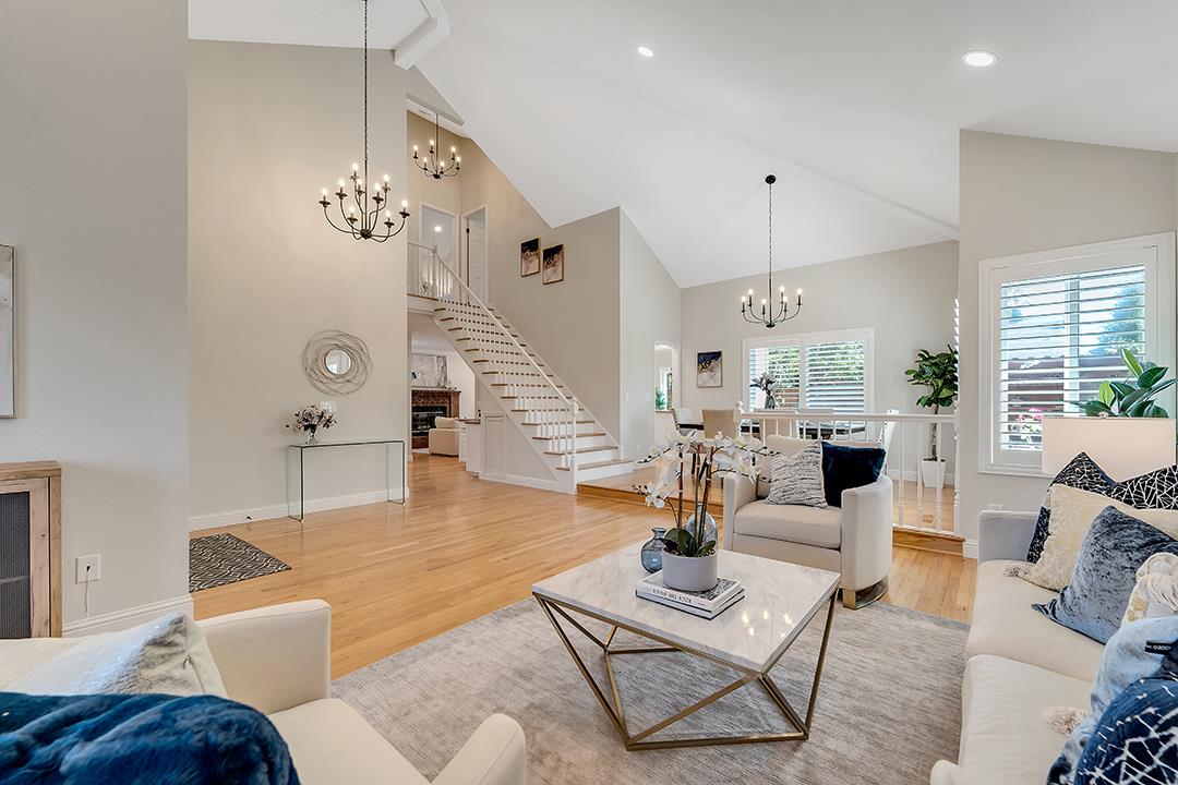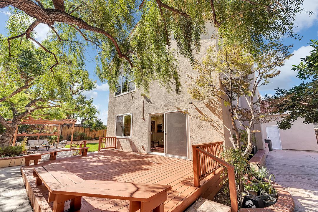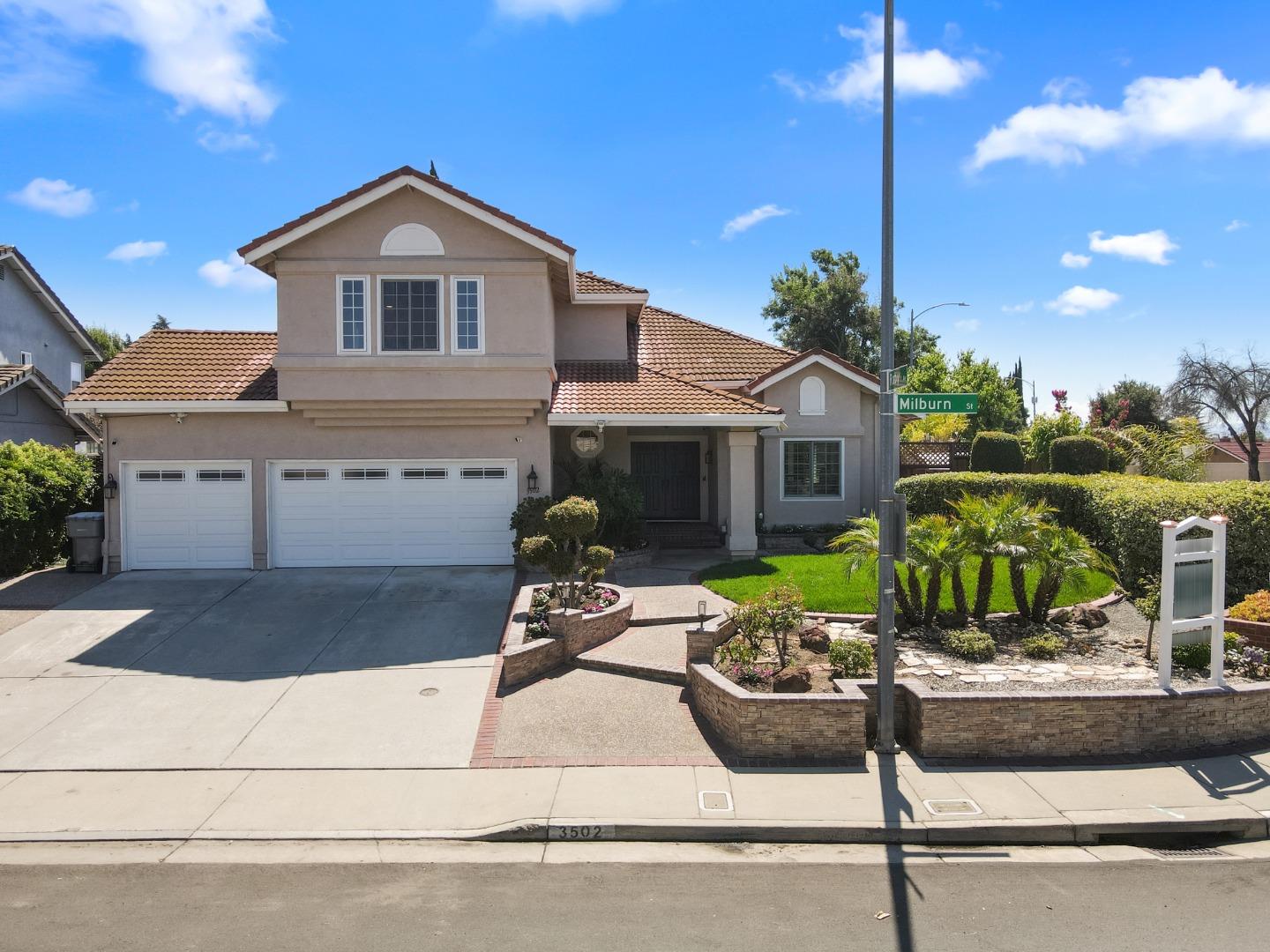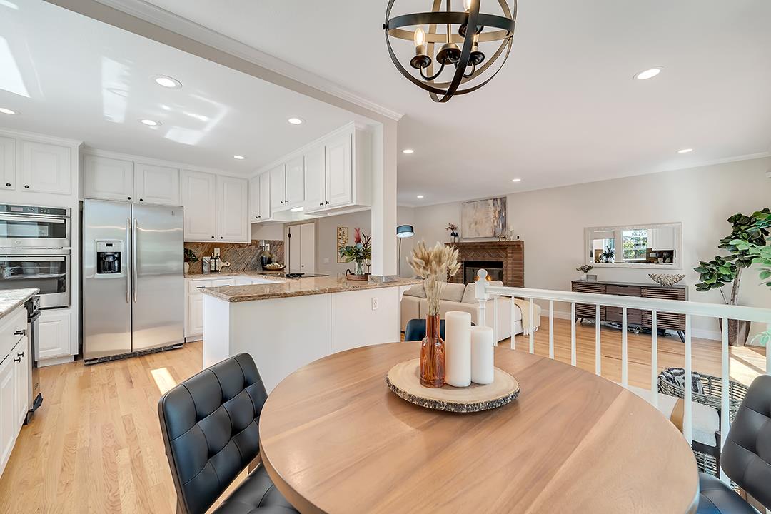 Modern elegance blends with classic charm in this spacious corner-lot home. Vaulted ceilings and an open floor plan imparts a feeling of spaciousness and sophistication. The living room combines comfort and style, adorned with recessed lighting and polished hardwood floors. The kitchen is a chefs dream, offering ample space for culinary mastery. A breakfast nook provides a casual dining, while the luxe dining room and wet bar elevate your entertaining experience. On the ground floor, you'll also find a generous bedroom and remodeled full bath. Upstairs, three bedrooms plus a grand primary suite with vaulted ceilings, walk-in closet, and spacious bath with dual vanities. A large front bedroom with two closets impart views of the foothills. Two inviting bedrooms offer plenty of room for loved ones. The backyard features an expansive deck, pergola and a level lawn perfect for playtime. This serene space is adorned with mature trees and greenery, providing an ideal retreat.