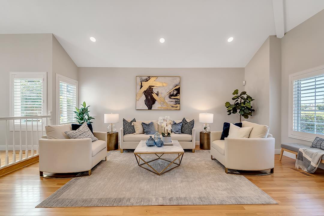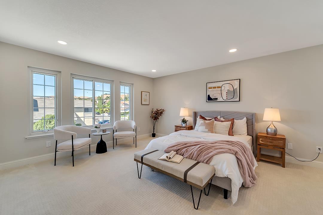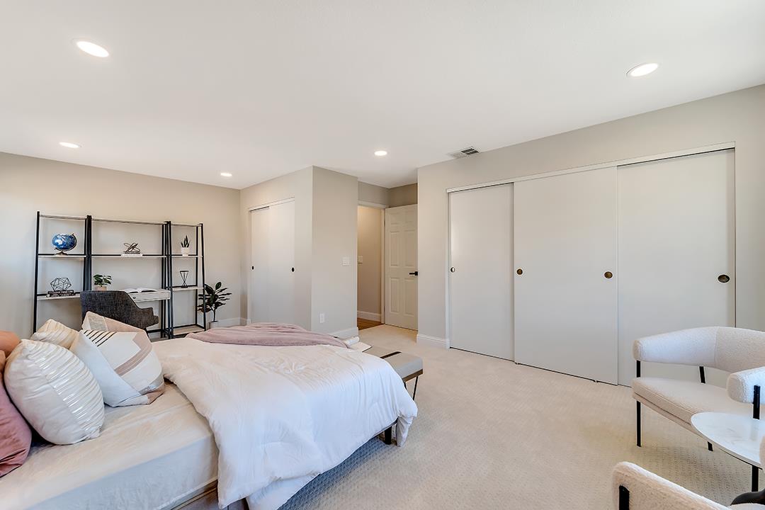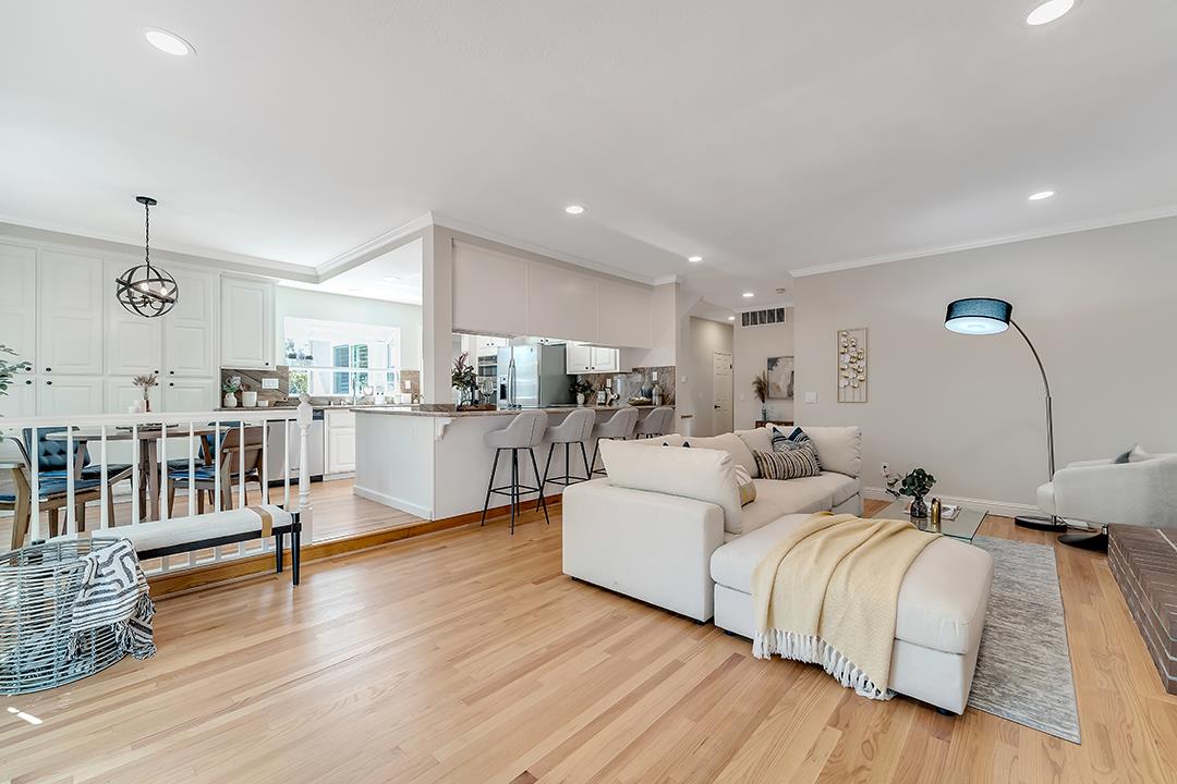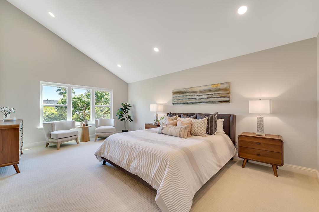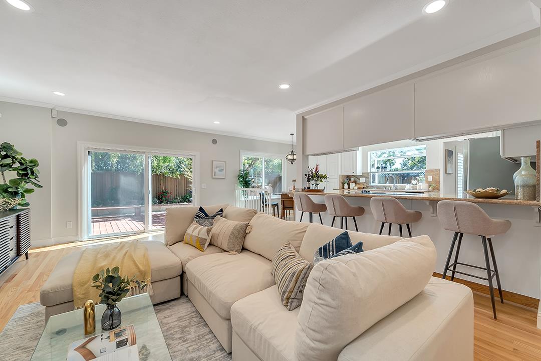 Modern elegance blends with classic charm in this spacious corner-lot home. Vaulted ceilings and an open floor plan imparts a feeling of spaciousness and sophistication. The living room combines comfort and style, adorned with recessed lighting and polished hardwood floors. The kitchen is a chefs dream, offering ample space for culinary mastery. A breakfast nook provides a casual dining, while the luxe dining room and wet bar elevate your entertaining experience. On the ground floor, you'll also find a generous bedroom and remodeled full bath. Upstairs, three bedrooms plus a grand primary suite with vaulted ceilings, walk-in closet, and spacious bath with dual vanities. A large front bedroom with two closets impart views of the foothills. Two inviting bedrooms offer plenty of room for loved ones. The backyard features an expansive deck, pergola and a level lawn perfect for playtime. This serene space is adorned with mature trees and greenery, providing an ideal retreat.