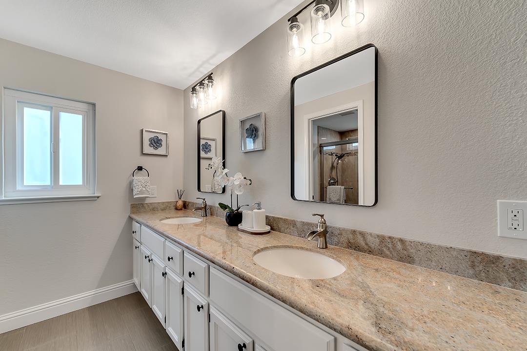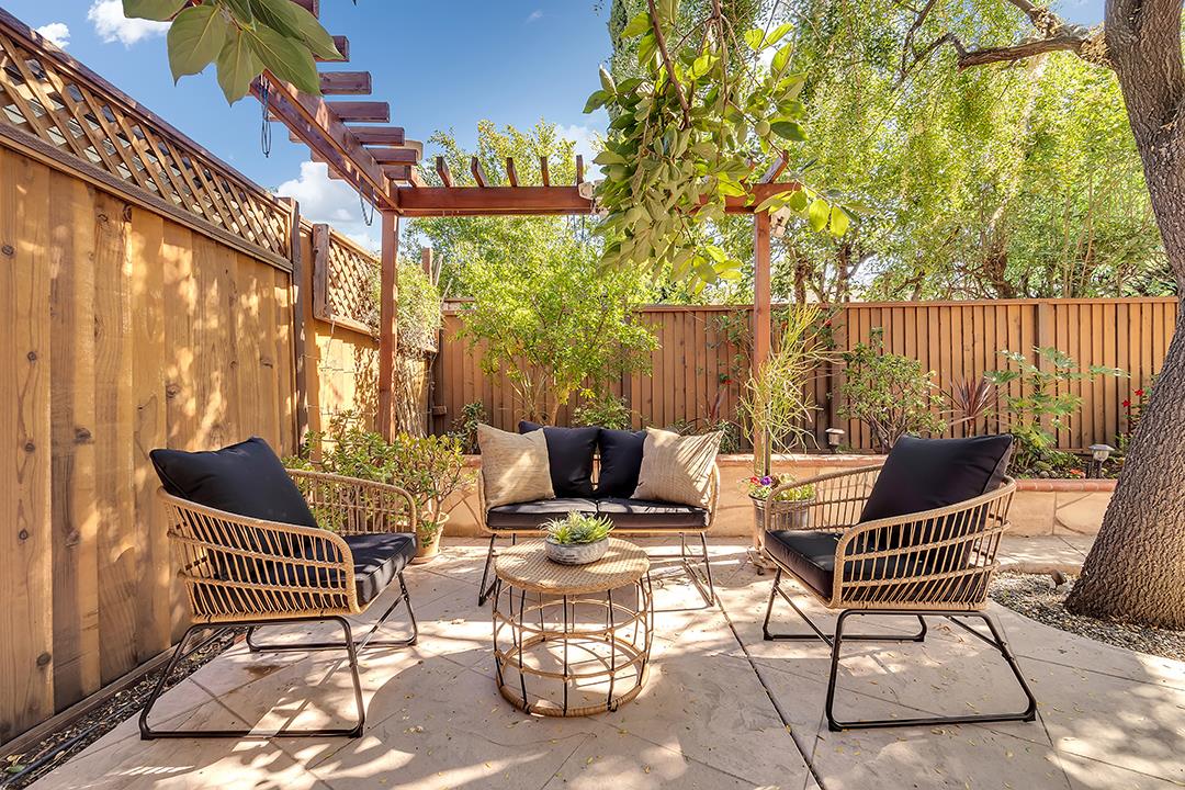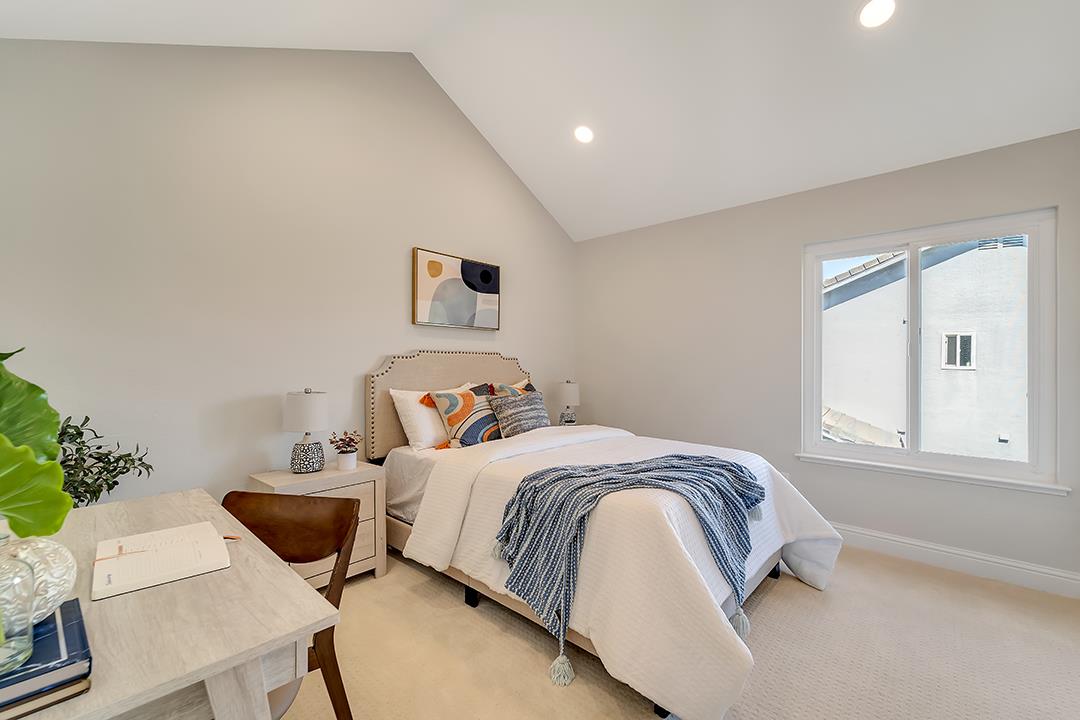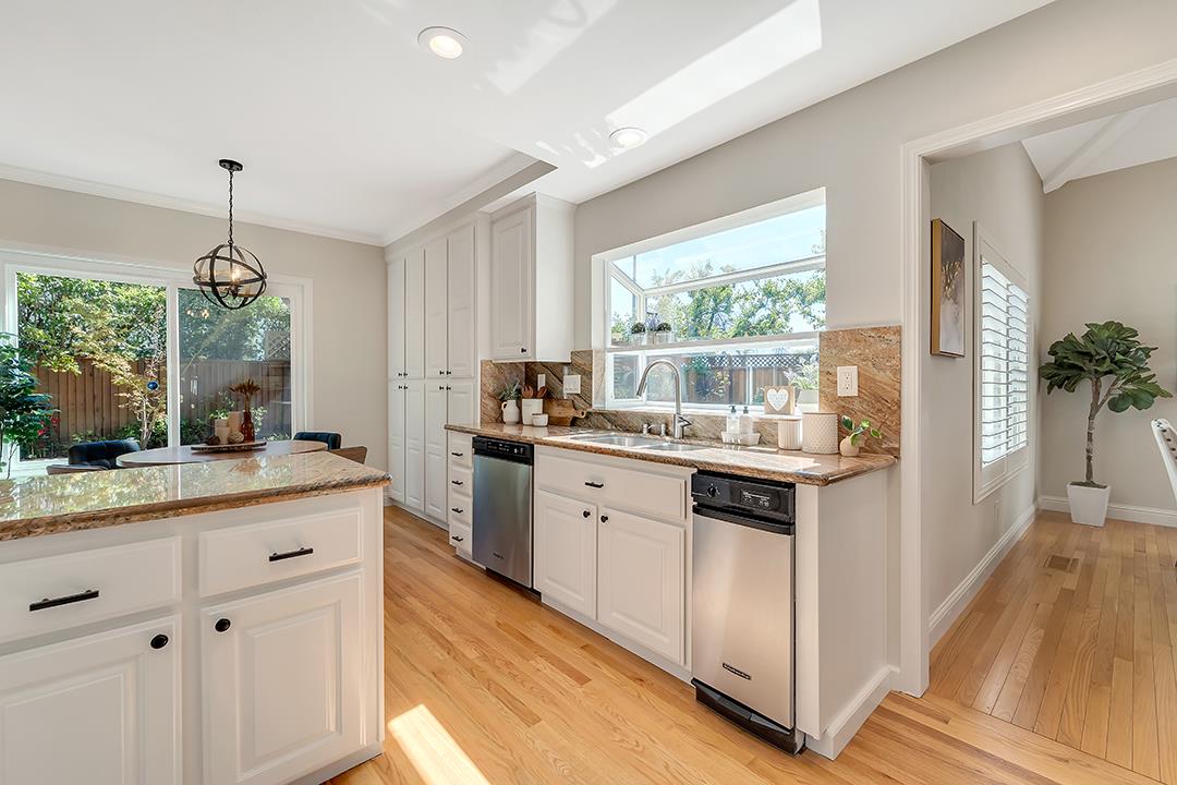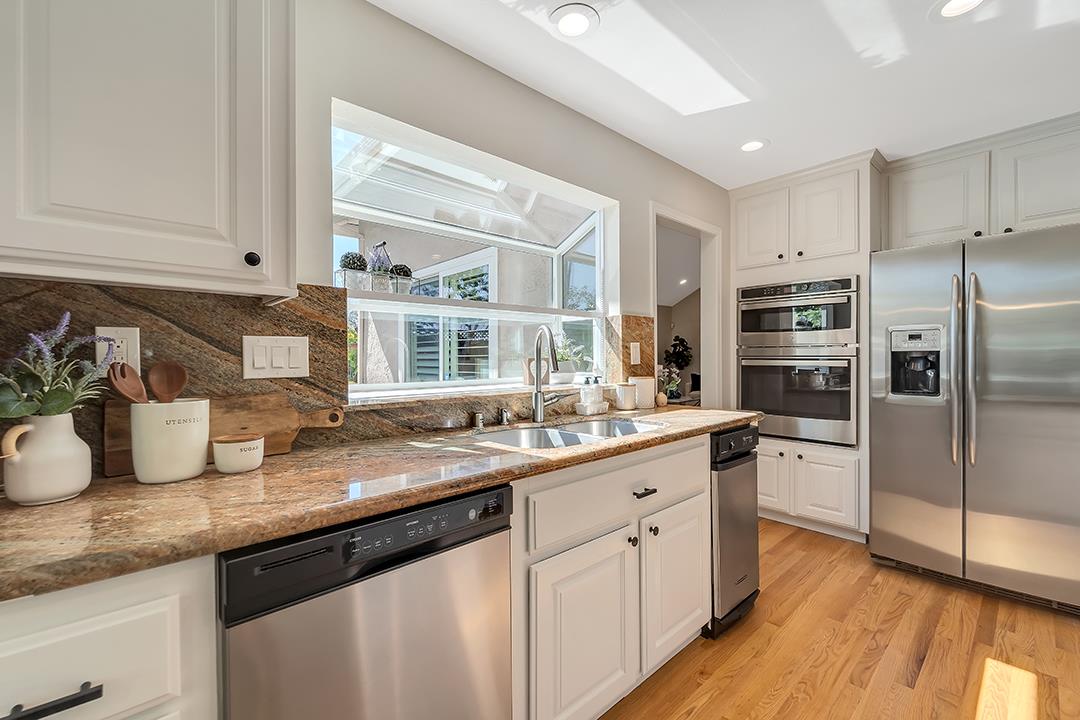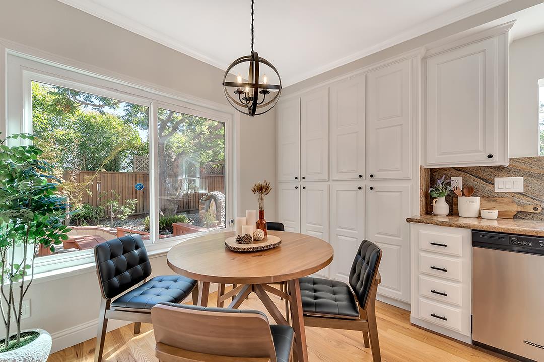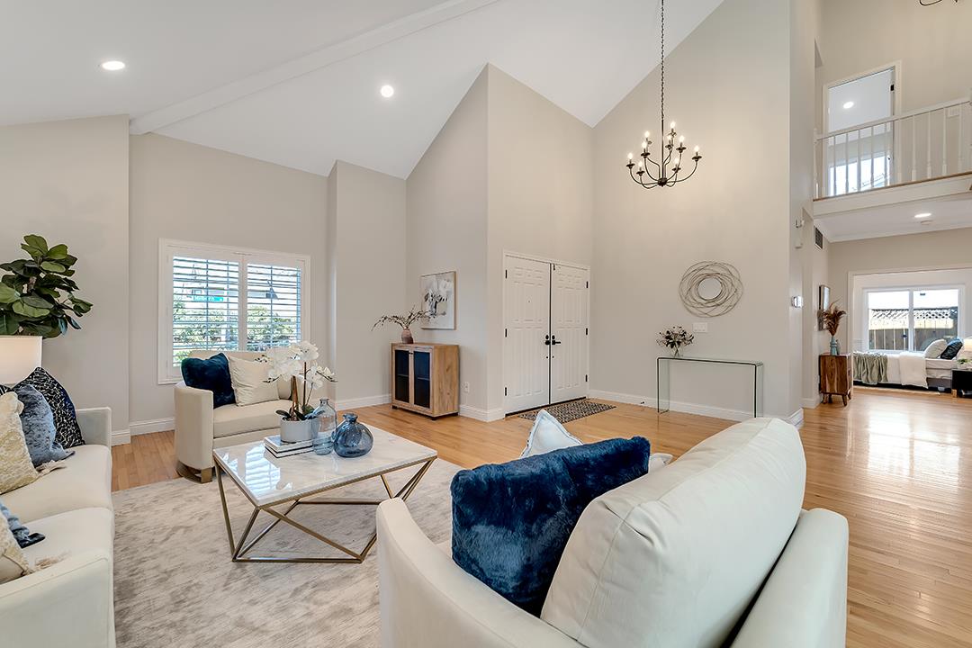 Modern elegance blends with classic charm in this spacious corner-lot home. Vaulted ceilings and an open floor plan imparts a feeling of spaciousness and sophistication. The living room combines comfort and style, adorned with recessed lighting and polished hardwood floors. The kitchen is a chefs dream, offering ample space for culinary mastery. A breakfast nook provides a casual dining, while the luxe dining room and wet bar elevate your entertaining experience. On the ground floor, you'll also find a generous bedroom and remodeled full bath. Upstairs, three bedrooms plus a grand primary suite with vaulted ceilings, walk-in closet, and spacious bath with dual vanities. A large front bedroom with two closets impart views of the foothills. Two inviting bedrooms offer plenty of room for loved ones. The backyard features an expansive deck, pergola and a level lawn perfect for playtime. This serene space is adorned with mature trees and greenery, providing an ideal retreat.