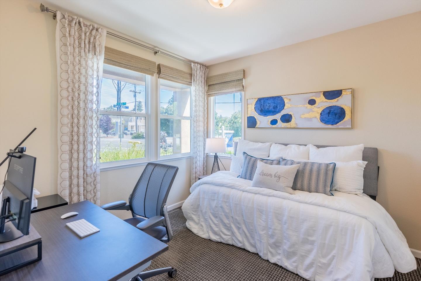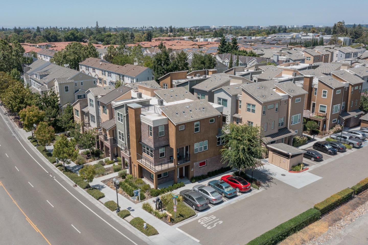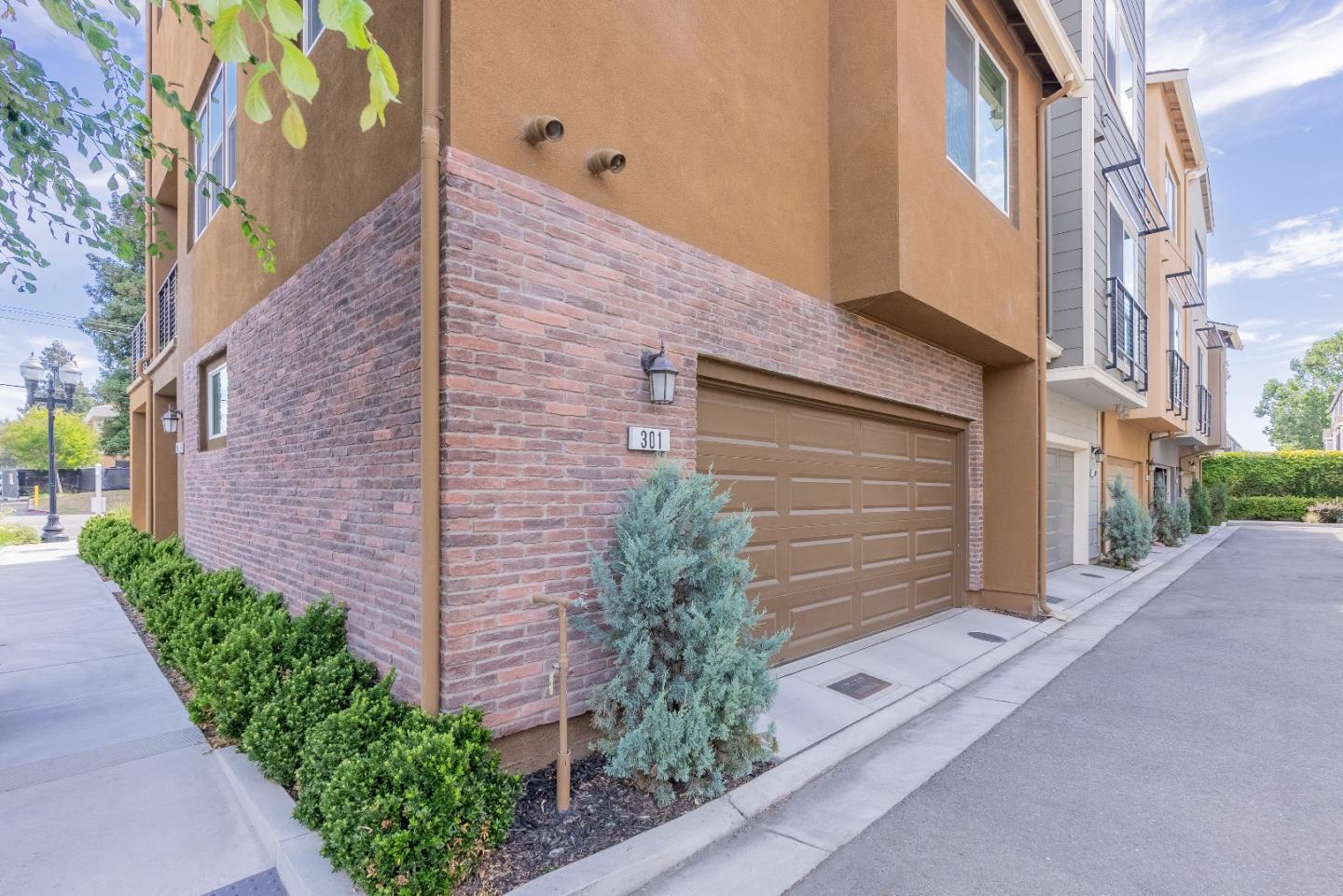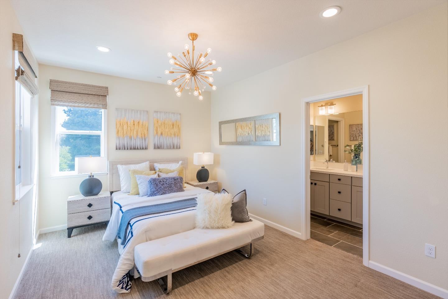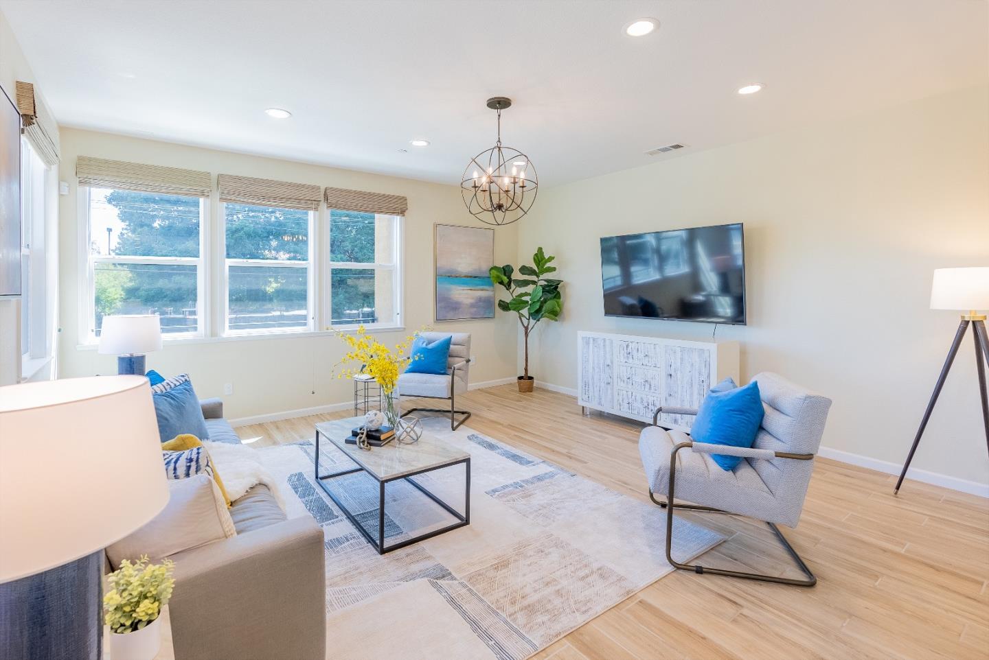 Model tri-level end unit, built in 2017, offers an abundance of natural light and an open floor plan. Main floor bedroom with en suite bath, walk in closet and personal air conditioning is the perfect retreat for extended family or an office. The chef's kitchen with quartz countertops, upgraded appliances and designer cabinets includes an eat in dining area open to an oversized living room with ceramic tile floors with a hardwood look and feel plus private outdoor patio on the main floor. A spacious bedroom with built-in cabinetry and hall bath complete this level. On the third floor are two more bedrooms each with en suite bathroom one with dual sink vanity and two walk in closets, built in hall cabinetry and laundry room. Deluxe drapery and recessed lighting throughout. Air condition and two car attached garage. This home is situated with easy access to light rail, Caltrain, major freeways, just minutes to downtown Sunnyvale. Walking distance to Apple Campus.