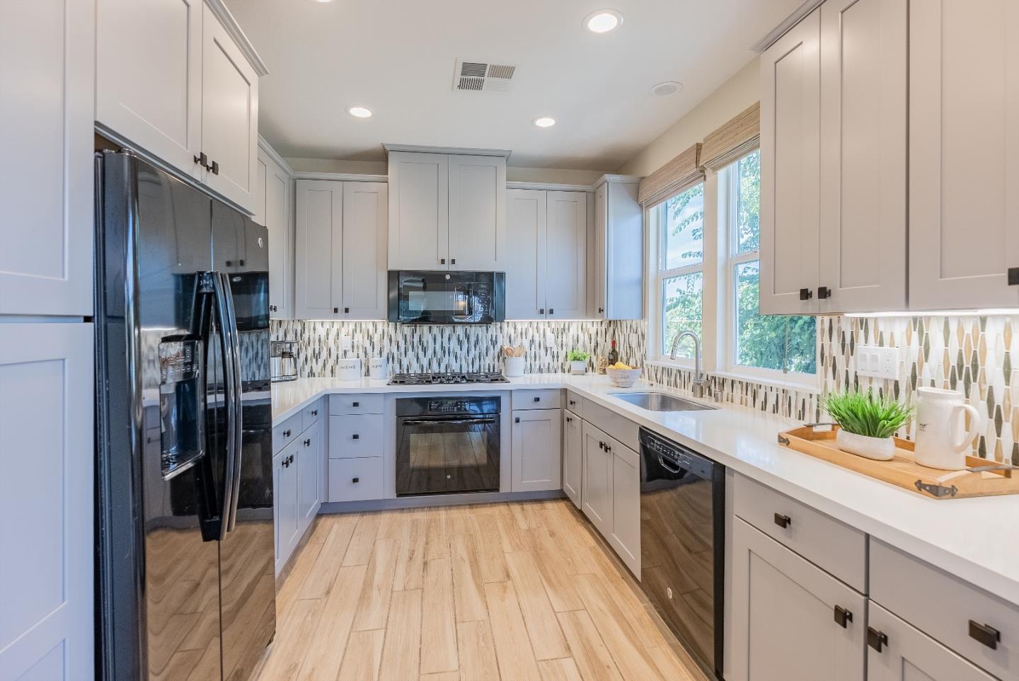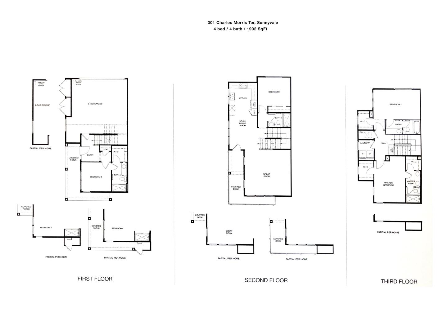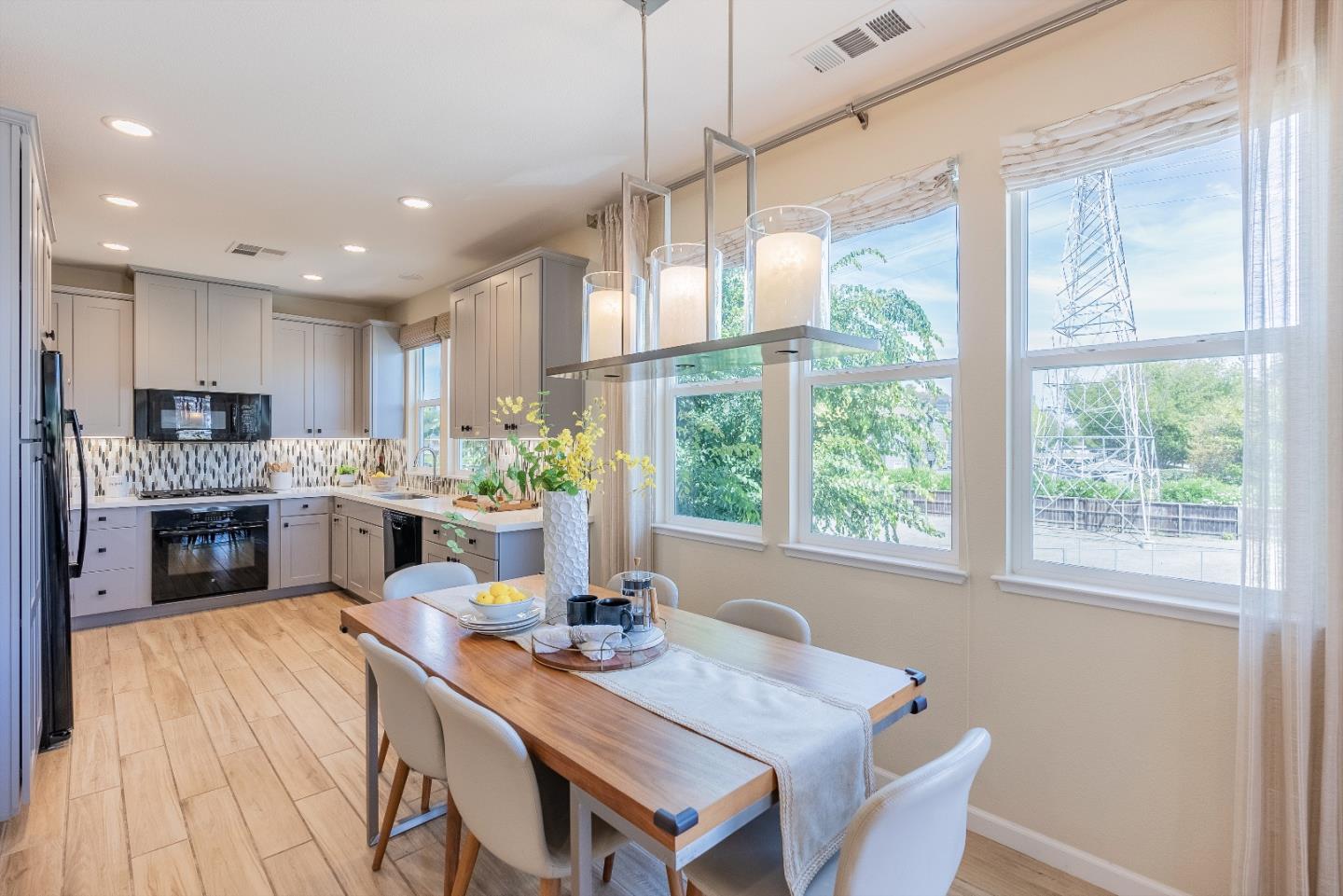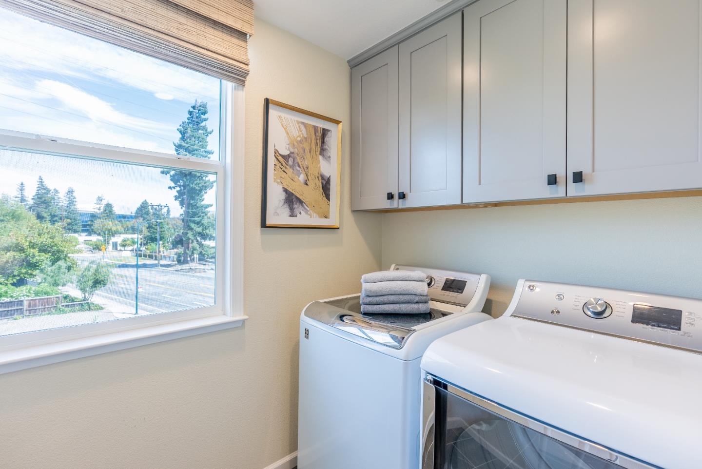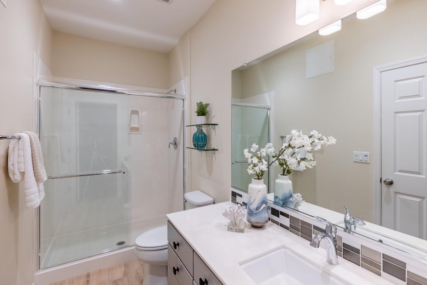 Model tri-level end unit, built in 2017, offers an abundance of natural light and an open floor plan. Main floor bedroom with en suite bath, walk in closet and personal air conditioning is the perfect retreat for extended family or an office. The chef's kitchen with quartz countertops, upgraded appliances and designer cabinets includes an eat in dining area open to an oversized living room with ceramic tile floors with a hardwood look and feel plus private outdoor patio on the main floor. A spacious bedroom with built-in cabinetry and hall bath complete this level. On the third floor are two more bedrooms each with en suite bathroom one with dual sink vanity and two walk in closets, built in hall cabinetry and laundry room. Deluxe drapery and recessed lighting throughout. Air condition and two car attached garage. This home is situated with easy access to light rail, Caltrain, major freeways, just minutes to downtown Sunnyvale. Walking distance to Apple Campus.