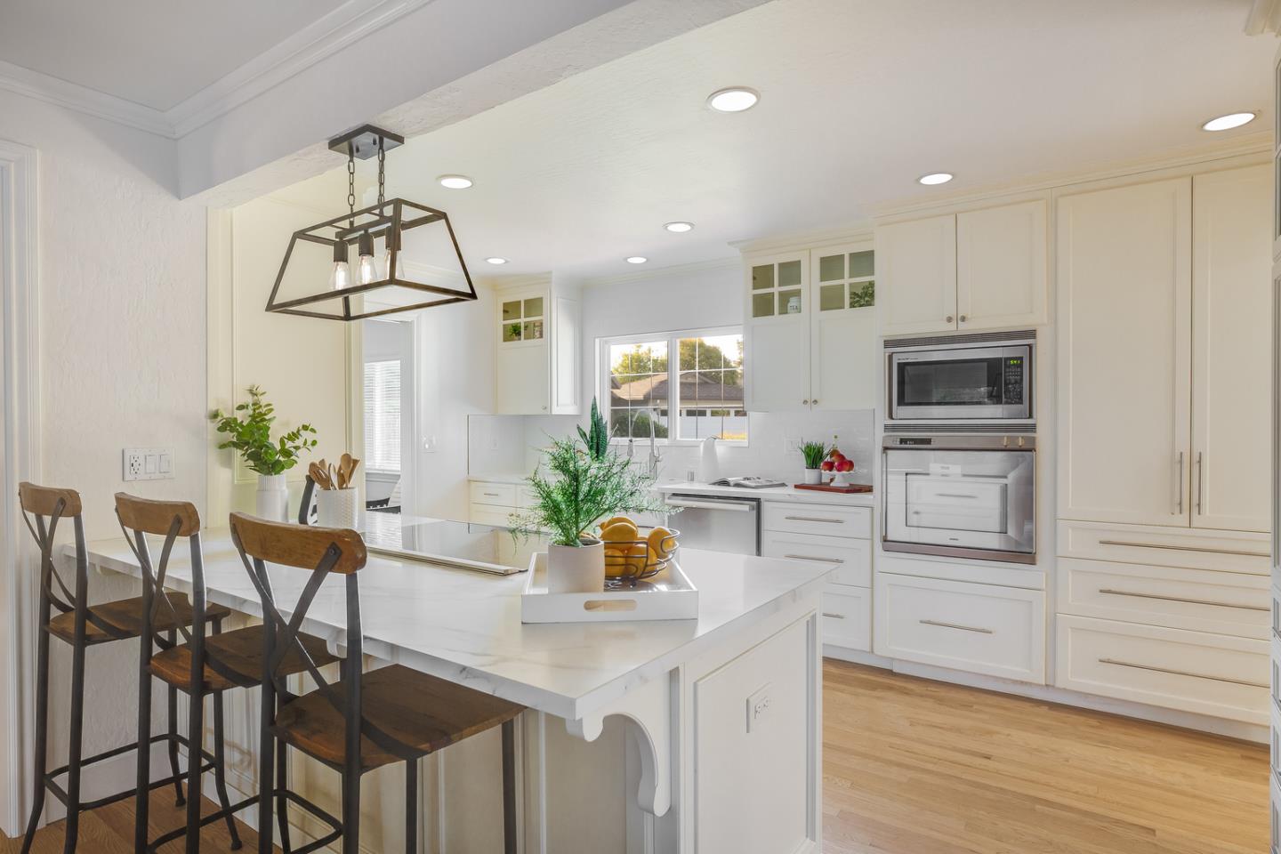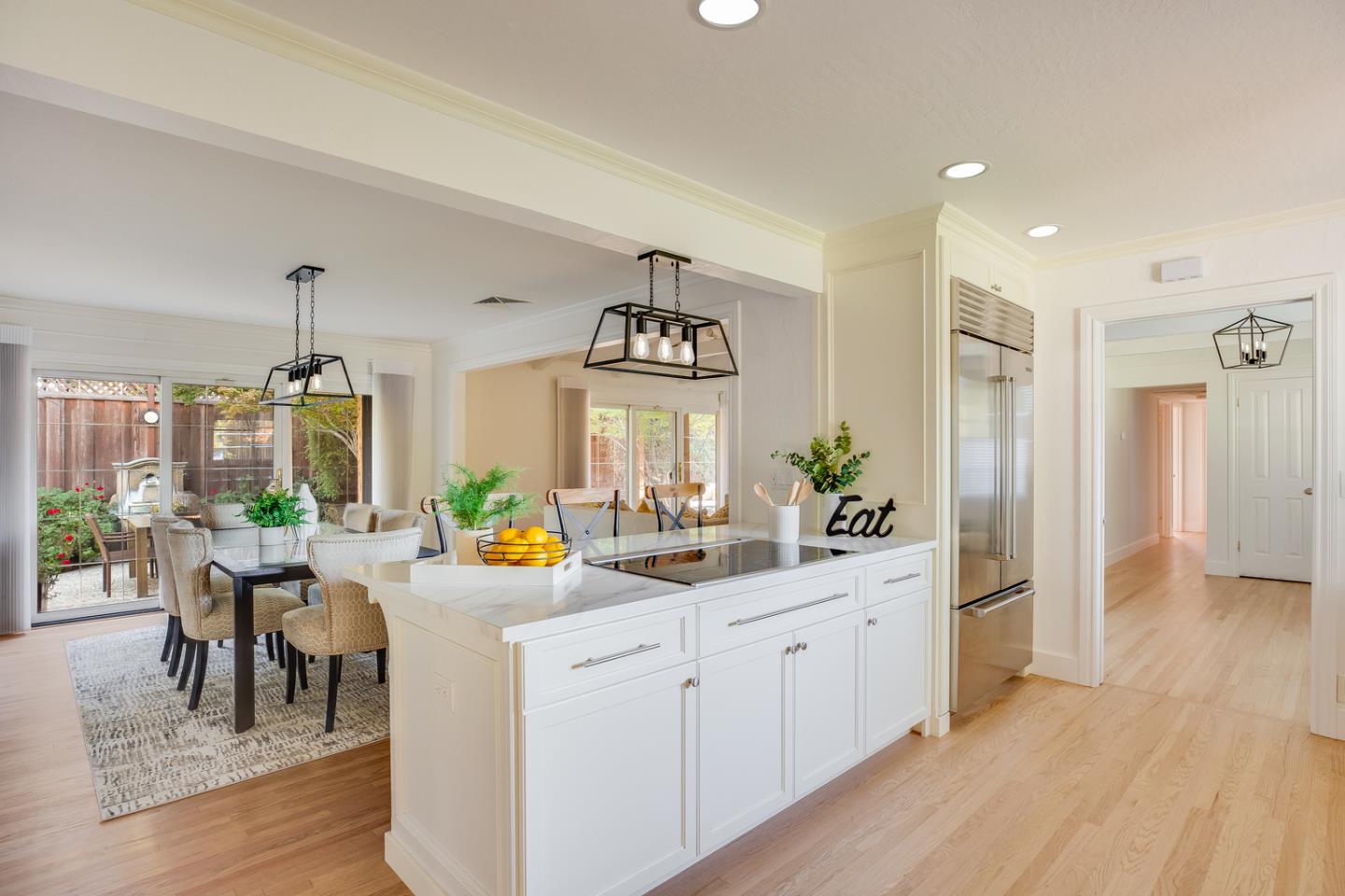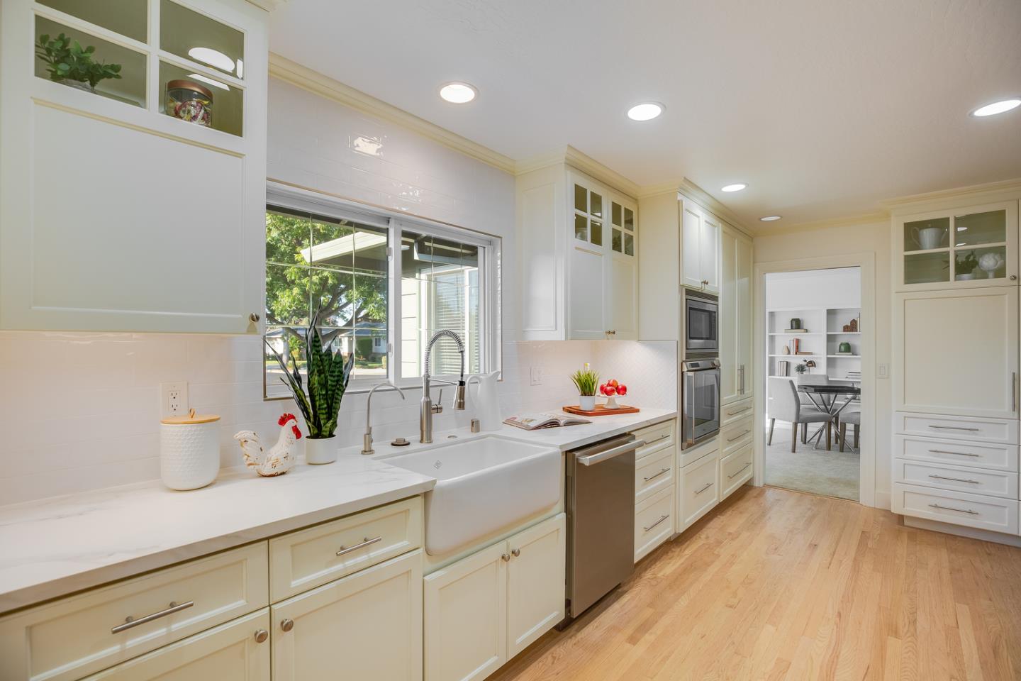 Welcome to 1348 Whitegate Ave in charming Willow Glen. Located at the end of a quiet tree-lined street in one of Willow Glen's most desirable neighborhoods. This meticulously kept 4 bedroom, 3 bathroom home features 2,400 sqft of living space on a spacious 9,048 sqft lot. Tastefully updated, the home features refinished oak hardwood floors, spacious updated kitchen with porcelain countertops, tile backsplash, and top-of-the-line stainless steel appliances. Formal living room with vaulted ceilings, gas fireplace, built-in cabinets and built-in speakers. Dining room with outdoor access to shaded patio with outdoor dining and entertaining area. Large separate family room with elegant built-in shelving. Attached 2 car garage with additional storage space. Fully enclosed private backyard with mature hedges, kids playhouse, raised garden beds, and a detached bonus space. Located within walking distance to Schallenberger Elementary School, and minutes to vibrant Downtown Willow Glen.