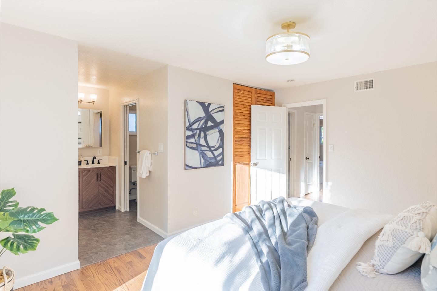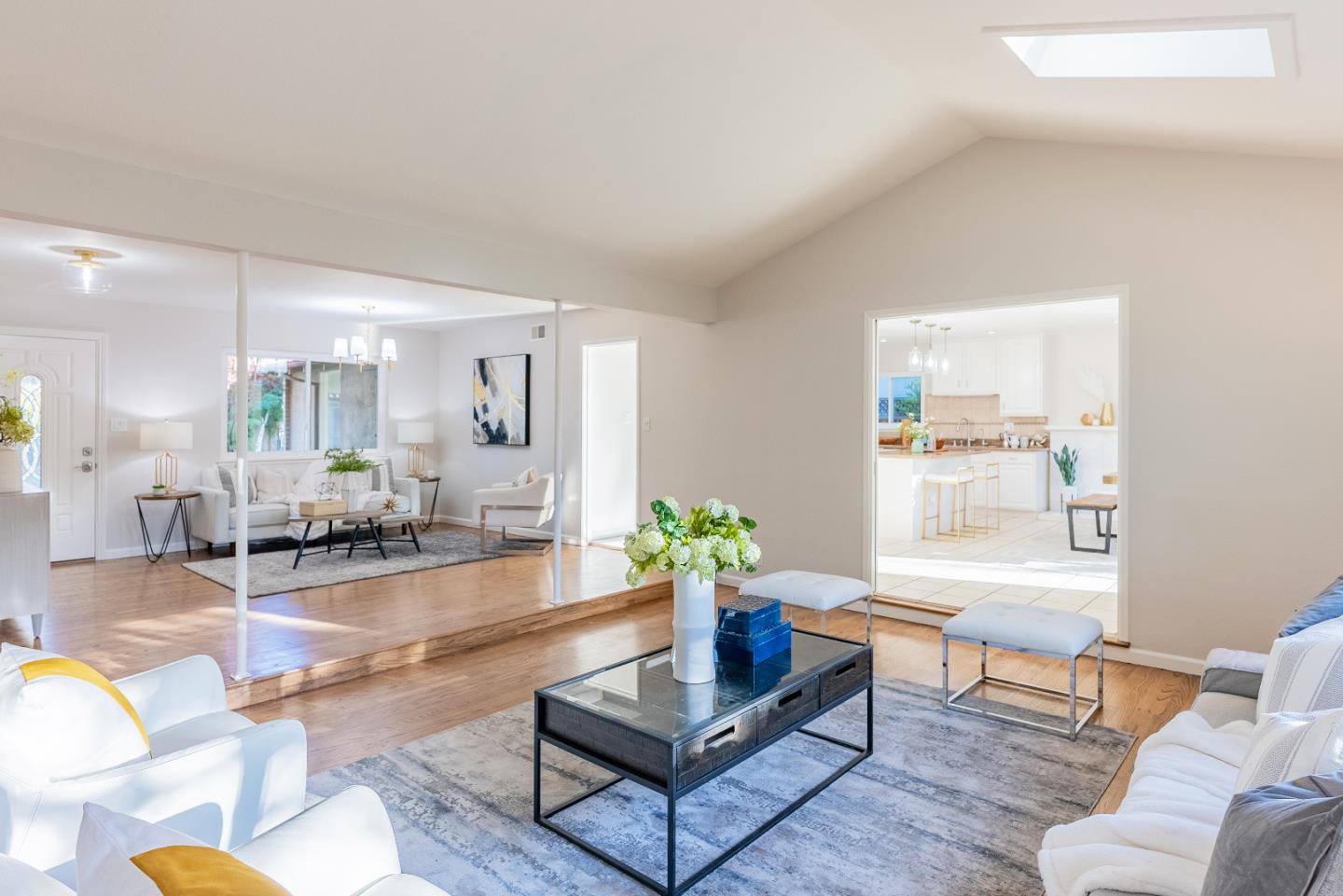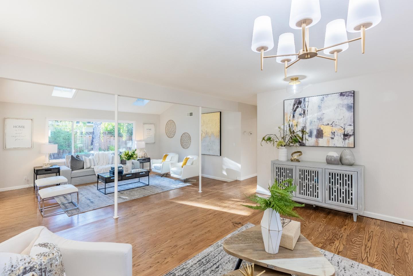 Amazing home sitting on a calm corner lot. Only a mile and a half from downtown Sunnyvale and down the street from the excitement of Las Palmas Park. Ft. an airy open floorplan, recessed lighting, fireplace, extra large living room with skylights and dual pane windows. Gourmet kitchen including high-end stainless steel appliances w/ dual sink, island and granite countertops. All bedrooms filled with sunshine, spacious and include their own closet. Primary bedroom ft. en-suite bathroom w/ stall shower. To top it all off, a large two car garage with washer/dryer and a serene backyard conveniently located near parks, shopping centers, grocery stores, schools, restaurants and major tech companies. Easy access to Highways 85, 101, El Camino Real and Caltrain. Do not miss the chance to own this lovely home. It will go FAST!