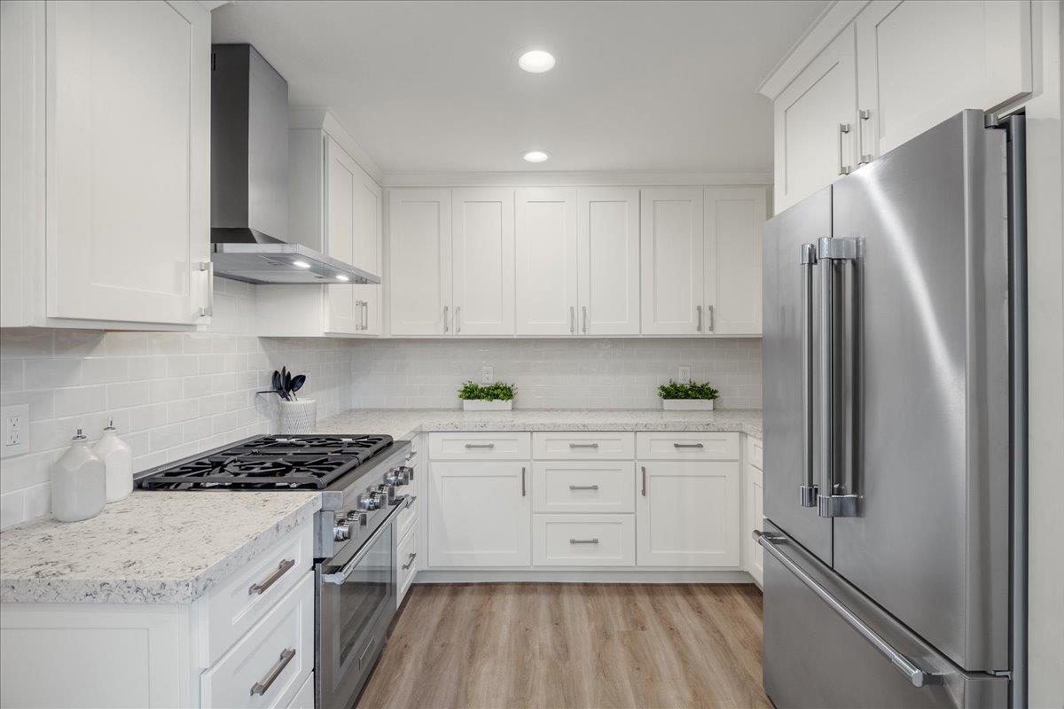 Absolutely stunning, newly remodeled single story in the prestigious Shadow Brook Almaden neighborhood. Expansive modern kitchen w/ new custom cabinets, decorative subway tile backsplash, quartz counter tops & brand new luxury SS Thermador appliances & Zephyr hood. Newly installed recessed lighting, luxury vinyl flooring, baseboards & freshly painted interior. FR w/ newly refaced fireplace w/ modern tiles & wainscoting. Large primary suite & primary bathroom newly remodeled w/ modern mosaic tiles, dual vanities, high end plumbing fixtures & walk in closet with closet organizers. (3) additional large bedrooms and separate laundry room. Updated hall bathroom with luxury tiles, new dual sink vanity, added storage and high end plumbing fixtures. Great curb appeal with large corner lot and newly installed front yard landscaping and freshly painted exterior. Close to shopping centers, Calero County Park, hiking trails and award winning schools (Graystone, Bret Harte and Leland High).