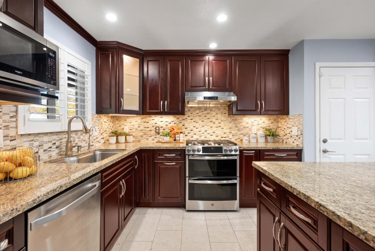 Elegantly updated Sunnyvale home on a tranquil court, featuring a modern lifestyle in a prime location. Delight in the tastefully renovated kitchen with an oversized island and high-end stainless steel appliances, including a six-top gas range. Experience smart living with features like a smart fridge, home automation (smart lock, video doorbell, Google thermostat), and air conditioning. Relax in the Jacuzzi tub and enjoy the abundance of natural light from recently replaced double-pane windows. The home boasts a sparkling pool, multiple fruit tress, built-in water softener, and a multi-stage drinking water filter. Enjoy gleaming hardwood floors throughout most of the home. The spacious underground basement can be used as a wine cellar, game room or office! All upgrades have been done with approved permits. Top-rated schools include Laurelwood Elementary, Peterson Middle, and Wilcox High (buyer to verify). Conveniently located in a central, desirable neighborhood near Raynor Park. Enjoy a quick Silicon Valley commute with easy access to 280, 85 and 101. Just 0.3 miles from Apple! A must see home.
