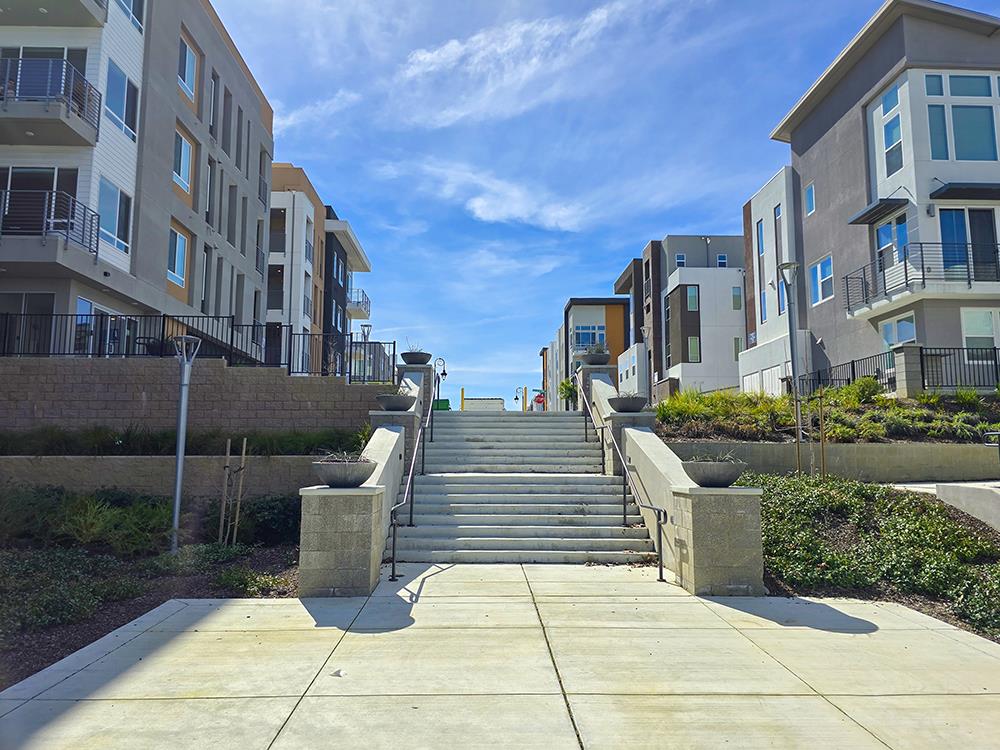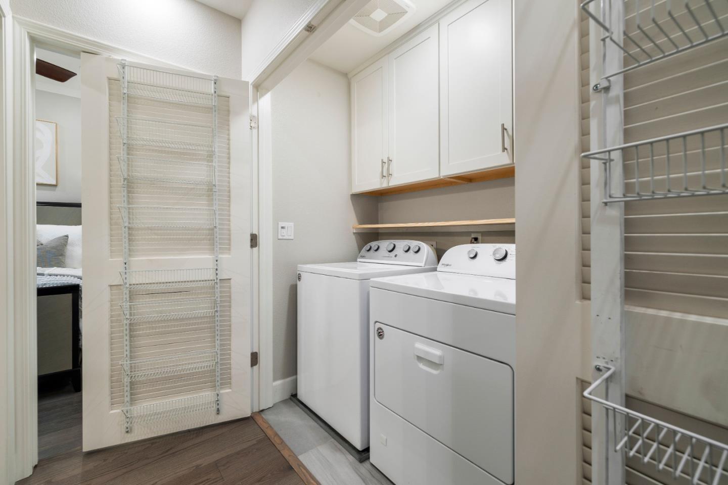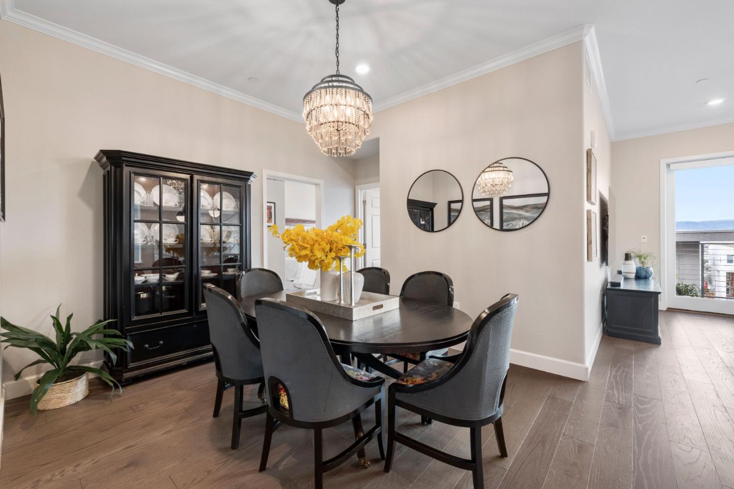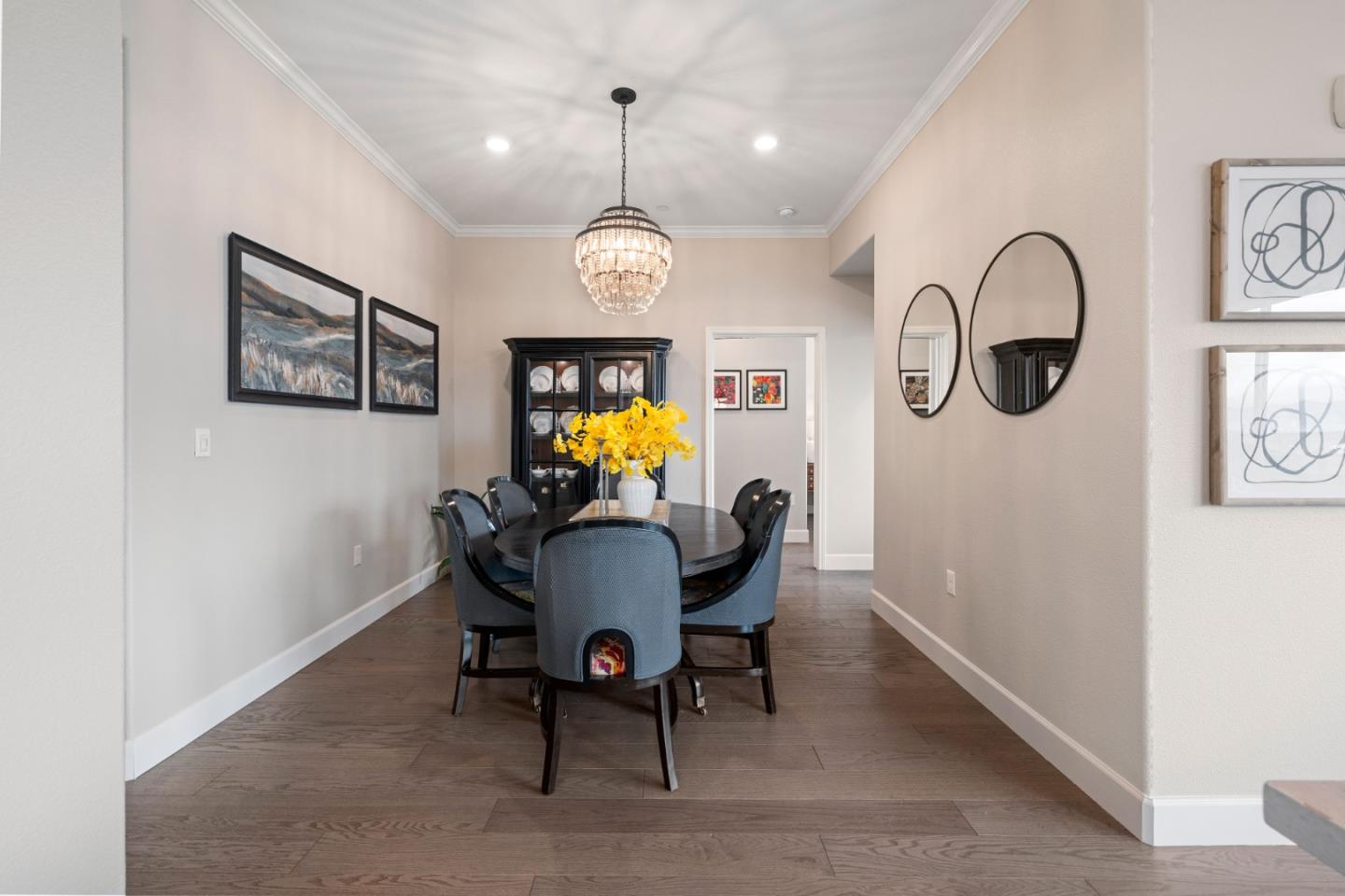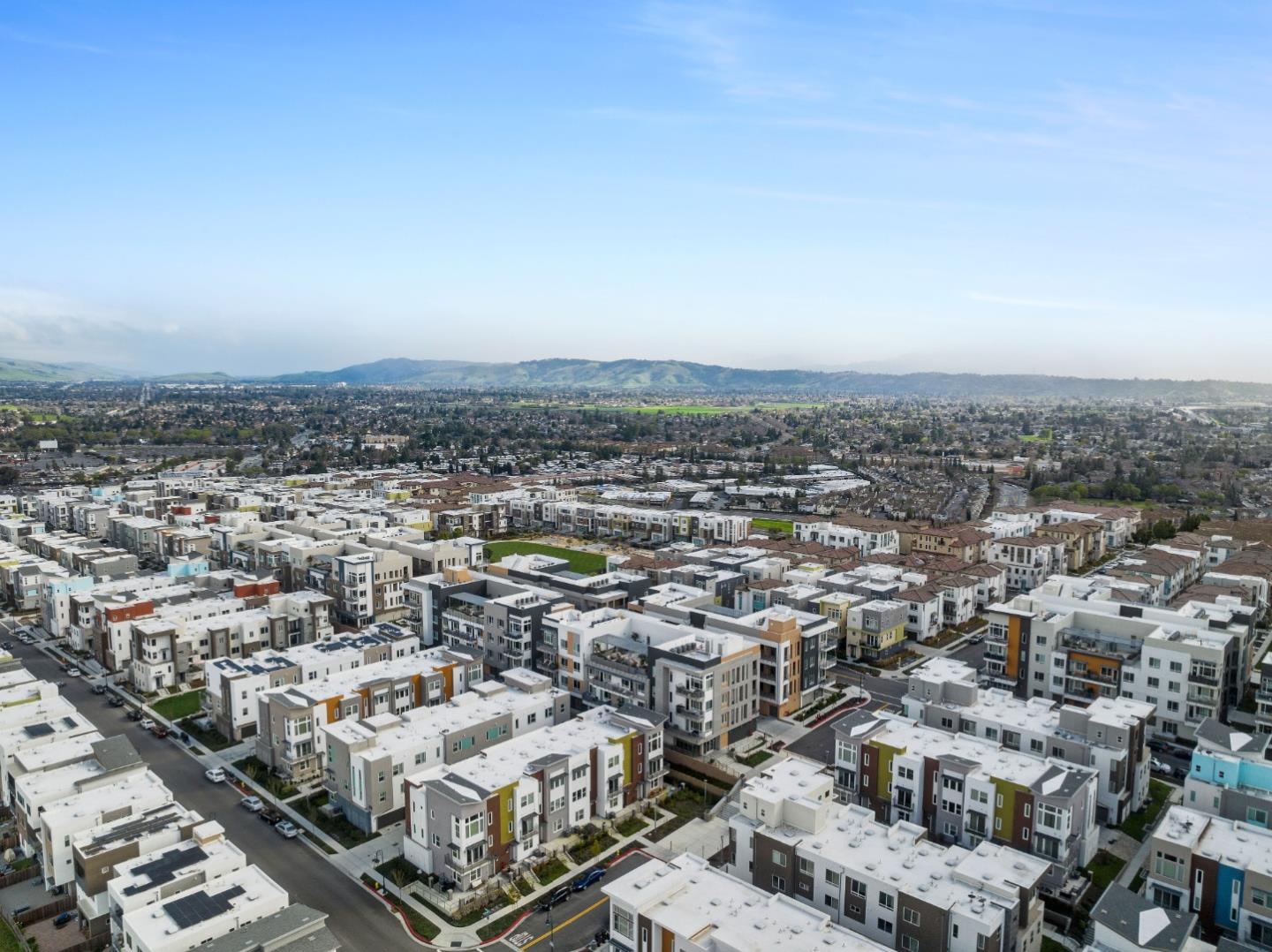 Exceptionally rare and sophisticated, this stylish modern end-unit condominium is nestled in the sought-after Communications Hill community. Boasting one of the largest three-bedroom floor plans available, this property offers captivating views of the mountains and the San Jose skyline from its balcony and expansive open-concept living room. As an end unit, it enjoys the advantage of additional windows, flooding the space with natural light, all effortlessly managed through powered shades. The kitchen is a masterpiece, adorned in pristine white quartz, featuring a large island with a breakfast bar and upgraded high-end matching KitchenAid stainless steel appliances, including a gas cooktop. Additional remarkable features include lofty ceilings, newer LVP flooring throughout, and a Kinetico water system. For an even more expansive and breathtaking experience, venture to the rooftop Sky Terrace, offering additional stunning views, a BBQ area, and lounge chairs. This unit also comes complete with a generously sized garage, comfortably accommodating two cars and pre-wired for an electric vehicle charger. Surrounding the complex, explore scenic walking trails and enjoy Lewis Manly Park. This exquisite property is truly a must-see!
