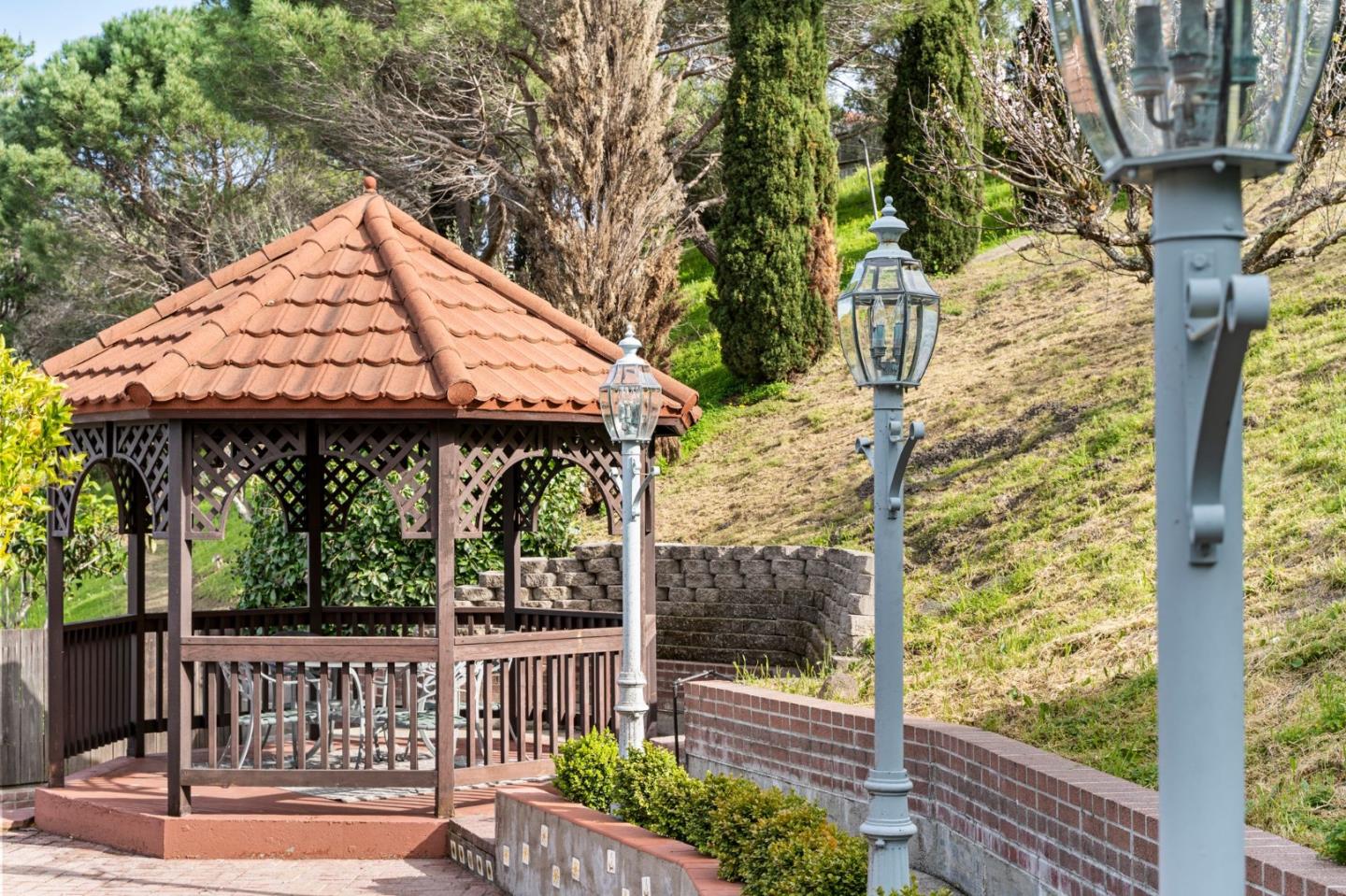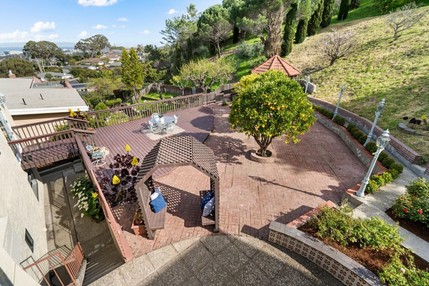 This elevated estate home stands proudly overlooking the stunning views outstretching far beyond your wildest dreams. This exquisite home is a captivating time capsule of elegance and opulence. A stately staircase ascends to the front entry door revealing a breathtaking foyer with marvelous marble floors, towering ceilings, and a decadent staircase. A formal living room, dressed in its finest finishes, is a step down from the entry. An ornate fireplace is the focal point of this lavish room with Parque hardwood floors and bright picture windows. A formal dining room hosts spectacular sweeping views as its guest of honor every night. The estate-like backyard presents a scene reminiscent of an enchanting storybook setting. The verdant gardens, blossoming fruit trees and majestic gazebo reveal timeless elegance and refined luxury surrounded by stunning views of the bay. A dignified family room with glass patio door to the backyard showcases hardwood floors, sophisticated wet bar and timeless brick wood-burning fireplace. A striking wood paneled ceiling crowns the room in traditional warmth and charm. The versatile downstairs suite space further enhances the vast possibilities of this home. This home shines with opulent opportunity to be a cherished treasure for generations to come.