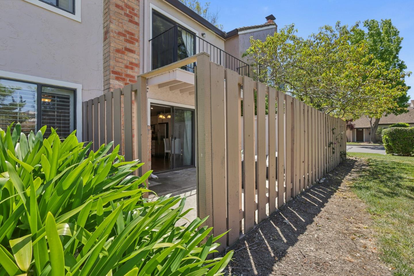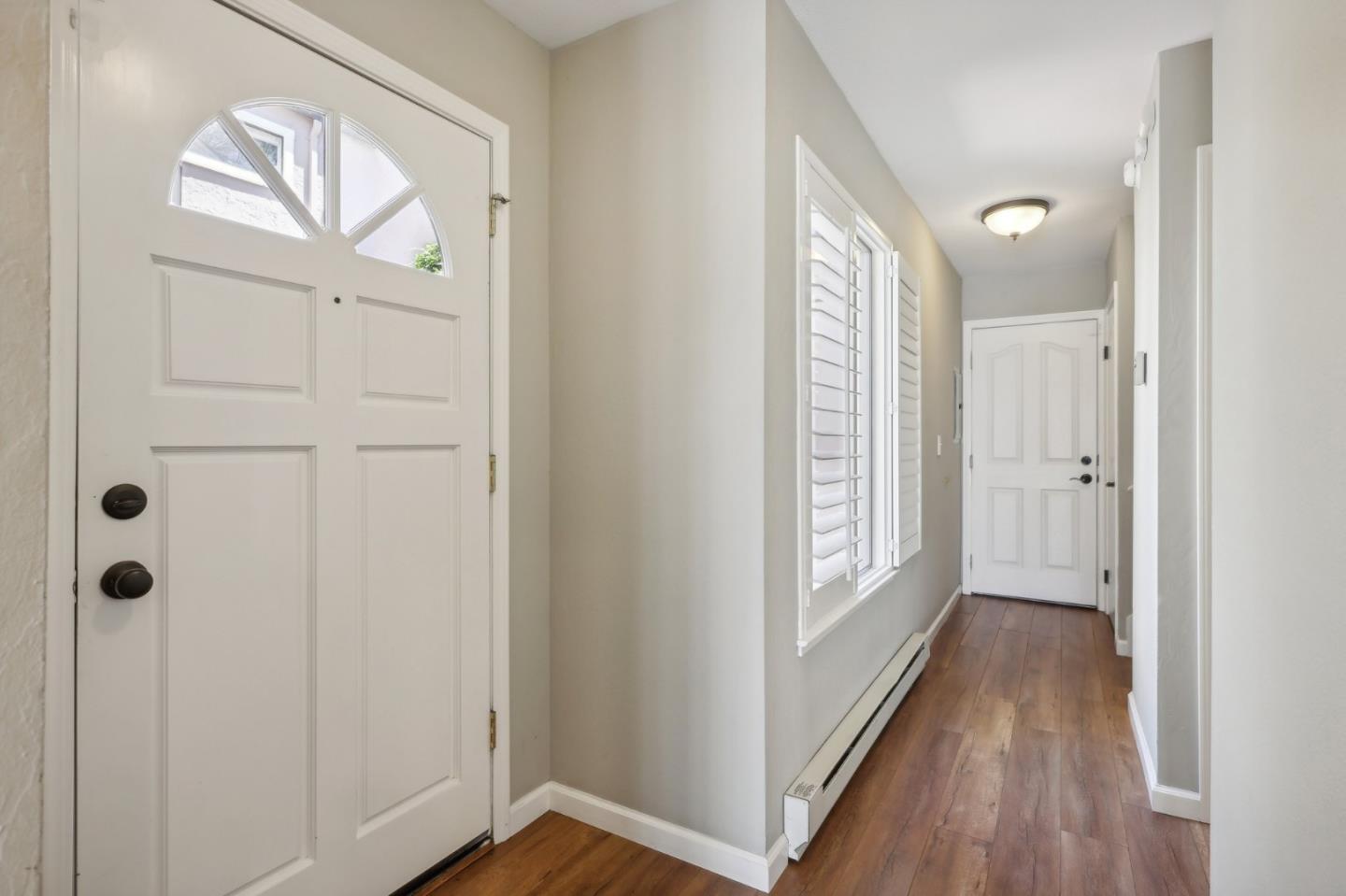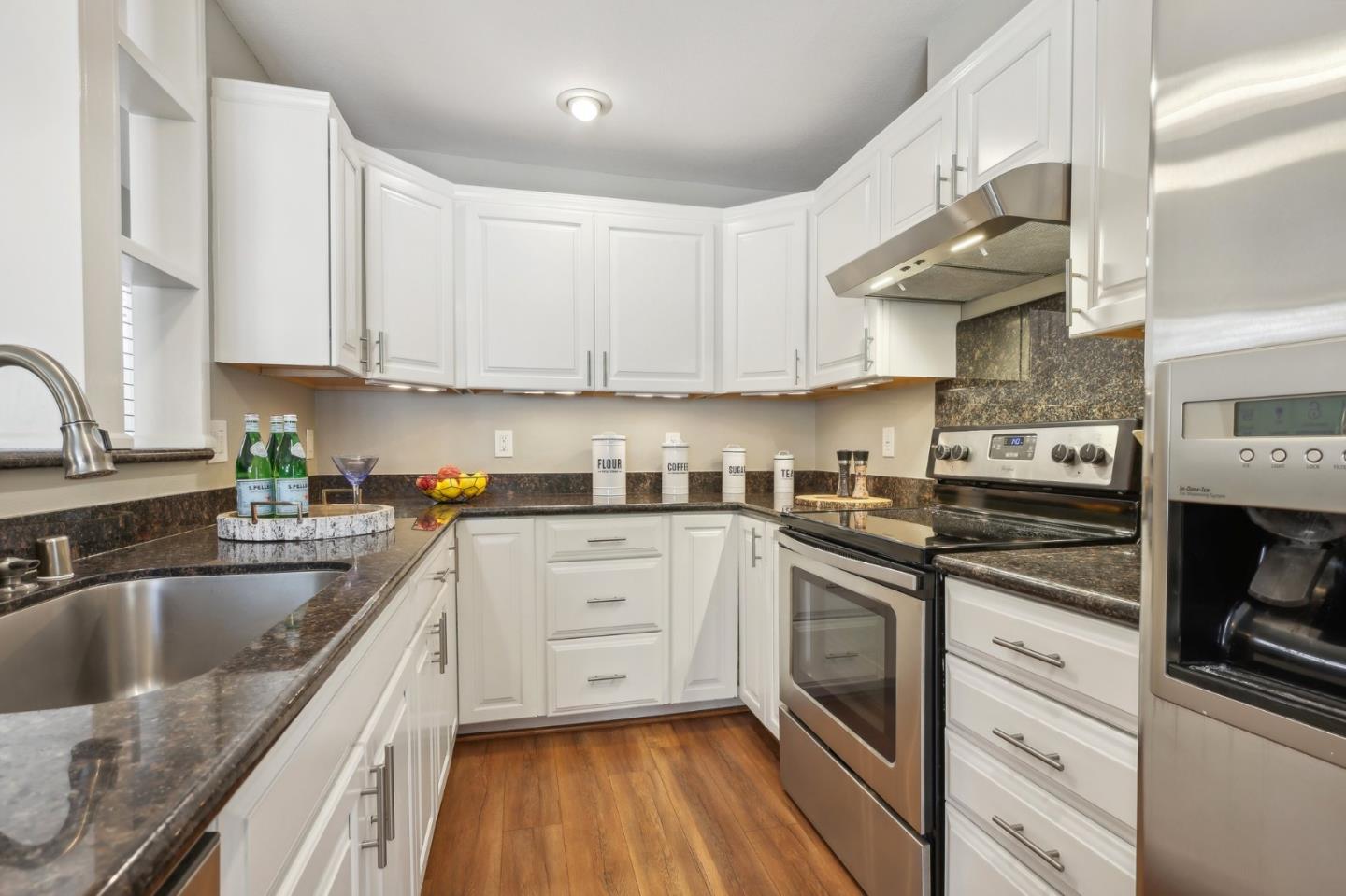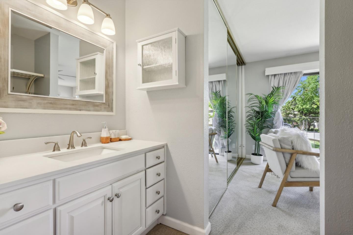 Nestled in the sought-after South Park community in the heart of Silicon Valley, this stunning townhome exudes contemporary elegance and offers an abundance of natural light and serene views of lush greenery. The open-concept floor plan has been thoughtfully remodeled to provide unparalleled privacy and modern design. Upon entry, the state-of-the-art living room welcomes you with high-end flooring, a cozy wood-burning fireplace, and expansive windows that bathe the space in sunlight. The gourmet kitchen is a chef's dream, featuring sleek solid granite slab counters, custom cabinetry, and top-of-the-line stainless steel appliances. The bathroom has been tastefully updated with separate shower and tub, as well as separate vanities, creating a tranquil retreat. Notable features include plantation shutters, recessed lighting, attached two-car garage, a private balcony, and two private yards. This home offers both comfort and convenience, with its proximity to the family-friendly Bracher Parks, Levi's Stadium, ST Creek Trail, schools and stores. Furthermore, its close proximity to major tech companies and easy access to freeways ensures seamless connectivity for residents. Experience the perfect blend of luxury living and modern amenities in this exceptional Silicon Valley residence.
