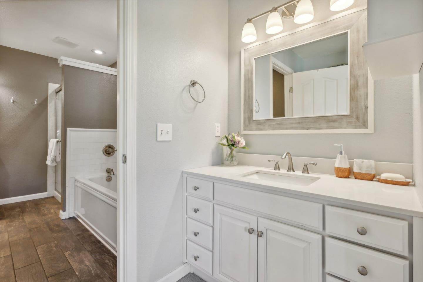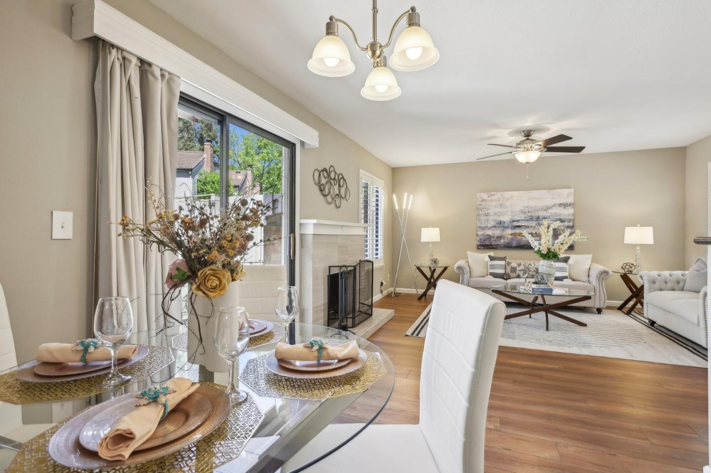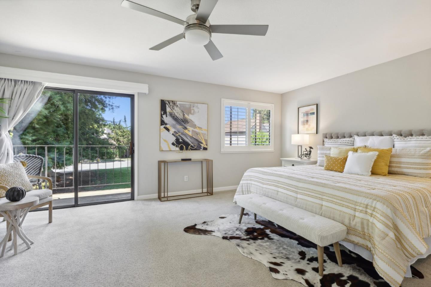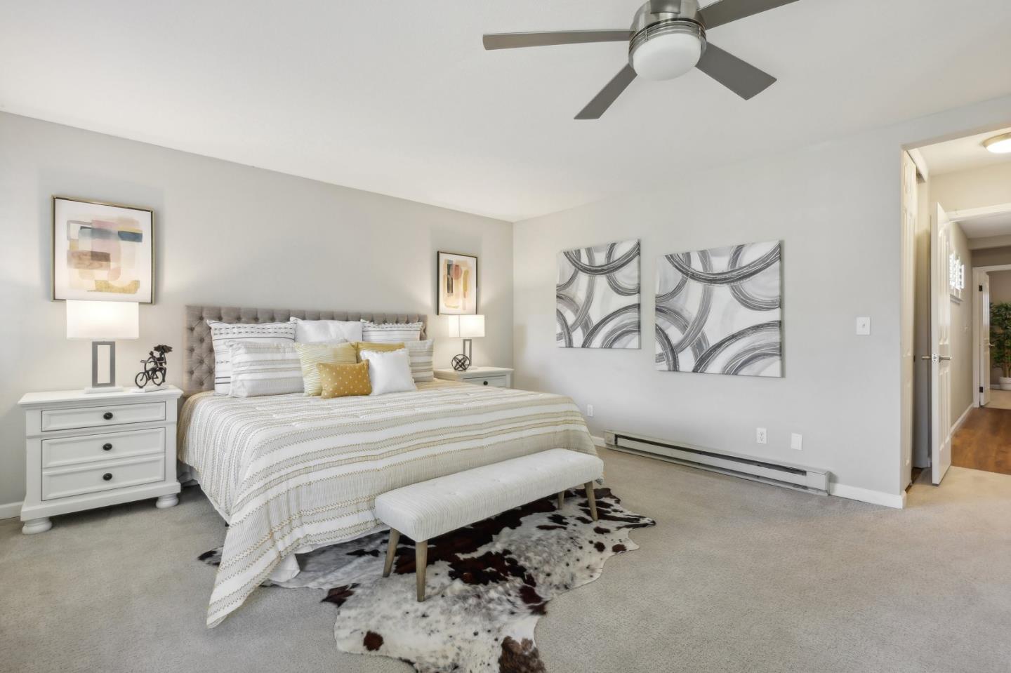 Nestled in the sought-after South Park community in the heart of Silicon Valley, this stunning townhome exudes contemporary elegance and offers an abundance of natural light and serene views of lush greenery. The open-concept floor plan has been thoughtfully remodeled to provide unparalleled privacy and modern design. Upon entry, the state-of-the-art living room welcomes you with high-end flooring, a cozy wood-burning fireplace, and expansive windows that bathe the space in sunlight. The gourmet kitchen is a chef's dream, featuring sleek solid granite slab counters, custom cabinetry, and top-of-the-line stainless steel appliances. The bathroom has been tastefully updated with separate shower and tub, as well as separate vanities, creating a tranquil retreat. Notable features include plantation shutters, recessed lighting, attached two-car garage, a private balcony, and two private yards. This home offers both comfort and convenience, with its proximity to the family-friendly Bracher Parks, Levi's Stadium, ST Creek Trail, schools and stores. Furthermore, its close proximity to major tech companies and easy access to freeways ensures seamless connectivity for residents. Experience the perfect blend of luxury living and modern amenities in this exceptional Silicon Valley residence.