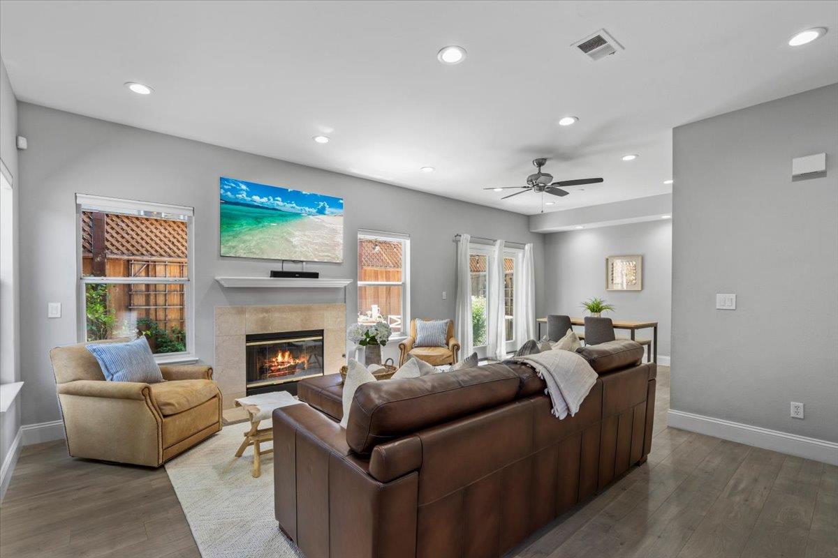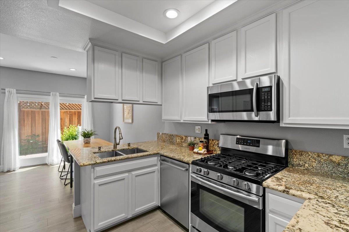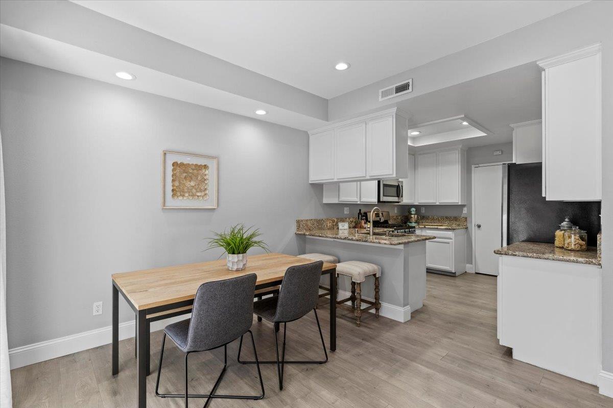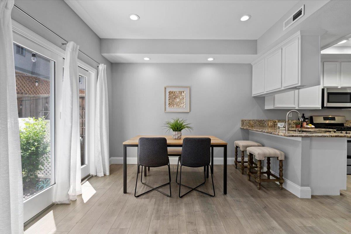 Modern duet home with a prime Campbell location! You'll find a true community here. Close to The Pruneyard & Downtown Campbell with incredible restaurants, coffee shops, book stores, ice cream shops along with Trader Joes, Whole Foods, hiking trails & more! Nestled privately in the wonderful community of Chalet Woods, this remodeled home features: Gourmet Chef's kitchen with granite counters, stainless appliances & sleek white cabinets; cozy living room with a fireplace, spacious dining room with access through the slider for barbecuing & indoor-outdoor entertaining, wide-planked floors, recessed lights, designer paint colors, updated baths, large primary suite with a vaulted ceiling, central a/c, 2 car garage, & laundry on the 2nd floor with the bedrooms. Located next to Stojanovich Family Park which is a neighborhood treasure perfect for a play area, picnic & nature. Low HOA dues & excellent schools. Enjoy the Bay Area lifestyle at its best.