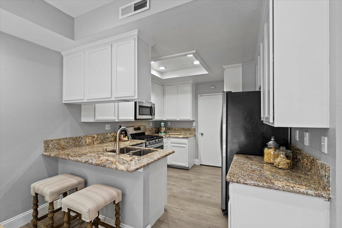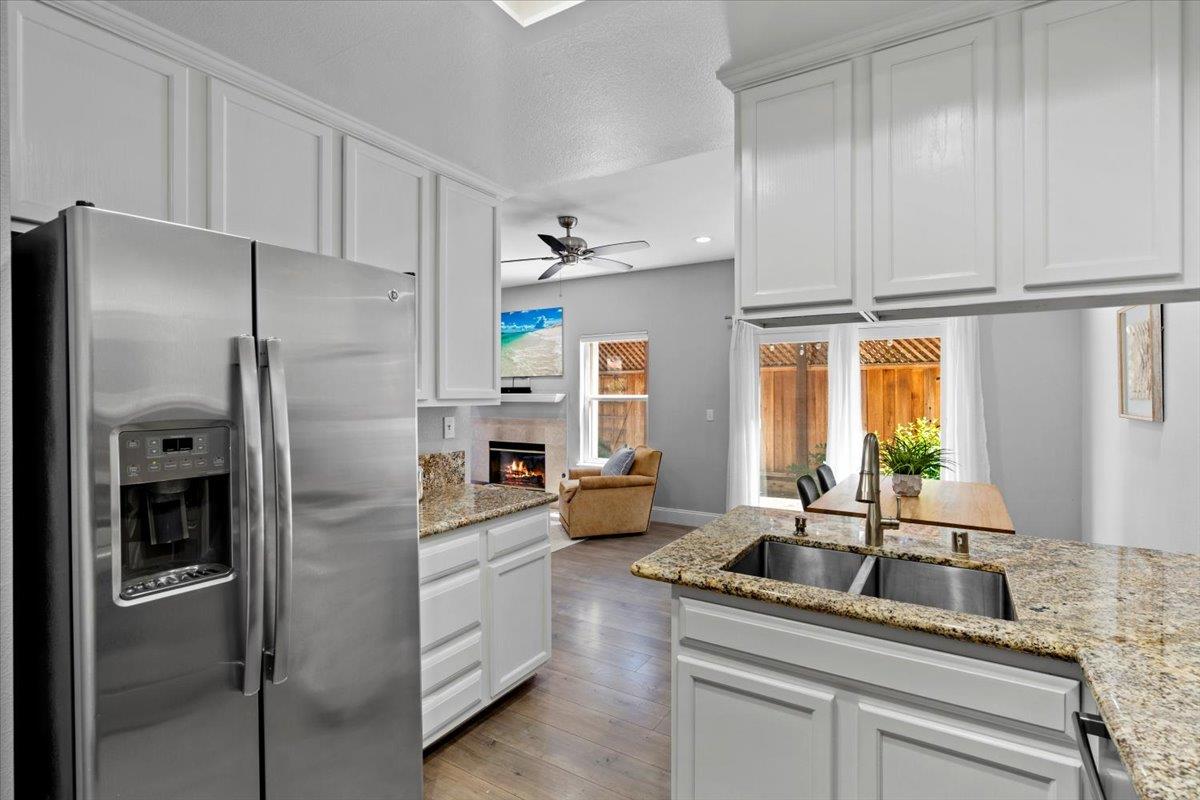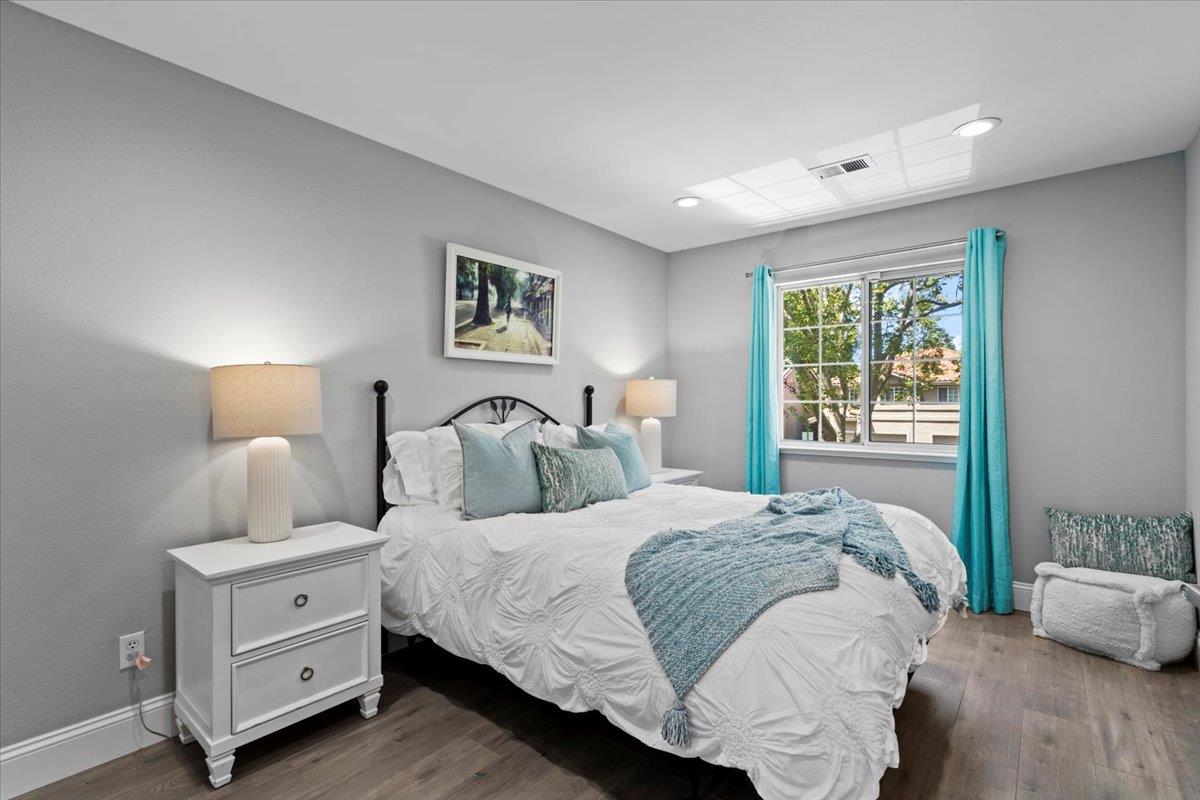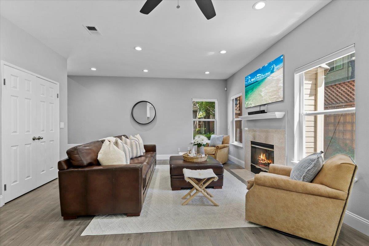 Modern duet home with a prime Campbell location! You'll find a true community here. Close to The Pruneyard & Downtown Campbell with incredible restaurants, coffee shops, book stores, ice cream shops along with Trader Joes, Whole Foods, hiking trails & more! Nestled privately in the wonderful community of Chalet Woods, this remodeled home features: Gourmet Chef's kitchen with granite counters, stainless appliances & sleek white cabinets; cozy living room with a fireplace, spacious dining room with access through the slider for barbecuing & indoor-outdoor entertaining, wide-planked floors, recessed lights, designer paint colors, updated baths, large primary suite with a vaulted ceiling, central a/c, 2 car garage, & laundry on the 2nd floor with the bedrooms. Located next to Stojanovich Family Park which is a neighborhood treasure perfect for a play area, picnic & nature. Low HOA dues & excellent schools. Enjoy the Bay Area lifestyle at its best.
