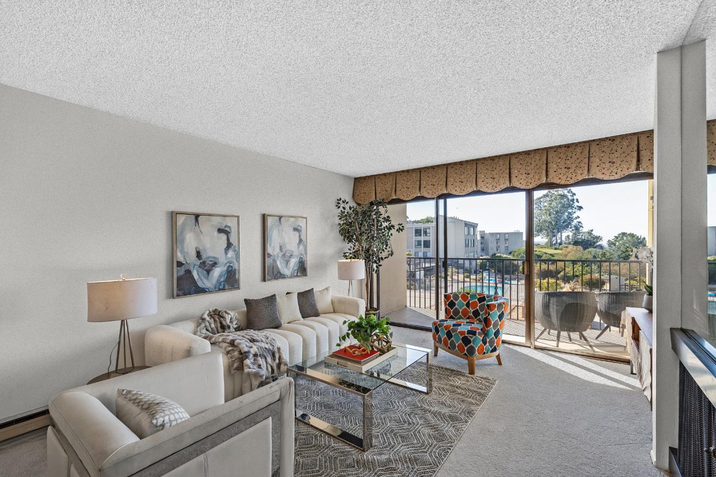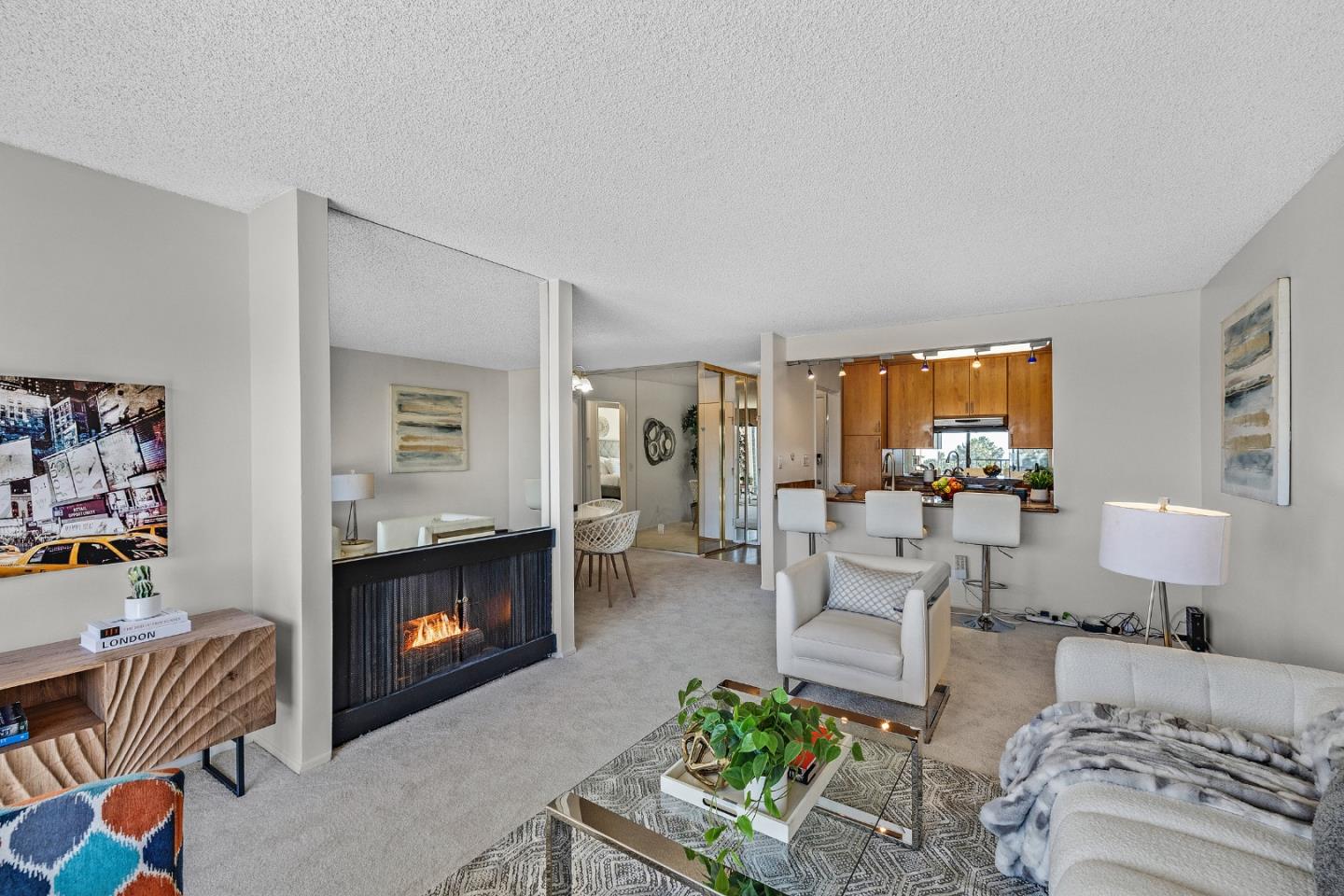 Enjoy all that Millbrae has to offer in this light-filled and spacious 2bd, 2ba condo. Stunning views accompanied a walkout balcony. Open and spacious living room with gas log fireplace. Huge master suite with walk-in closet. Additional guest bedroom with tons of natural light. Freshly painted interior and new carpet. Two deed parking spaces. Pool, jacuzzi, rec. room and BBQ area. Great location with easy access to I-280 and HWY-101.