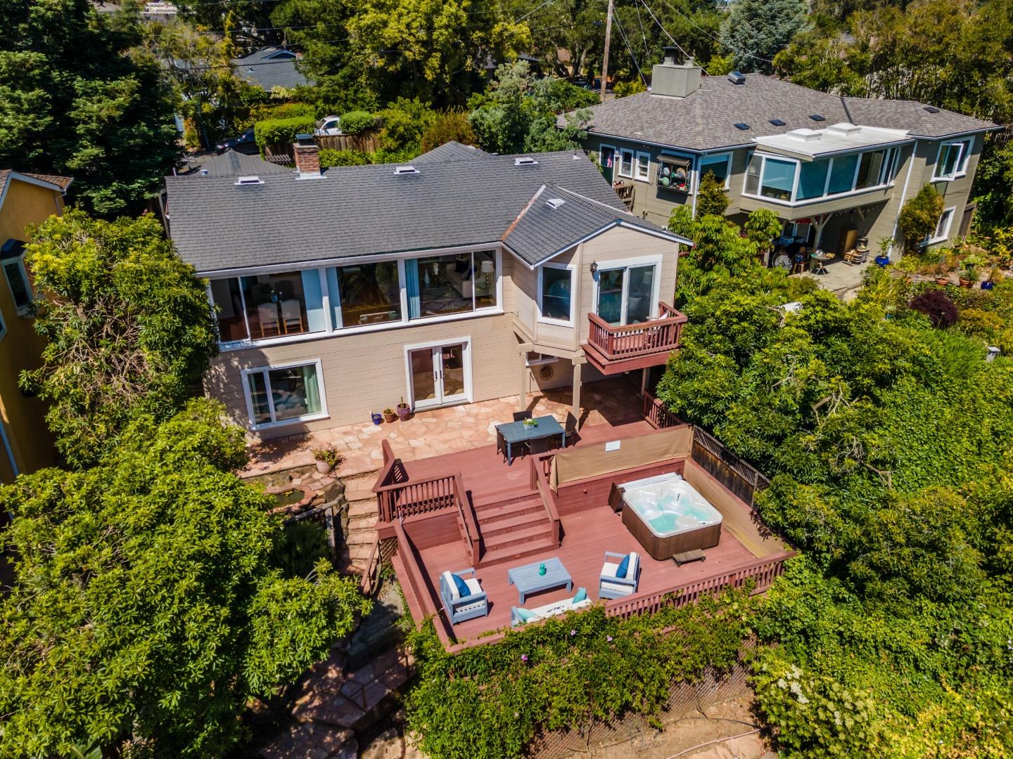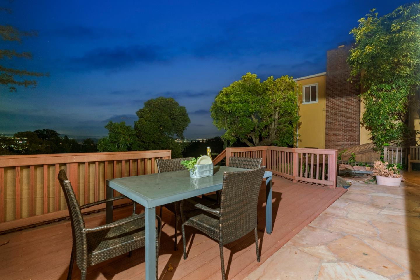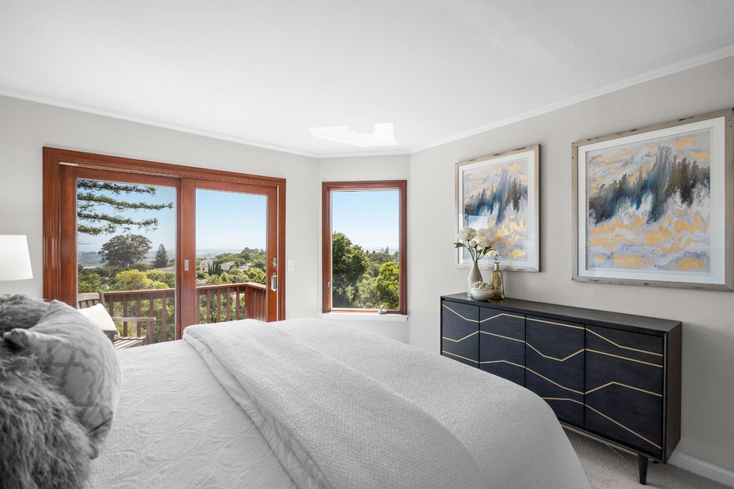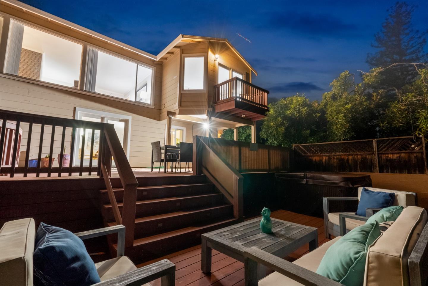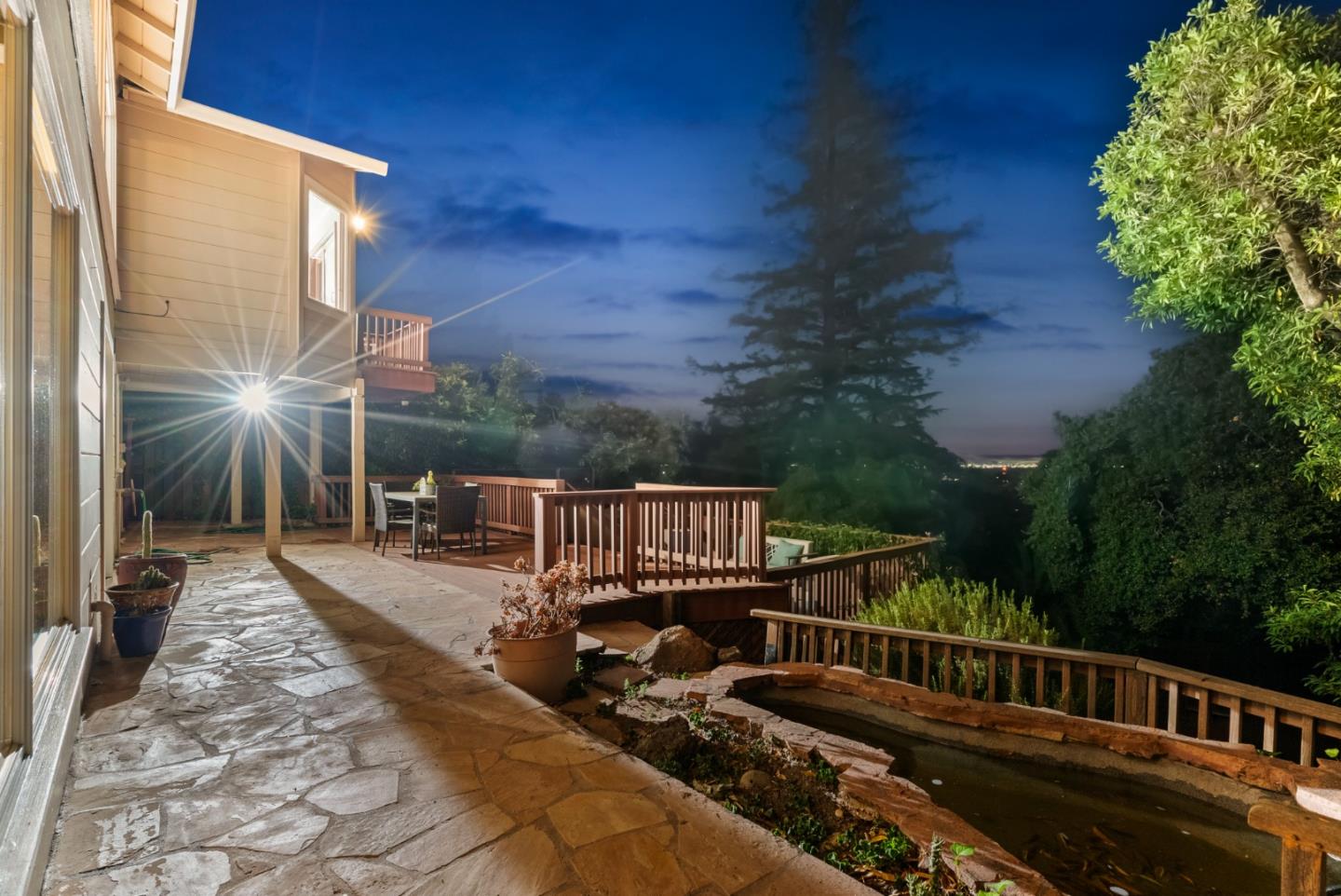 Located at the end of a cul-de-sac on one of Belmont's most coveted streets, this incredible home boasts panoramic bay views! The entry leads to a formal living room with walls of windows and an adjoining dining room. The updated kitchen features stainless steel appliances. The primary bedroom suite, with a balcony, is situated to enjoy the serene views. An additional spacious bedroom and a full hall bathroom round out this level. Just downstairs, you will find a warm and inviting family room with an office nook that opens to a beautiful flagstone patio, a third bedroom, a full hall bathroom, and perfectly placed storage room. Relax or entertain outside in the beautifully terraced backyard with a hot tub, several seating areas, and a sprawling lawn. Nestled in the Belmont hills, away from the hustle and bustle, yet just minutes to restaurants, shops, and great Belmont schools. Close proximity to streamlined commute routes. This house is perfect for everyday living or entertaining!