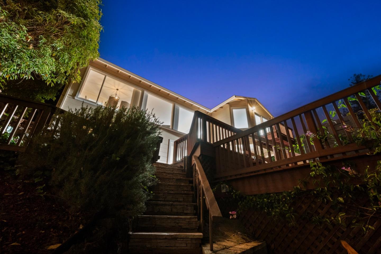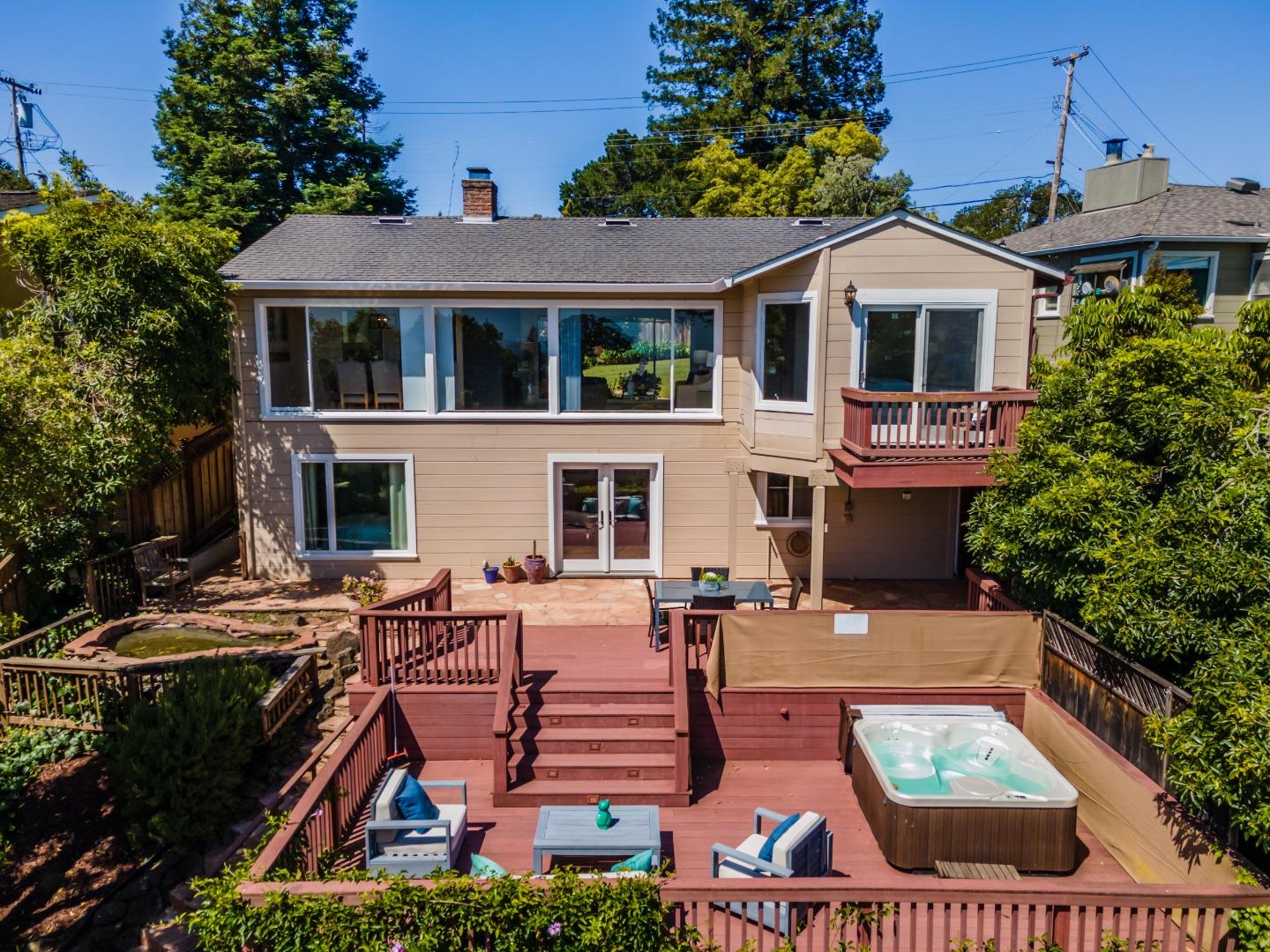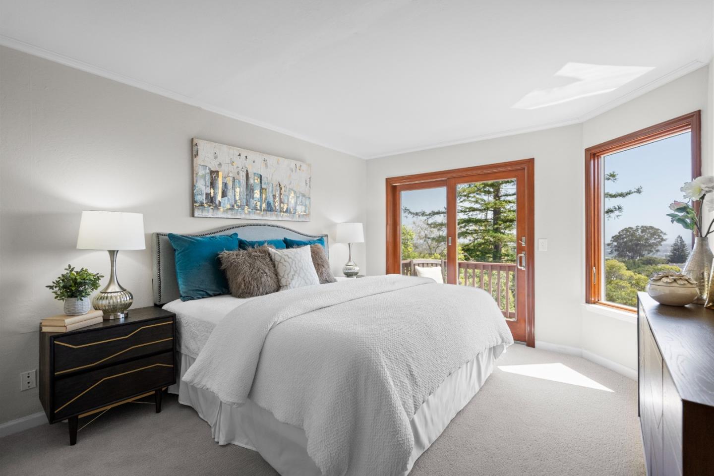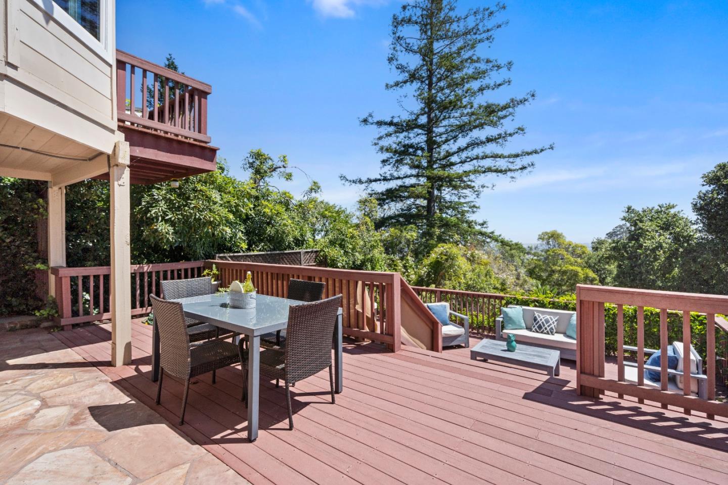 Located at the end of a cul-de-sac on one of Belmont's most coveted streets, this incredible home boasts panoramic bay views! The entry leads to a formal living room with walls of windows and an adjoining dining room. The updated kitchen features stainless steel appliances. The primary bedroom suite, with a balcony, is situated to enjoy the serene views. An additional spacious bedroom and a full hall bathroom round out this level. Just downstairs, you will find a warm and inviting family room with an office nook that opens to a beautiful flagstone patio, a third bedroom, a full hall bathroom, and perfectly placed storage room. Relax or entertain outside in the beautifully terraced backyard with a hot tub, several seating areas, and a sprawling lawn. Nestled in the Belmont hills, away from the hustle and bustle, yet just minutes to restaurants, shops, and great Belmont schools. Close proximity to streamlined commute routes. This house is perfect for everyday living or entertaining!