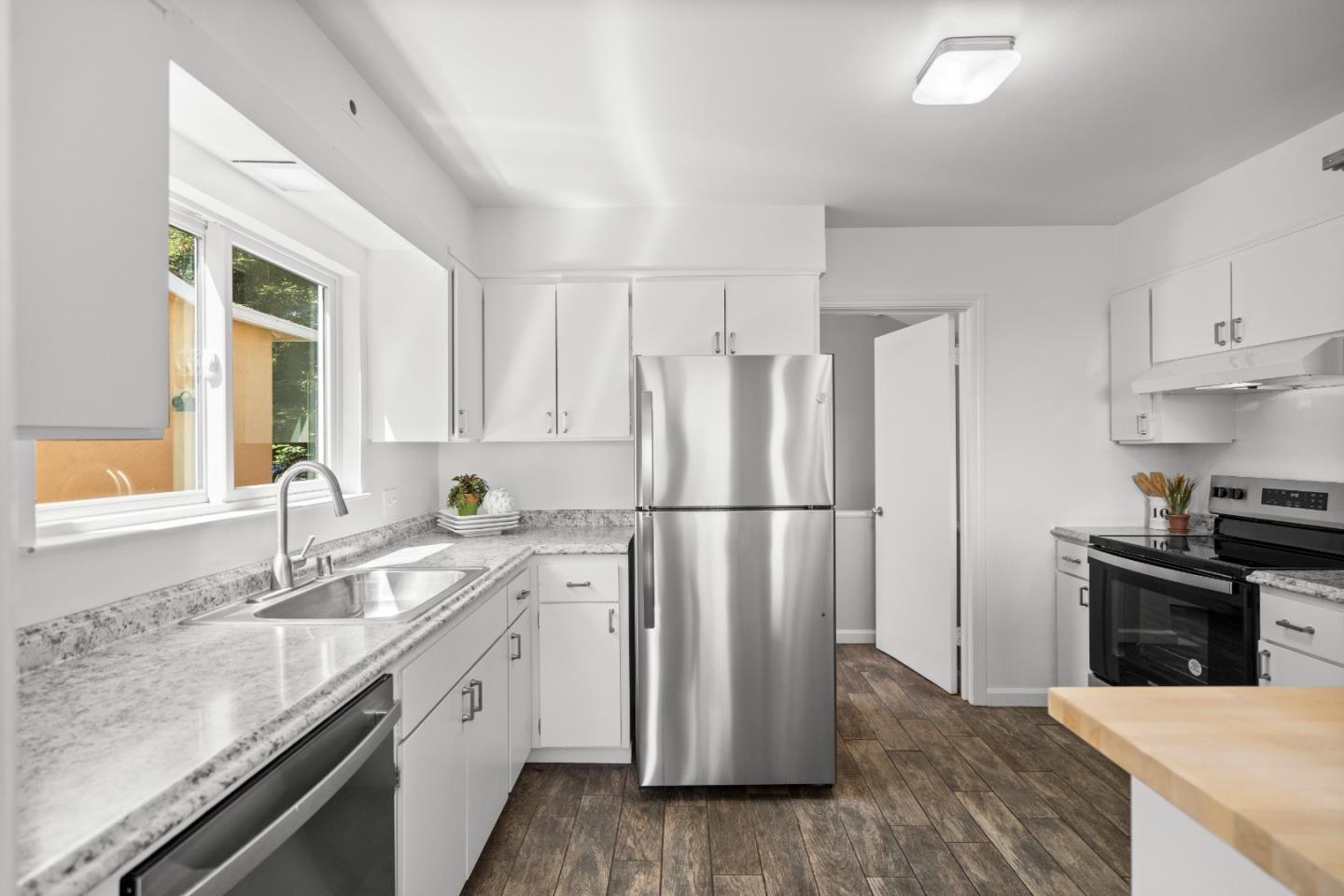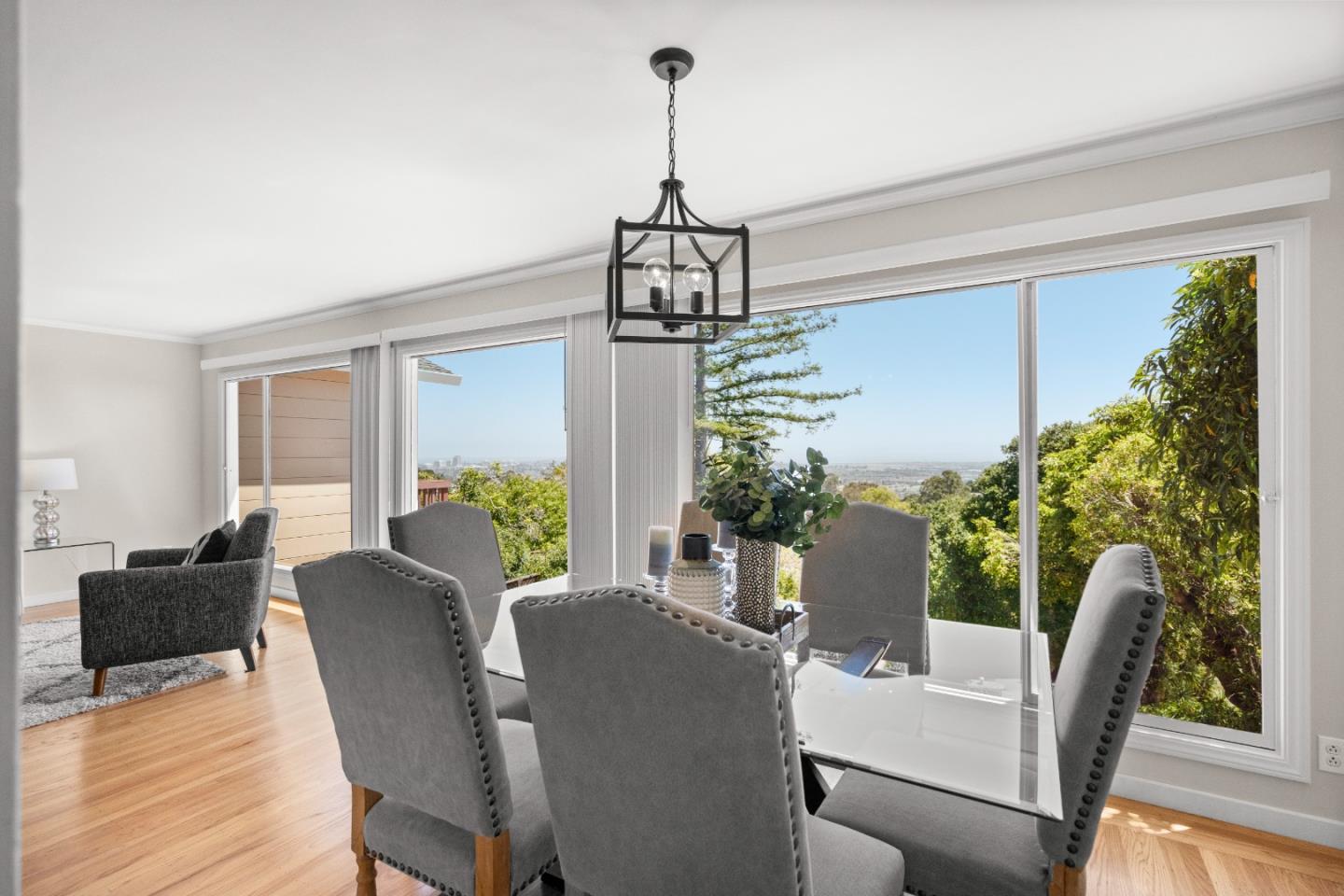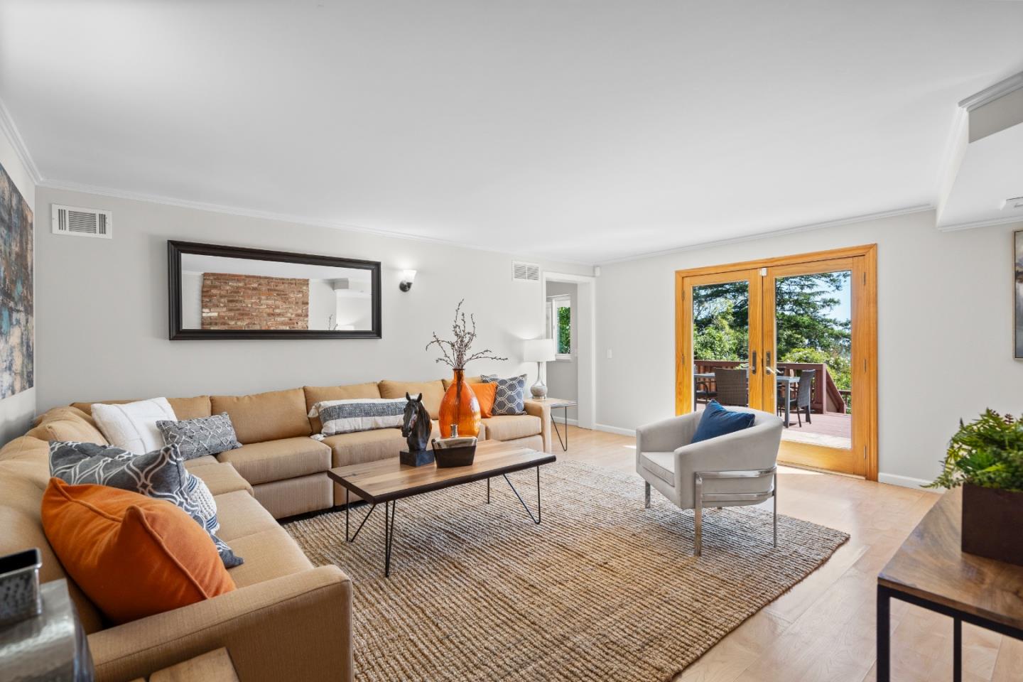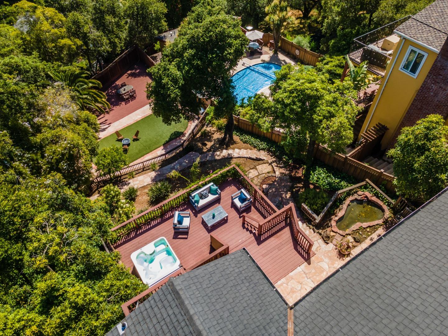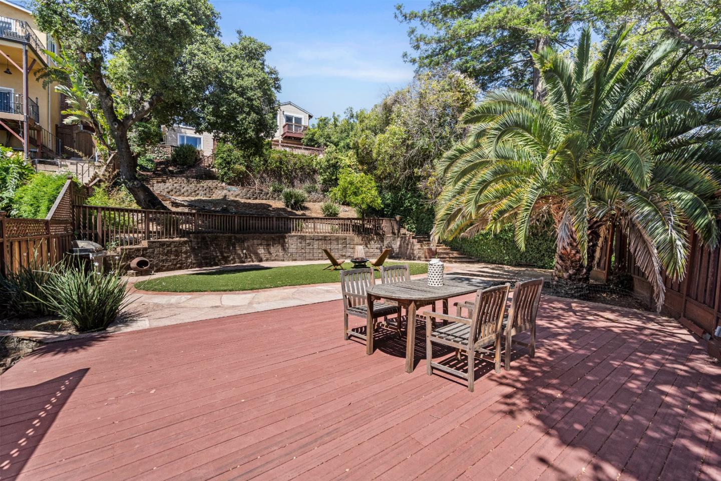 Located at the end of a cul-de-sac on one of Belmont's most coveted streets, this incredible home boasts panoramic bay views! The entry leads to a formal living room with walls of windows and an adjoining dining room. The updated kitchen features stainless steel appliances. The primary bedroom suite, with a balcony, is situated to enjoy the serene views. An additional spacious bedroom and a full hall bathroom round out this level. Just downstairs, you will find a warm and inviting family room with an office nook that opens to a beautiful flagstone patio, a third bedroom, a full hall bathroom, and perfectly placed storage room. Relax or entertain outside in the beautifully terraced backyard with a hot tub, several seating areas, and a sprawling lawn. Nestled in the Belmont hills, away from the hustle and bustle, yet just minutes to restaurants, shops, and great Belmont schools. Close proximity to streamlined commute routes. This house is perfect for everyday living or entertaining!