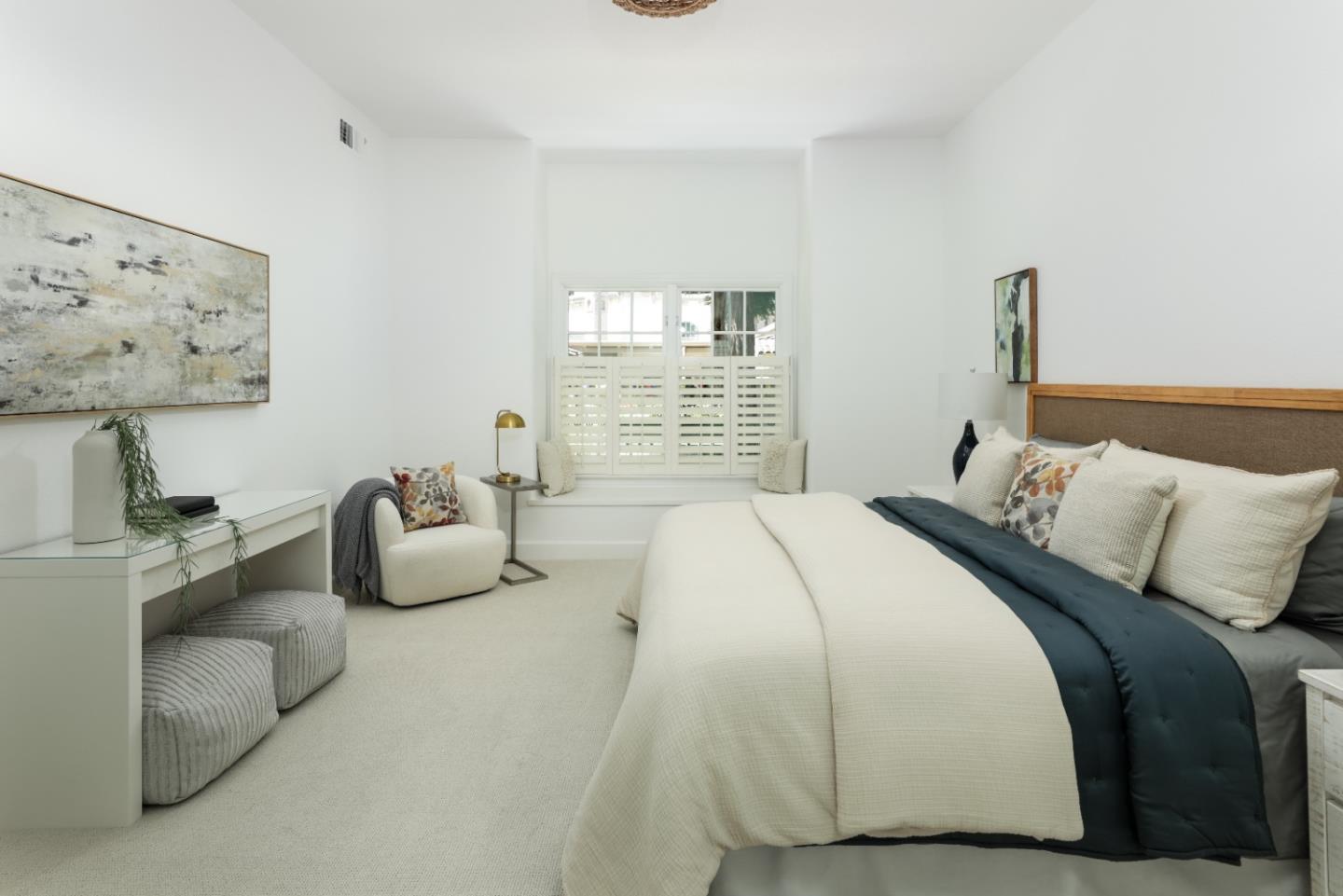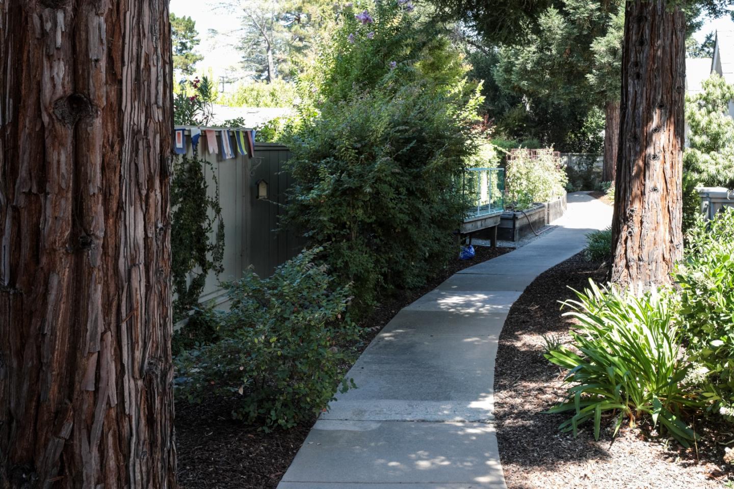 Welcome to Parc Regent, a 55+ community steps from the heart of downtown Los Altos & all the wonderful amenities that go with living w/i walking distance to this vibrant village. This beautiful, spacious unit enjoys 3bd/2ba situated in the quietest area of the complex. Sliding doors open to a delightfully large & private patio & outdoor area overlooking a pathway lined w/redwood trees, Crepe Mrytles, vegetable beds & your own citrus trees. Follow the path as it meanders thru the gardens to the residents only gate to DeMartinis fruit & vegetable market. With a push of a button automatic rolling shutters shield you from the sun.This home boasts beautiful wood floors, carpeting, cozy living room w/gas fireplace & built in cabinets, built-in closet organizers in the primary suite.This friendly community offers continental breakfast M-F. Enjoy the pool, weight room, private storage area & secure underground parking w/2 reserved spaces. Walk to the library, senior center, dining, coffee, shopping & farmer's market. Enjoy FIRST FRIDAY, a community event featuring 10-15 bands playing simultaneously thru-out downtown Los Altos, every month, year-round. Don't miss this opportunity to own your dream retirement home offering luxury & convenience w/maintenance-free living for peace of mind.