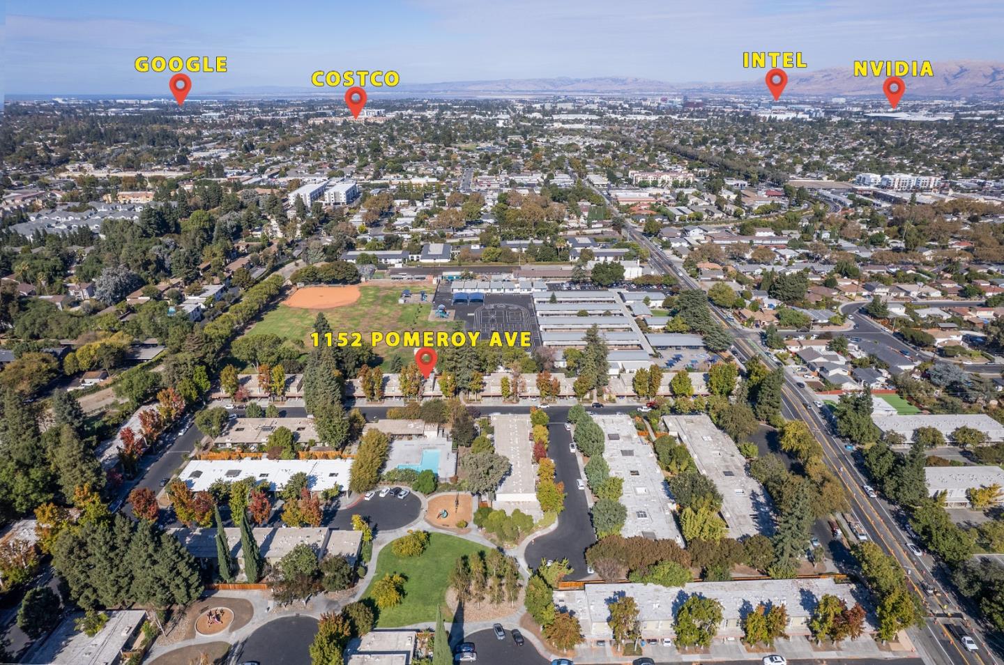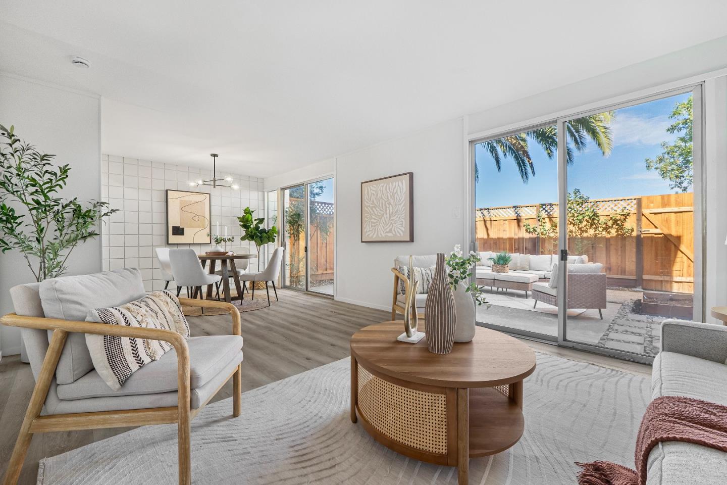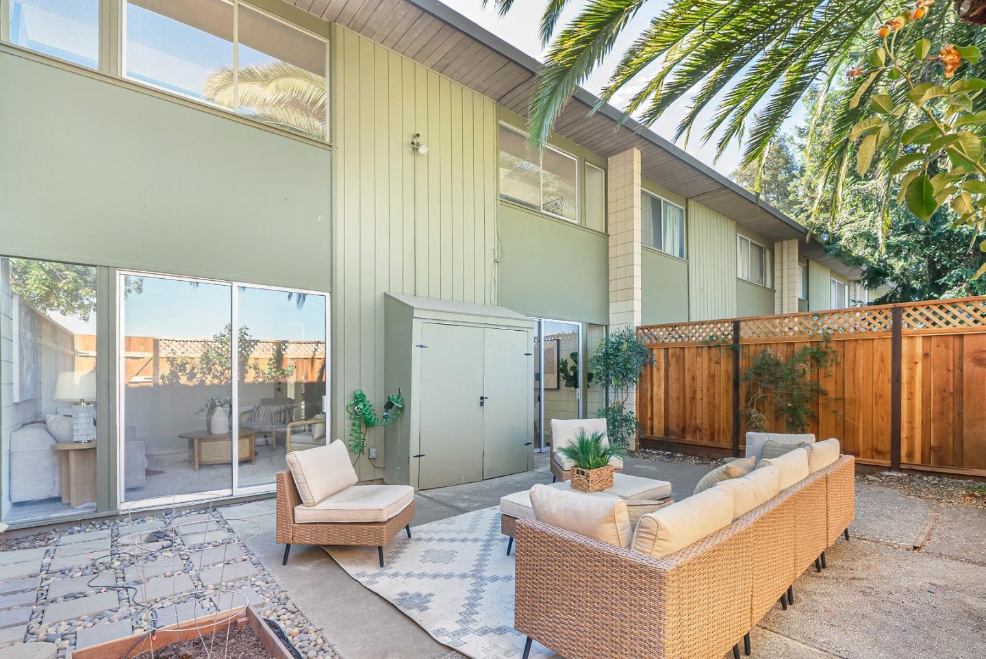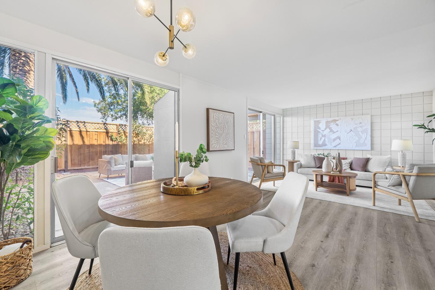 Welcome to this beautifully updated two-story townhome in Pomeroy West. Step inside to discover large floor-to-ceiling windows that fill the space with abundant natural light. The main floor features a gourmet kitchen with elegant countertops, stainless steel appliances, and ample cabinetry. This area flows seamlessly into a cozy family room with a sliding door to the front patio, perfect for morning coffee. Adjacent is a spacious dining area opening to the living room, with two sliding doors leading to the expansive backyard, newly fenced and ideal for gatherings. A convenient powder room and generous storage complete the main level. Upstairs, well-sized bedrooms await, including a primary en-suite with backyard views. Three additional bedrooms share a bathroom with a shower-over-tub. The home also includes an in-unit washer and dryer, plus updates like a new electrical panel, tankless water heater, flooring, and recessed lighting. Say goodbye to juggling utility bills: HOA covers essential utilities such as water, sewer, internet, cable, roof and many more. Enjoy community perks like a pool, clubhouse, BBQ area, and playground, all in the heart of Silicon Valley near top tech firms, shopping, dining, and Stratford School. Dont miss this convenient, low-maintenance lifestyle!