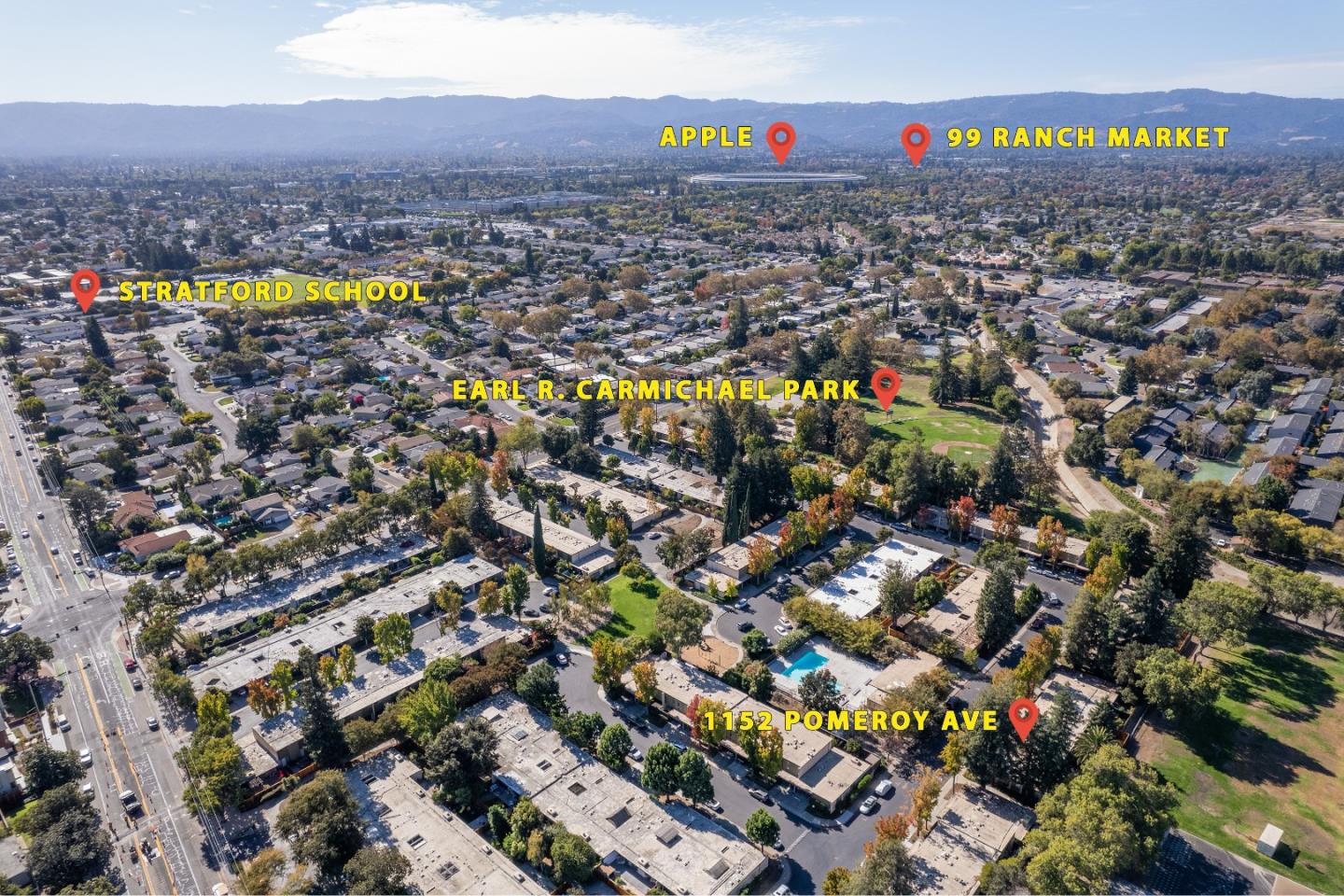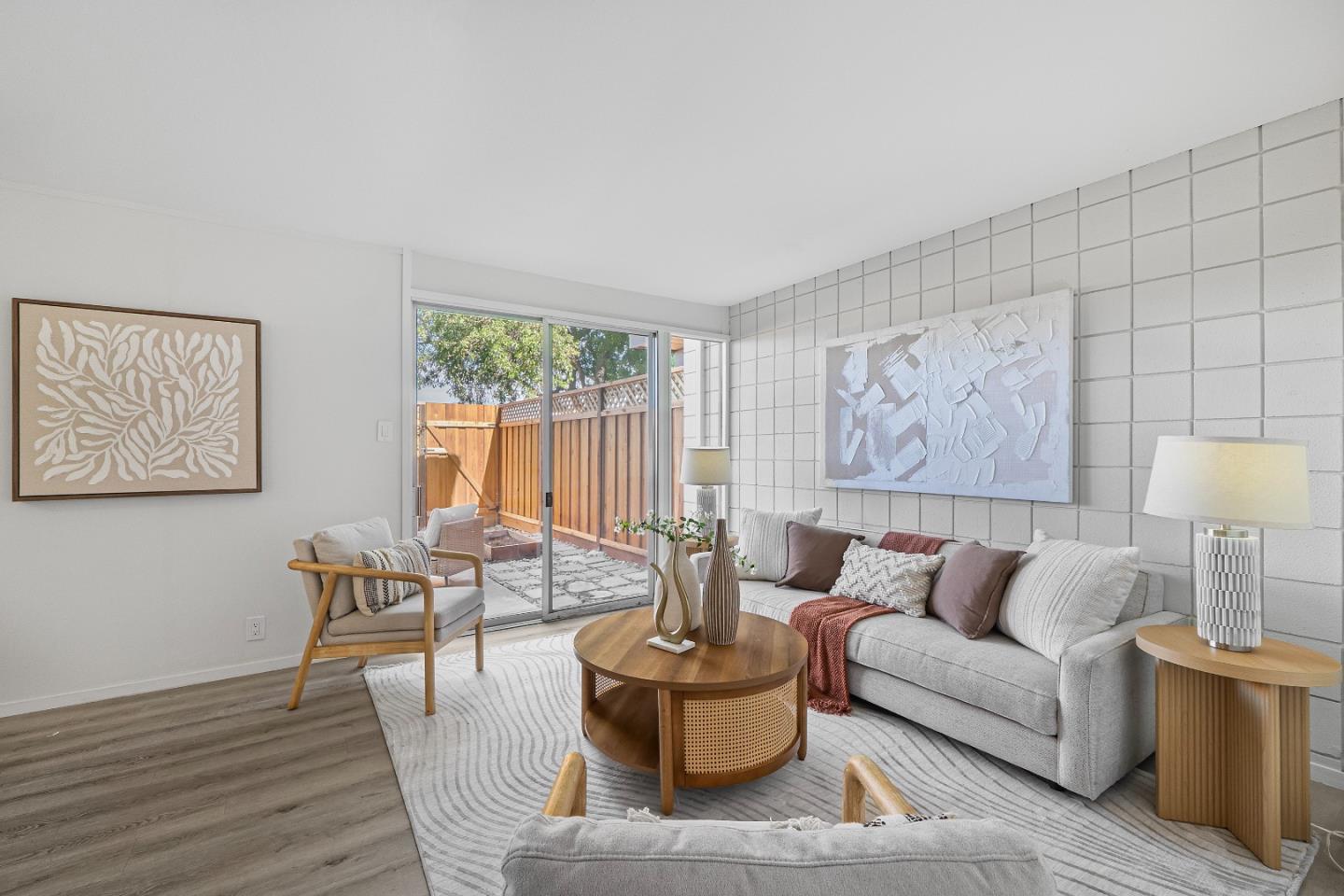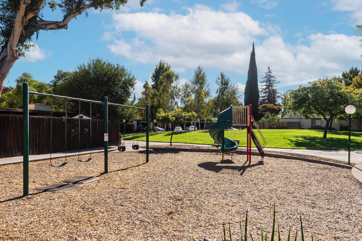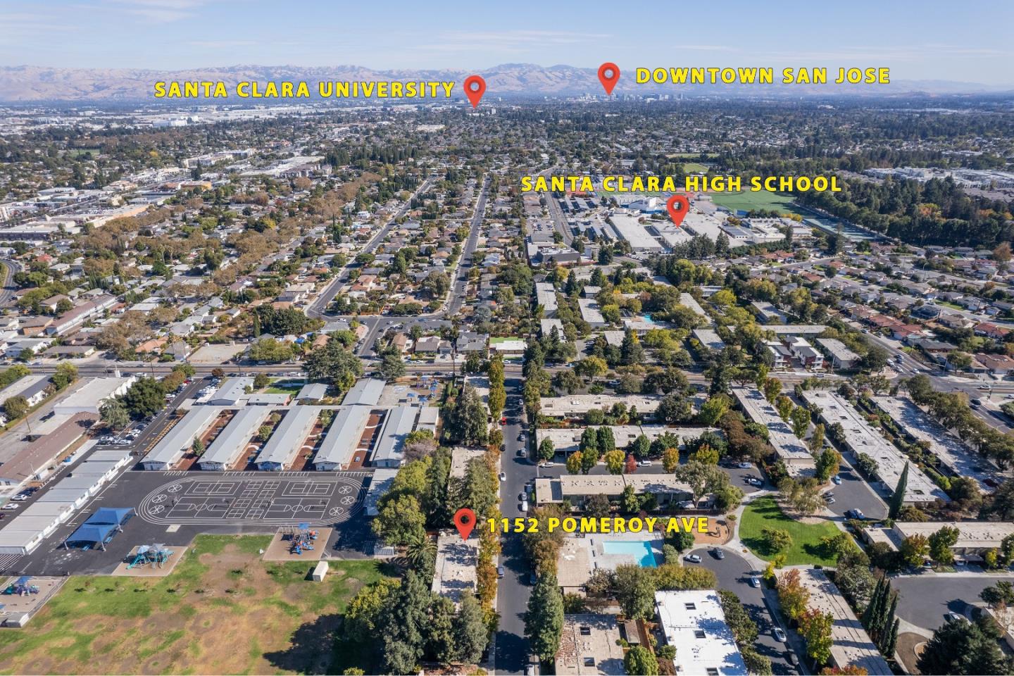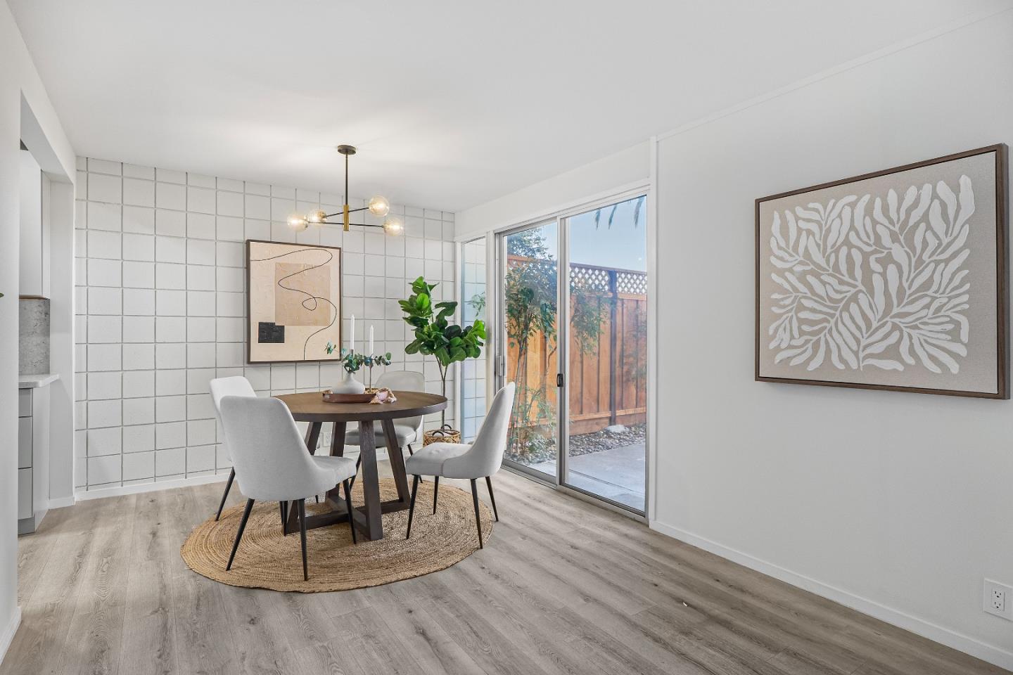 Welcome to this beautifully updated two-story townhome in Pomeroy West. Step inside to discover large floor-to-ceiling windows that fill the space with abundant natural light. The main floor features a gourmet kitchen with elegant countertops, stainless steel appliances, and ample cabinetry. This area flows seamlessly into a cozy family room with a sliding door to the front patio, perfect for morning coffee. Adjacent is a spacious dining area opening to the living room, with two sliding doors leading to the expansive backyard, newly fenced and ideal for gatherings. A convenient powder room and generous storage complete the main level. Upstairs, well-sized bedrooms await, including a primary en-suite with backyard views. Three additional bedrooms share a bathroom with a shower-over-tub. The home also includes an in-unit washer and dryer, plus updates like a new electrical panel, tankless water heater, flooring, and recessed lighting. Say goodbye to juggling utility bills: HOA covers essential utilities such as water, sewer, internet, cable, roof and many more. Enjoy community perks like a pool, clubhouse, BBQ area, and playground, all in the heart of Silicon Valley near top tech firms, shopping, dining, and Stratford School. Dont miss this convenient, low-maintenance lifestyle!