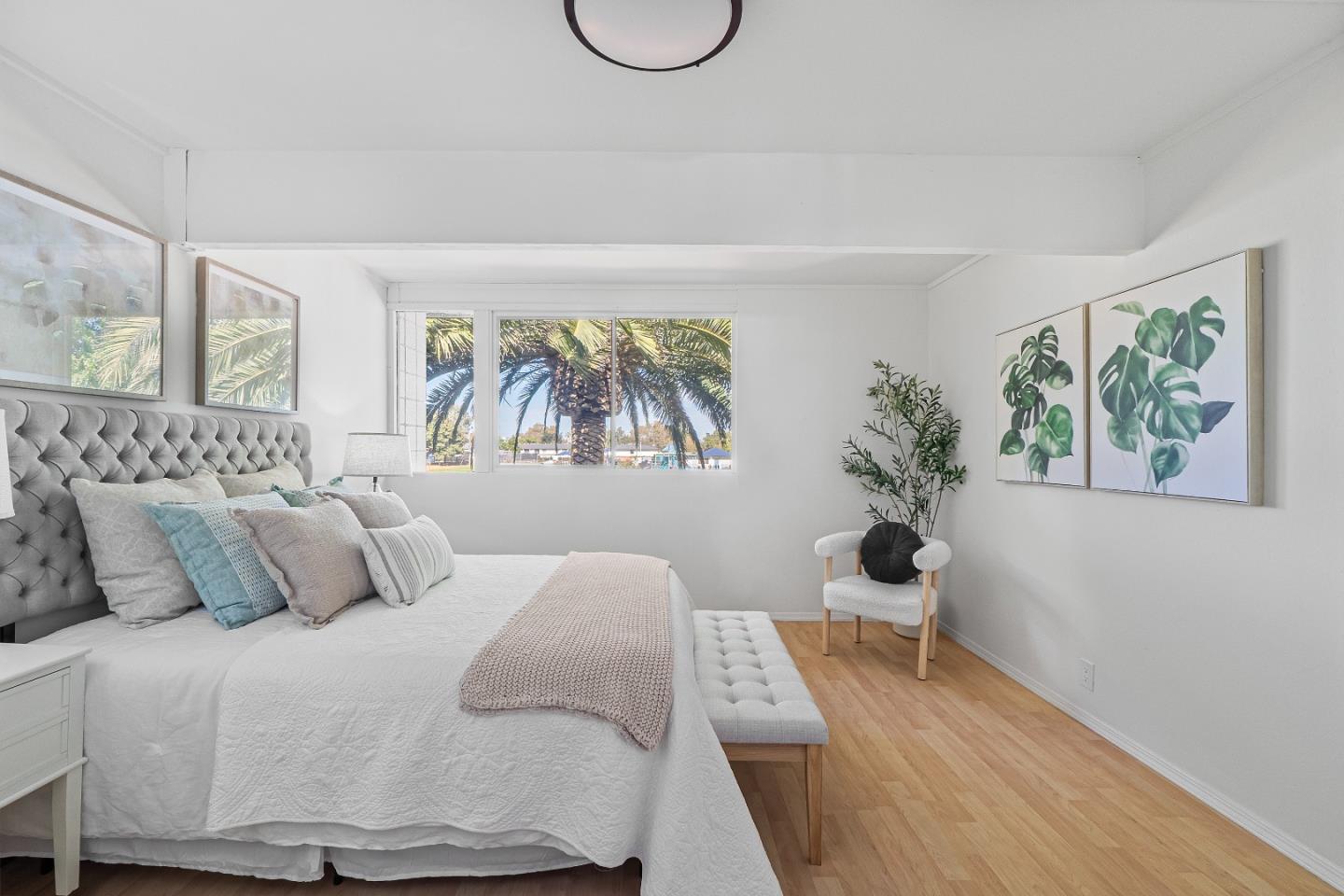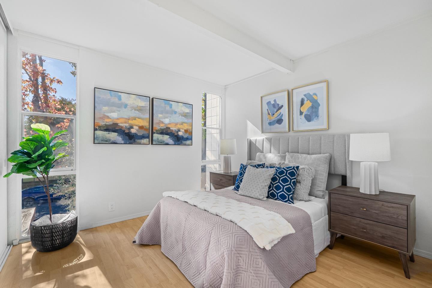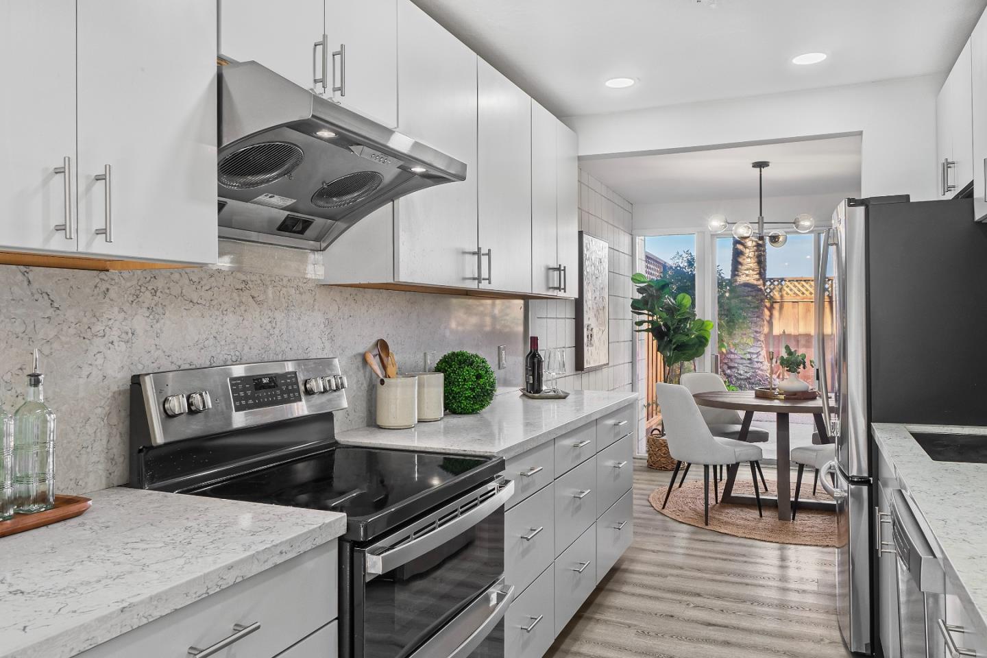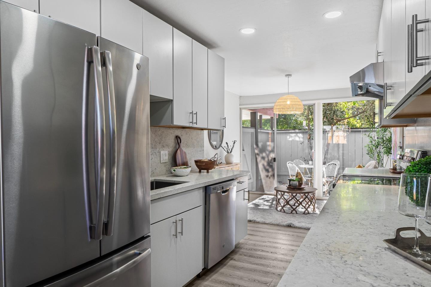 Welcome to this beautifully updated two-story townhome in Pomeroy West. Step inside to discover large floor-to-ceiling windows that fill the space with abundant natural light. The main floor features a gourmet kitchen with elegant countertops, stainless steel appliances, and ample cabinetry. This area flows seamlessly into a cozy family room with a sliding door to the front patio, perfect for morning coffee. Adjacent is a spacious dining area opening to the living room, with two sliding doors leading to the expansive backyard, newly fenced and ideal for gatherings. A convenient powder room and generous storage complete the main level. Upstairs, well-sized bedrooms await, including a primary en-suite with backyard views. Three additional bedrooms share a bathroom with a shower-over-tub. The home also includes an in-unit washer and dryer, plus updates like a new electrical panel, tankless water heater, flooring, and recessed lighting. Say goodbye to juggling utility bills: HOA covers essential utilities such as water, sewer, internet, cable, roof and many more. Enjoy community perks like a pool, clubhouse, BBQ area, and playground, all in the heart of Silicon Valley near top tech firms, shopping, dining, and Stratford School. Dont miss this convenient, low-maintenance lifestyle!